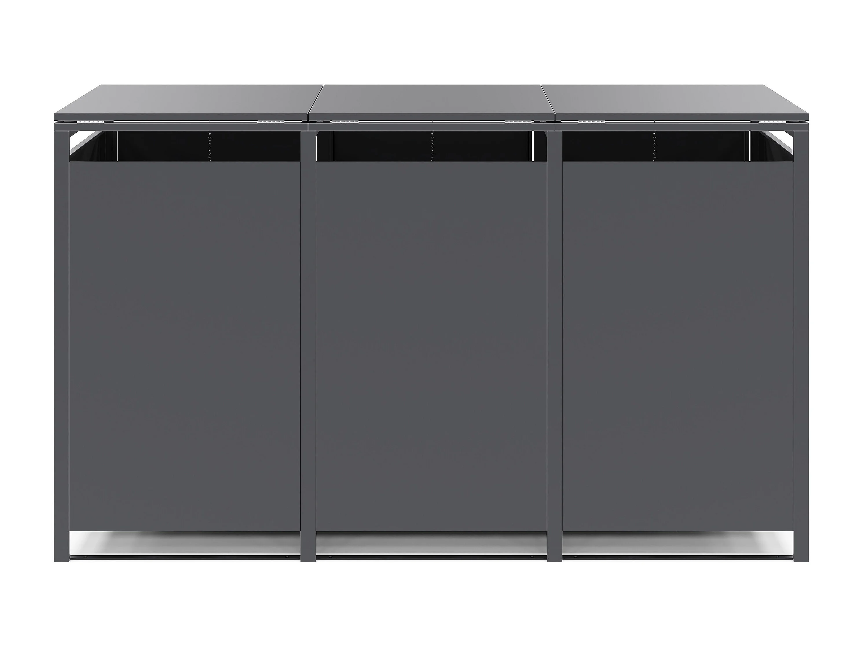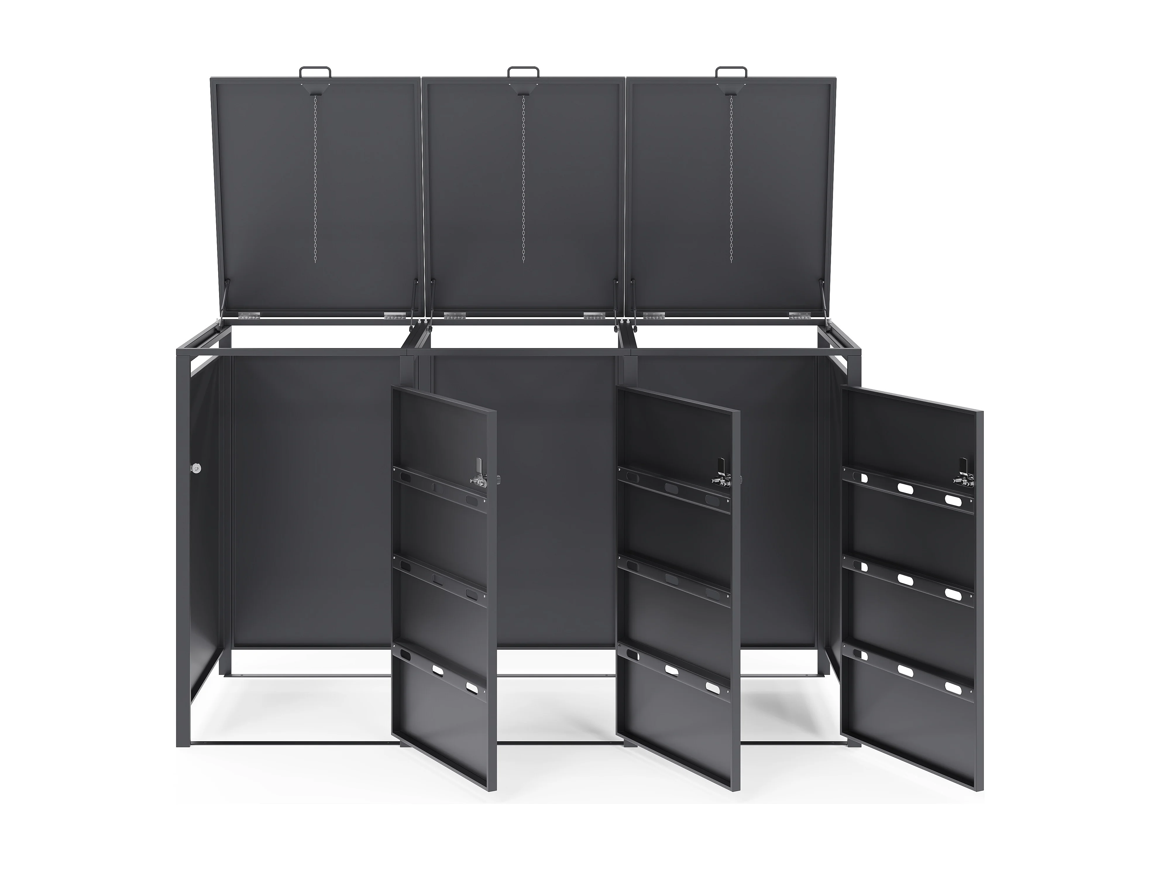 Osłona na śmietnik z ocynkowanej stali w kolorze antracytowym - 0,6 mm - 3 kosze po 240L - S200 x G80 x W116 cm - LOKAFA