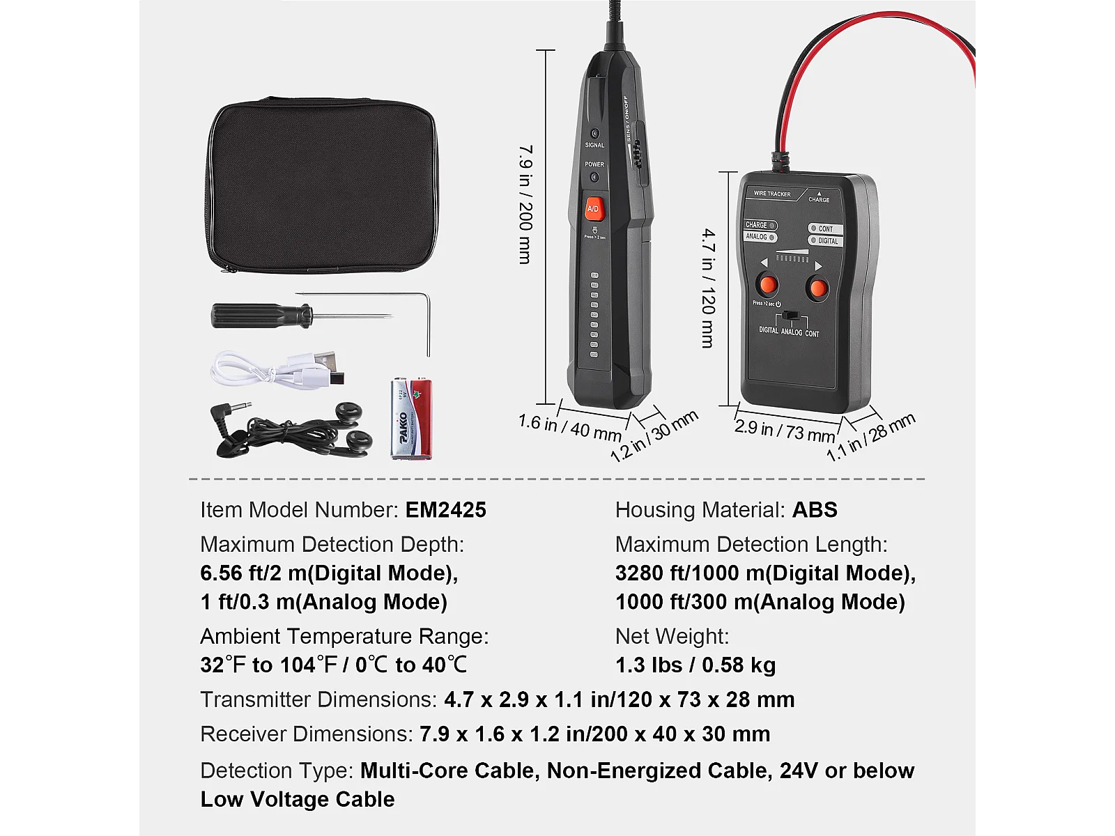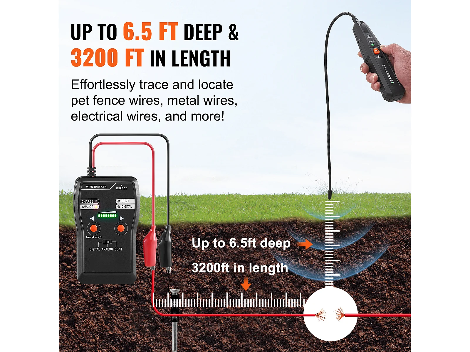 Lokalizator Kabli Podziemnych SucceBuy o Głębokości 2 m, Do Lokalizowania Ukrytych Ogrodzeń
