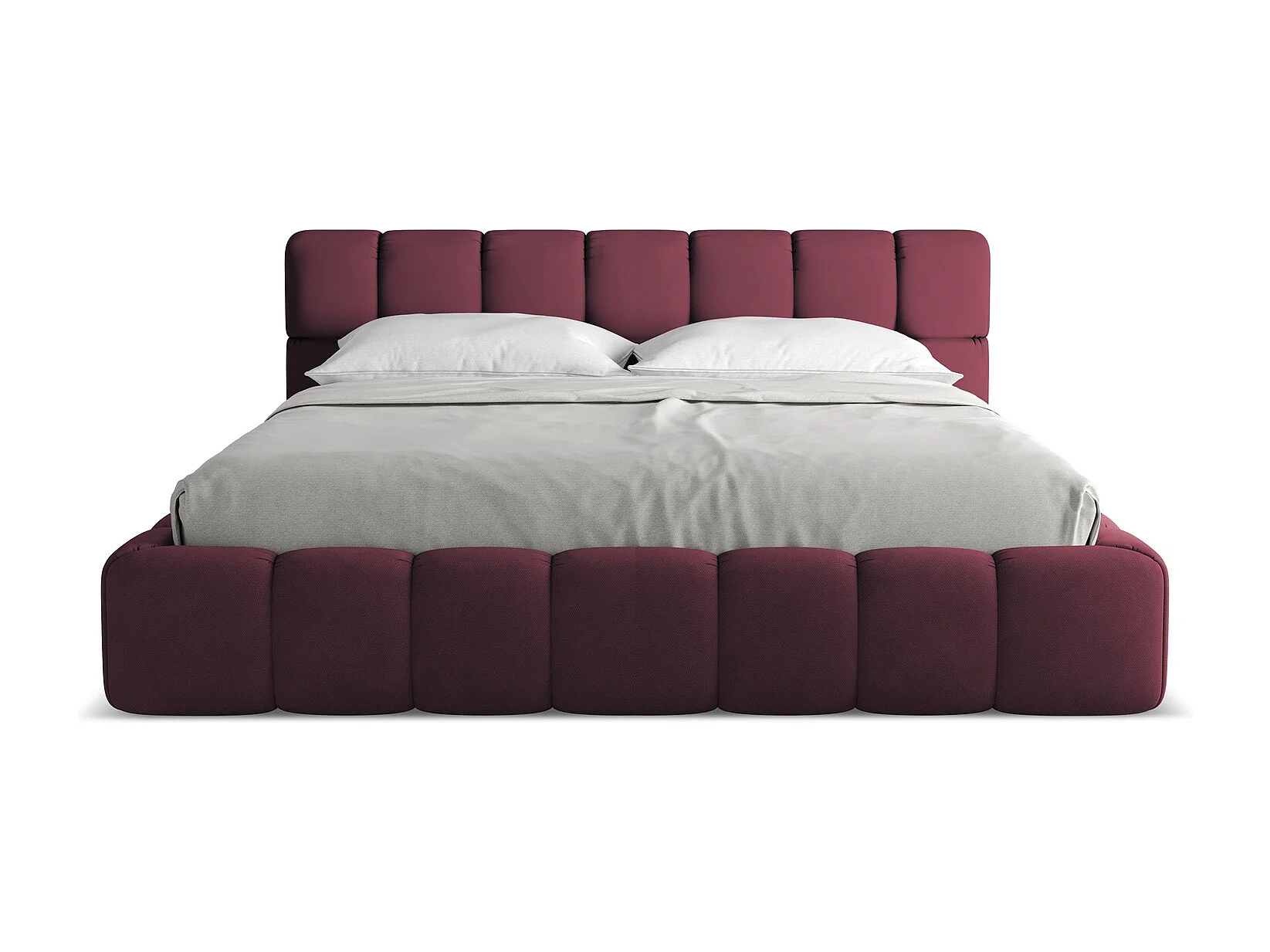 Łóżko 200 x 228 - z tkaniny szenilowej - bordo - NALU