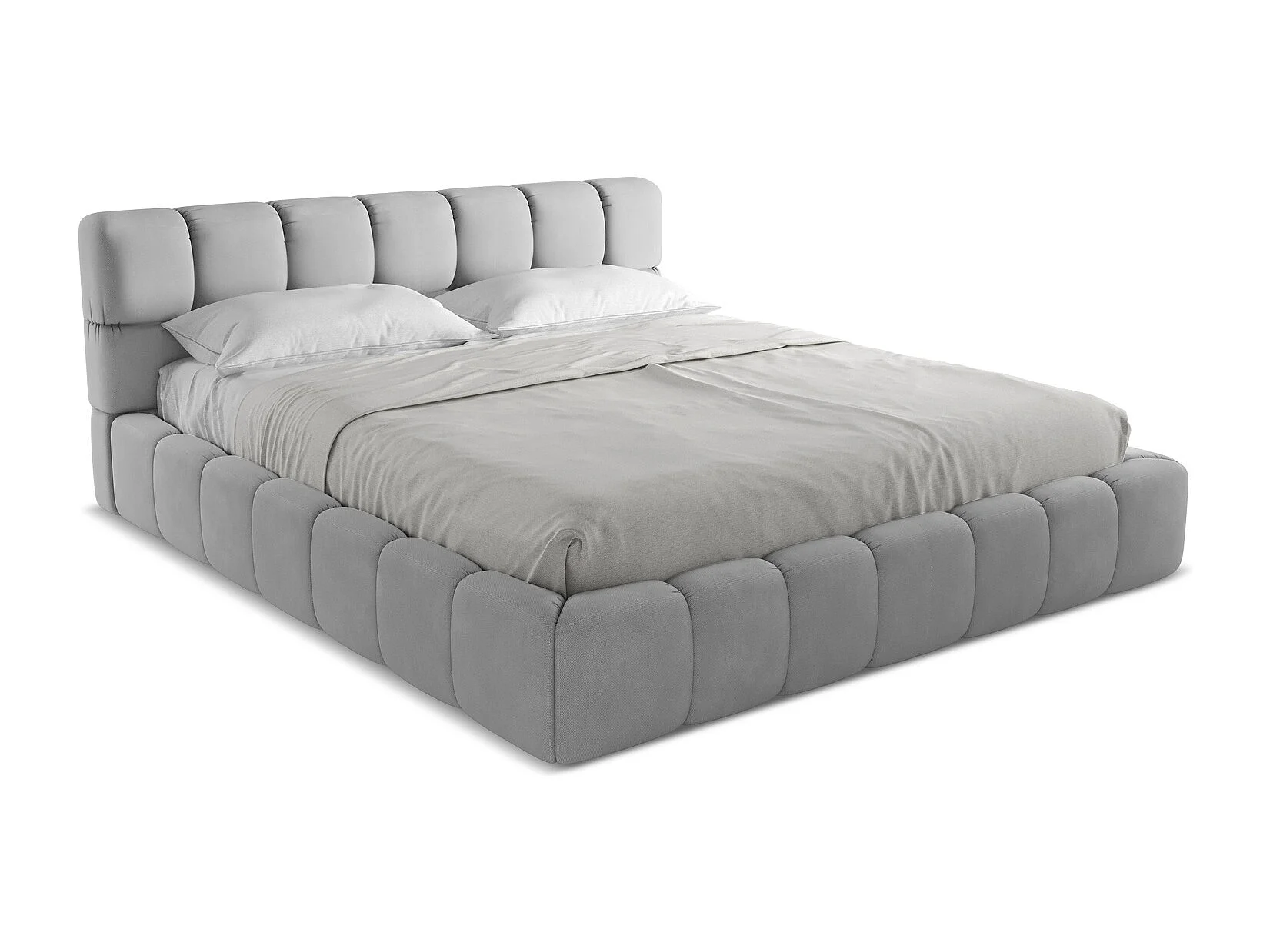 Łóżko 200 x 228 - z tkaniny szenilowej - jasny szary - NALU