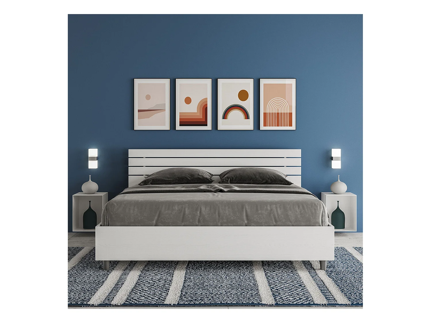 Łóżko Ankel dwuosobowe ze schowkiem, 160x190 cm, zagłówek prosty z listwami, jesion biały
