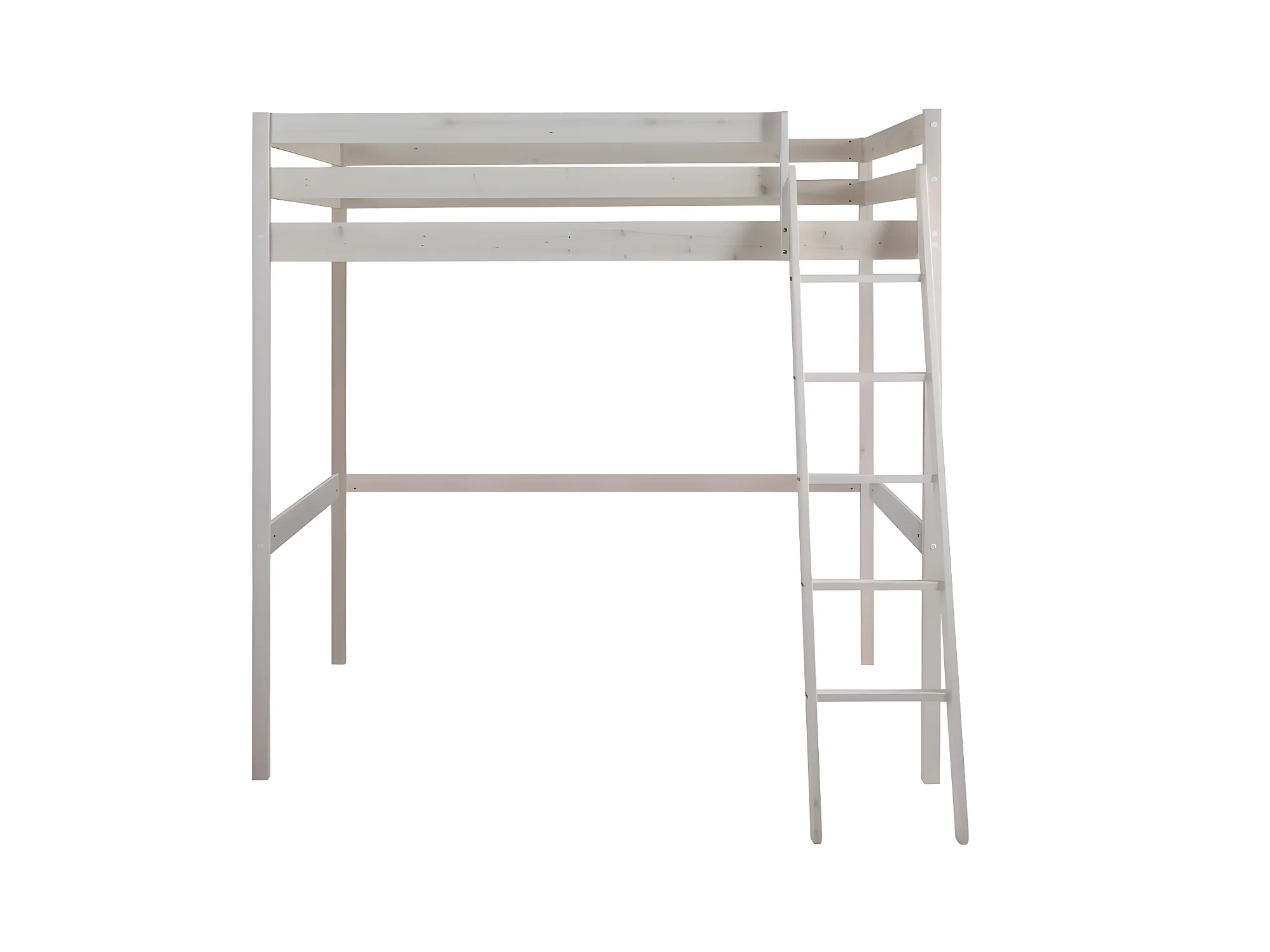 Łóżko antresola GEDEON - 140 × 190 cm - Lite drewno sosnowe - Bielone + materac