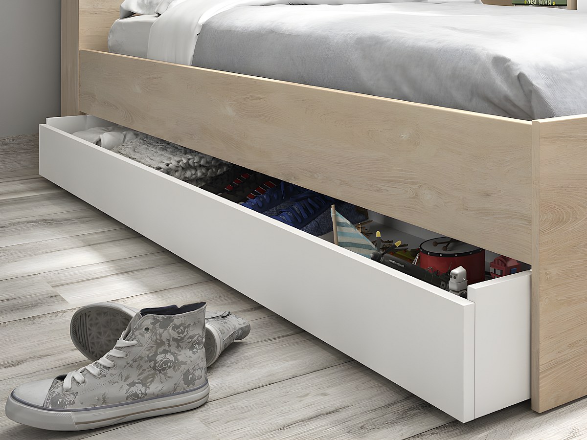 Łóżko ARMAND z miejscem do przechowywania i szufladą – 90 × 200 cm – kolor dębowy i biały