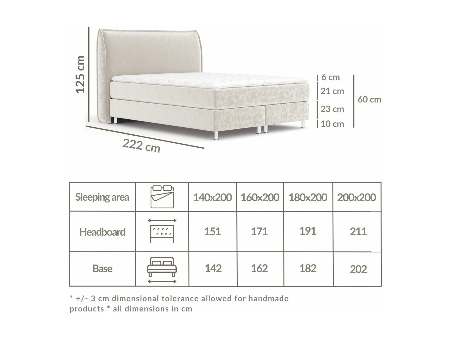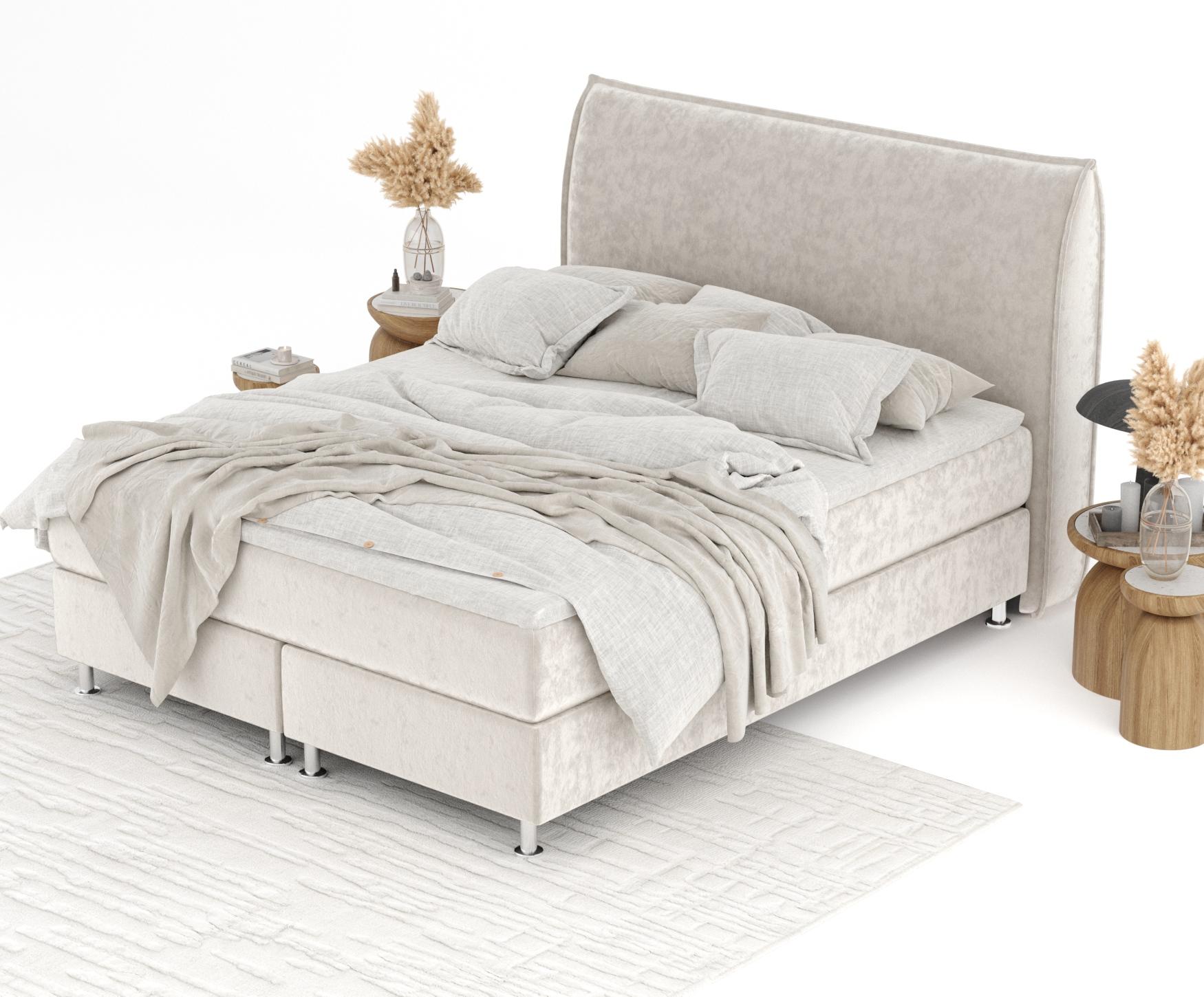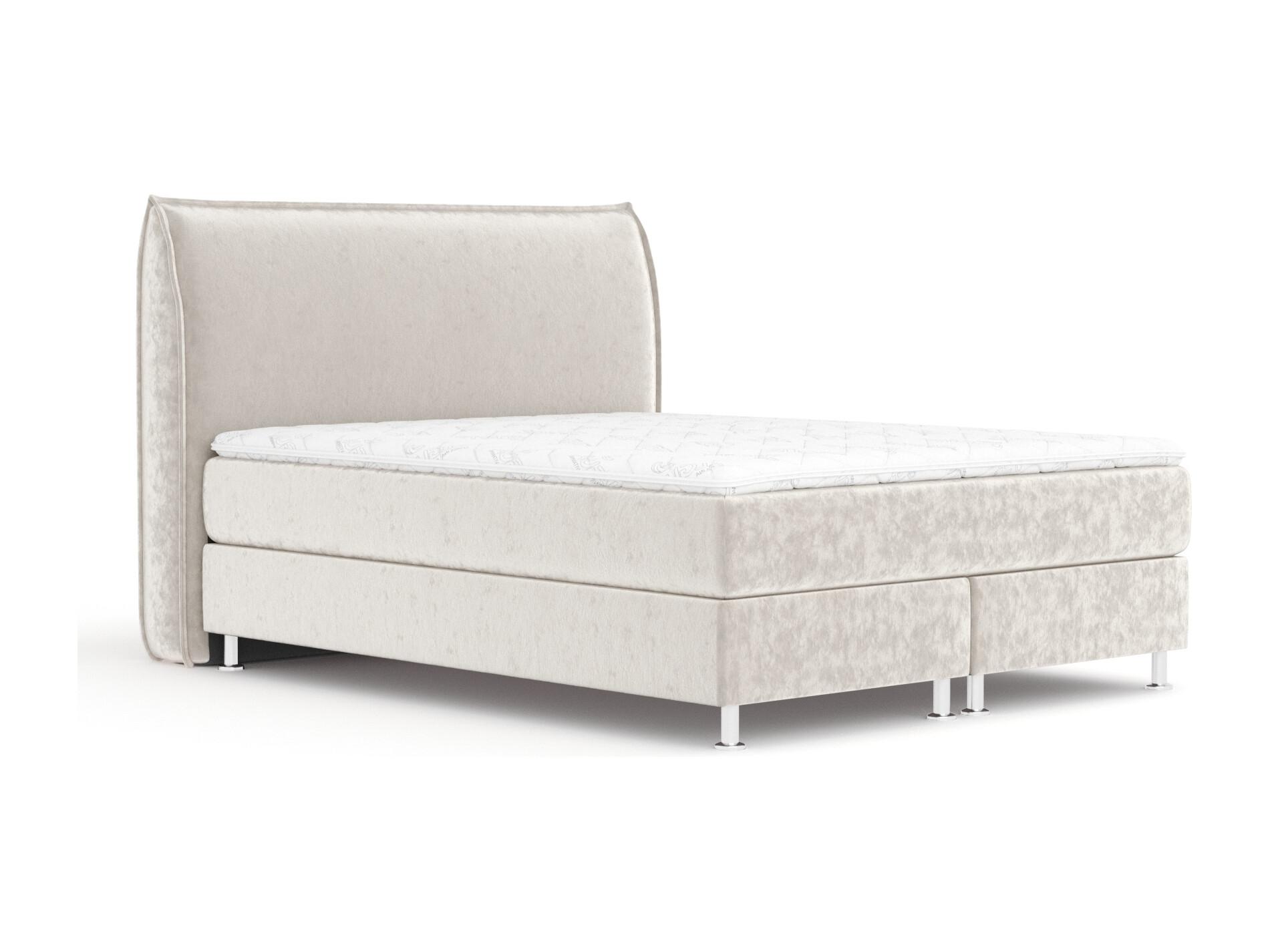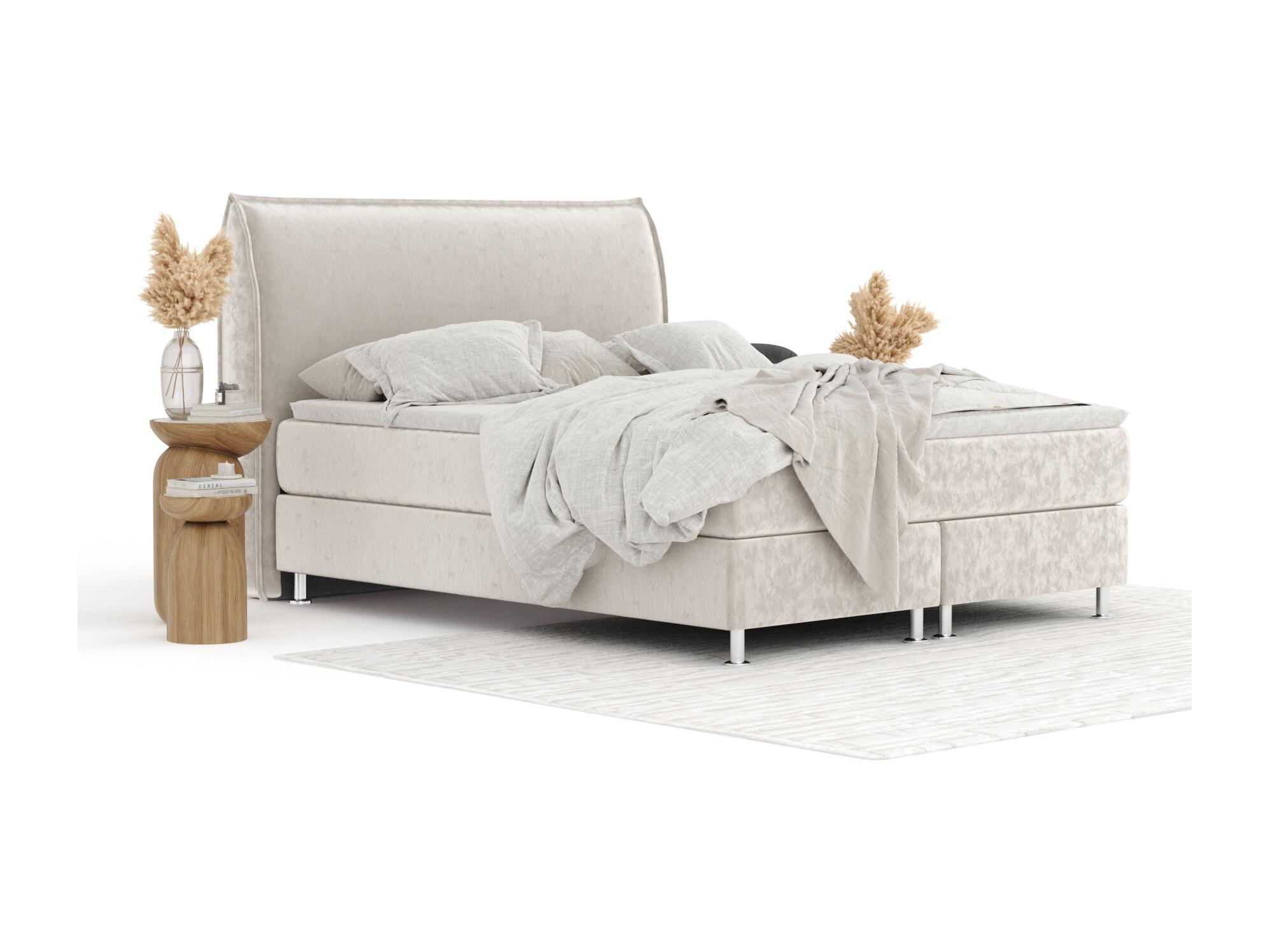 Łóżko boxspring w tkaninie welwetowej Chermin - materac - topper - 140x200 cm - jasnobeżowy