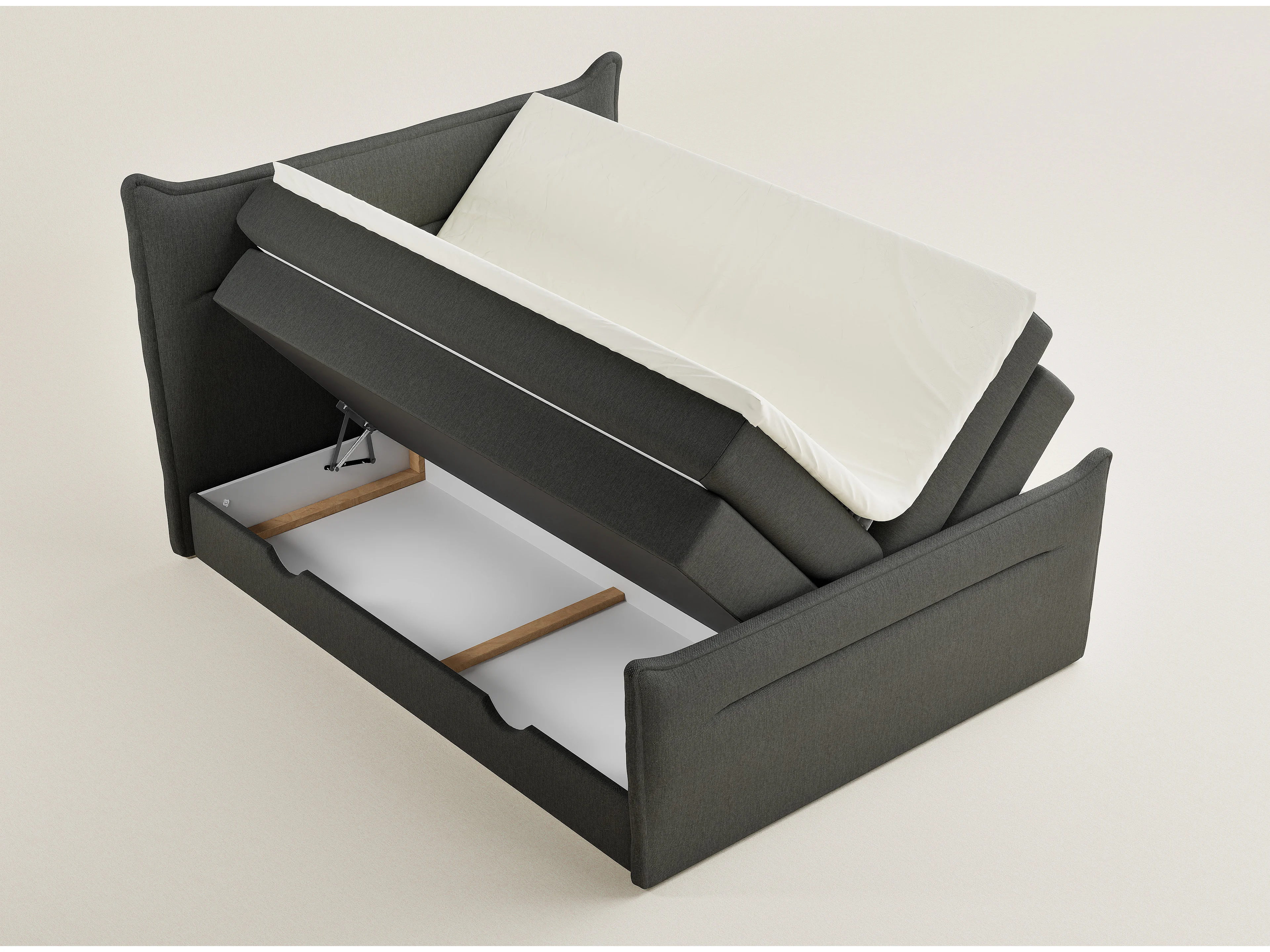 Łóżko boxspring z zagłówkiem + materac + topper - 160x200 cm - grafitowy - PELINO