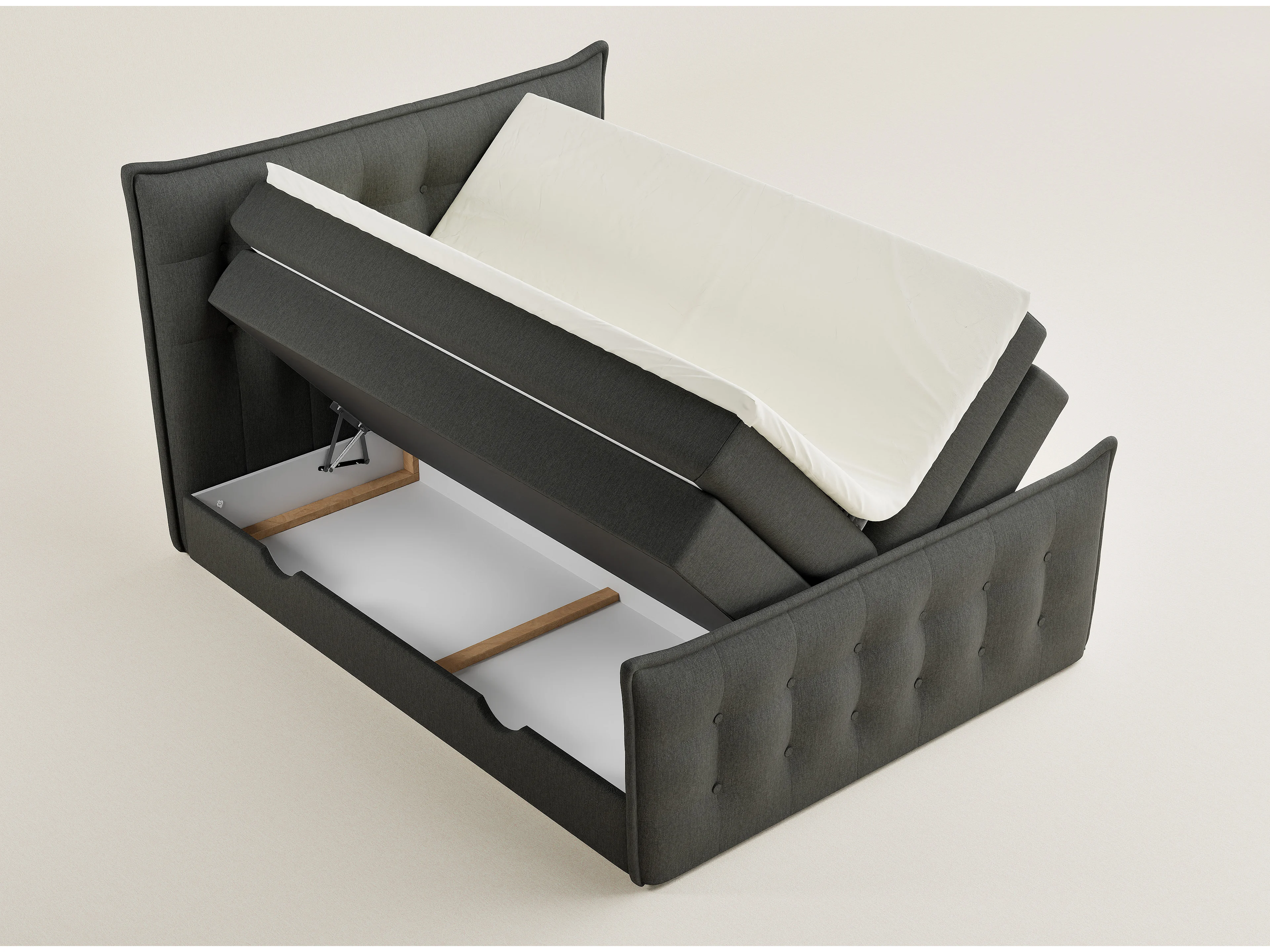 Łóżko boxspring z zagłówkiem + materac + topper - 180x200 cm - grafitowy - FATU