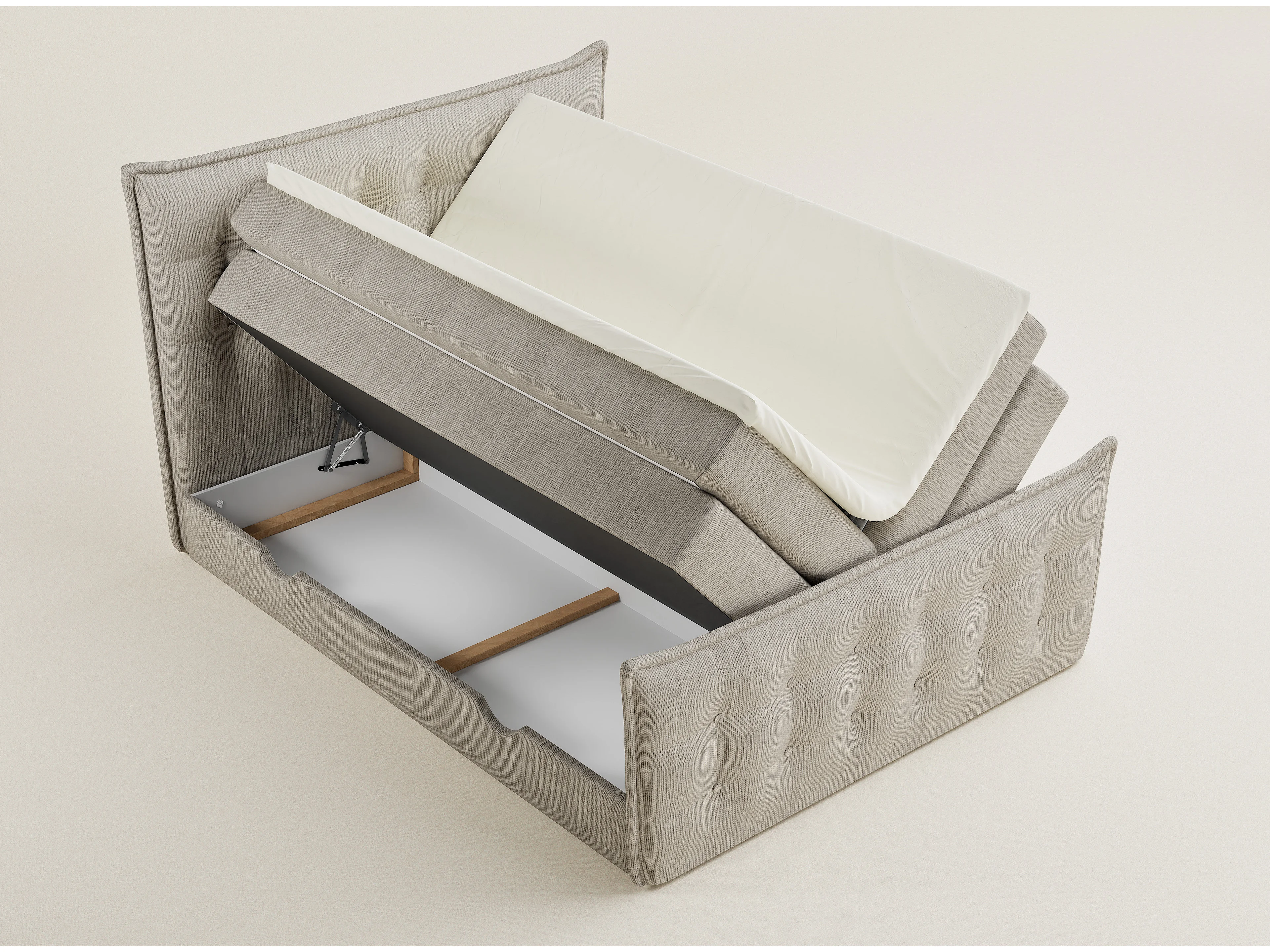 Łóżko boxspring z zagłówkiem + materac + topper - 200x200 cm - beżowy - FATU