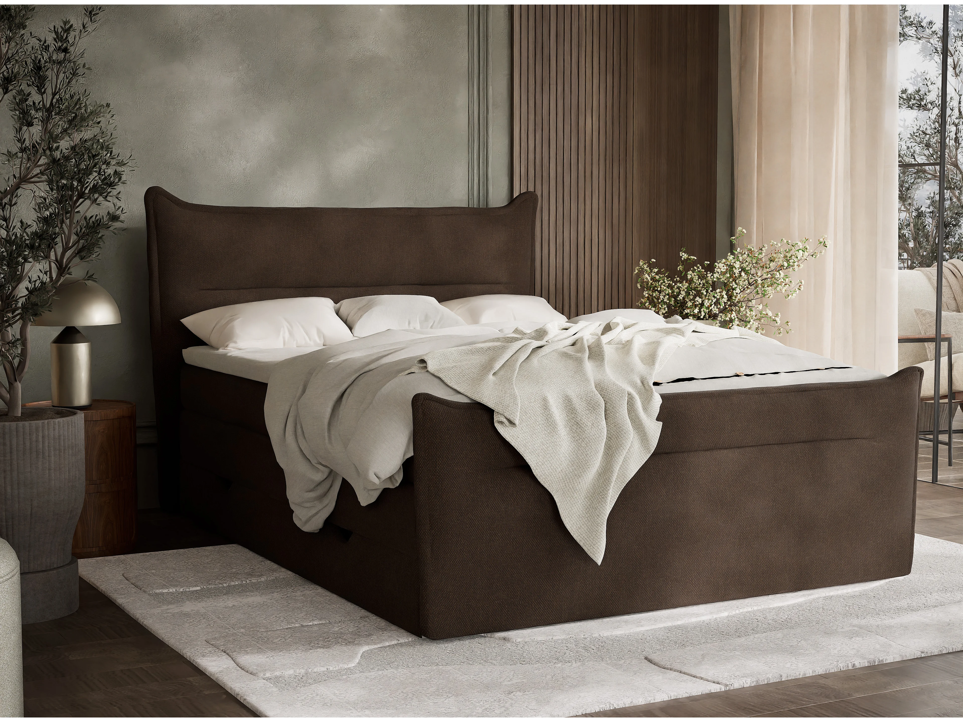 Łóżko boxspring z zagłówkiem + materac + topper - 200x200 cm - brązowy - PELINO