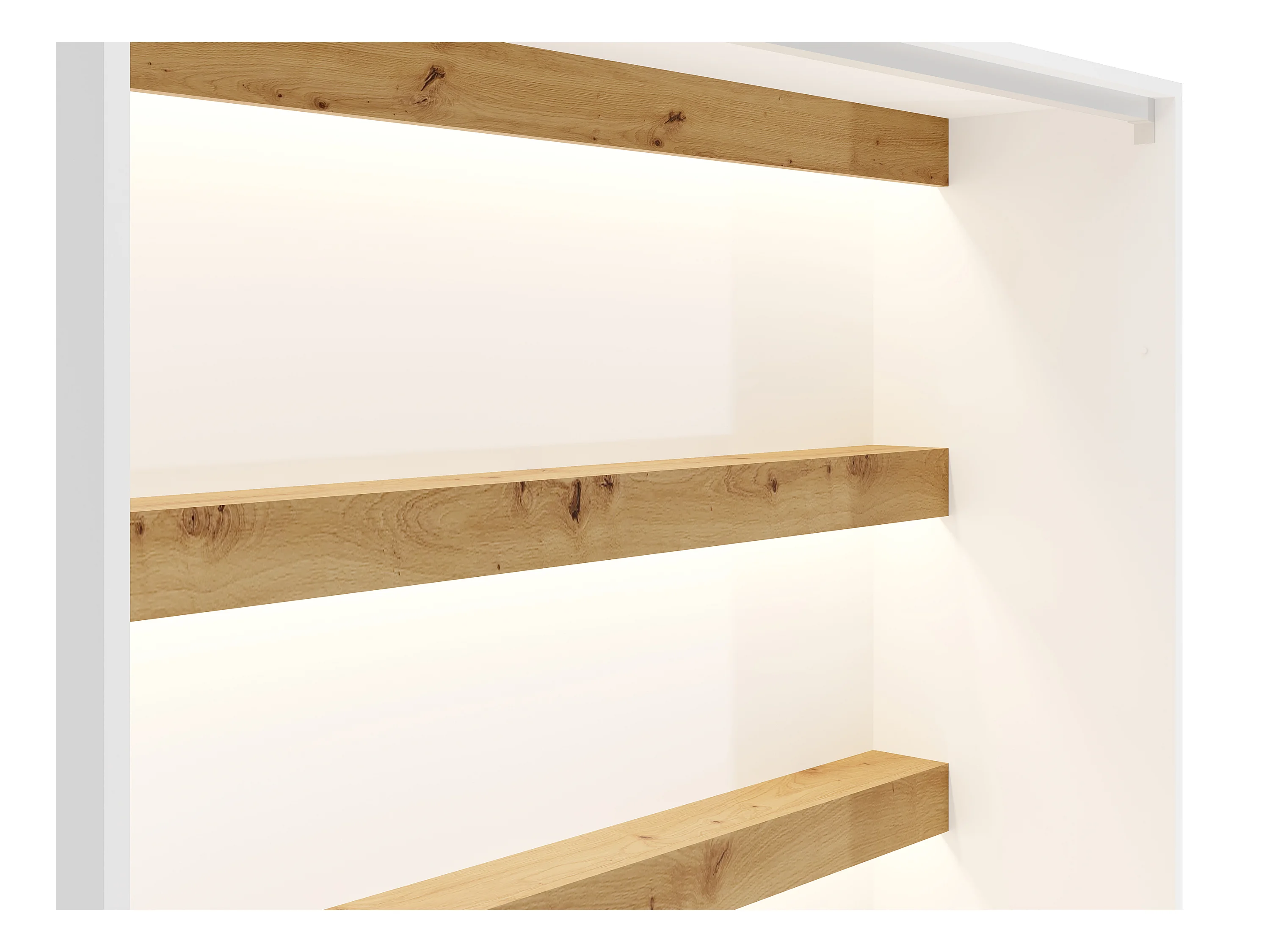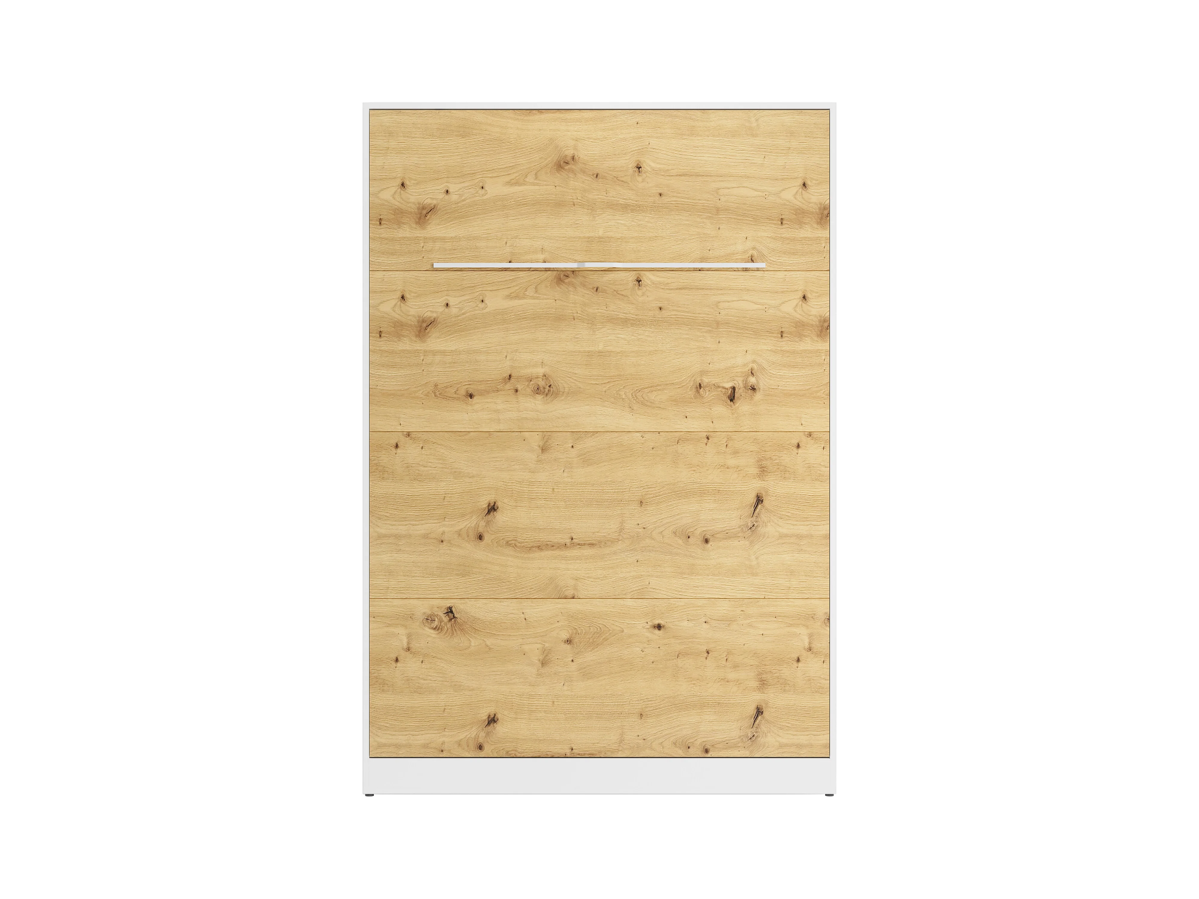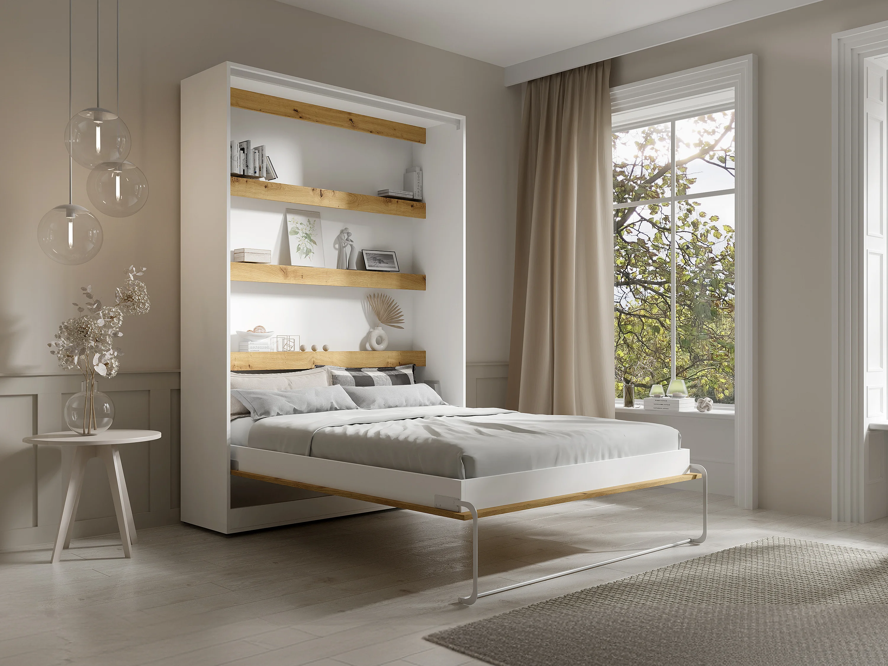 Łóżko chowane w szafie 140 × 200 cm – Otwieranie pionowe manualne – Oświetlenie LED – Białe i naturalne – RAPILI