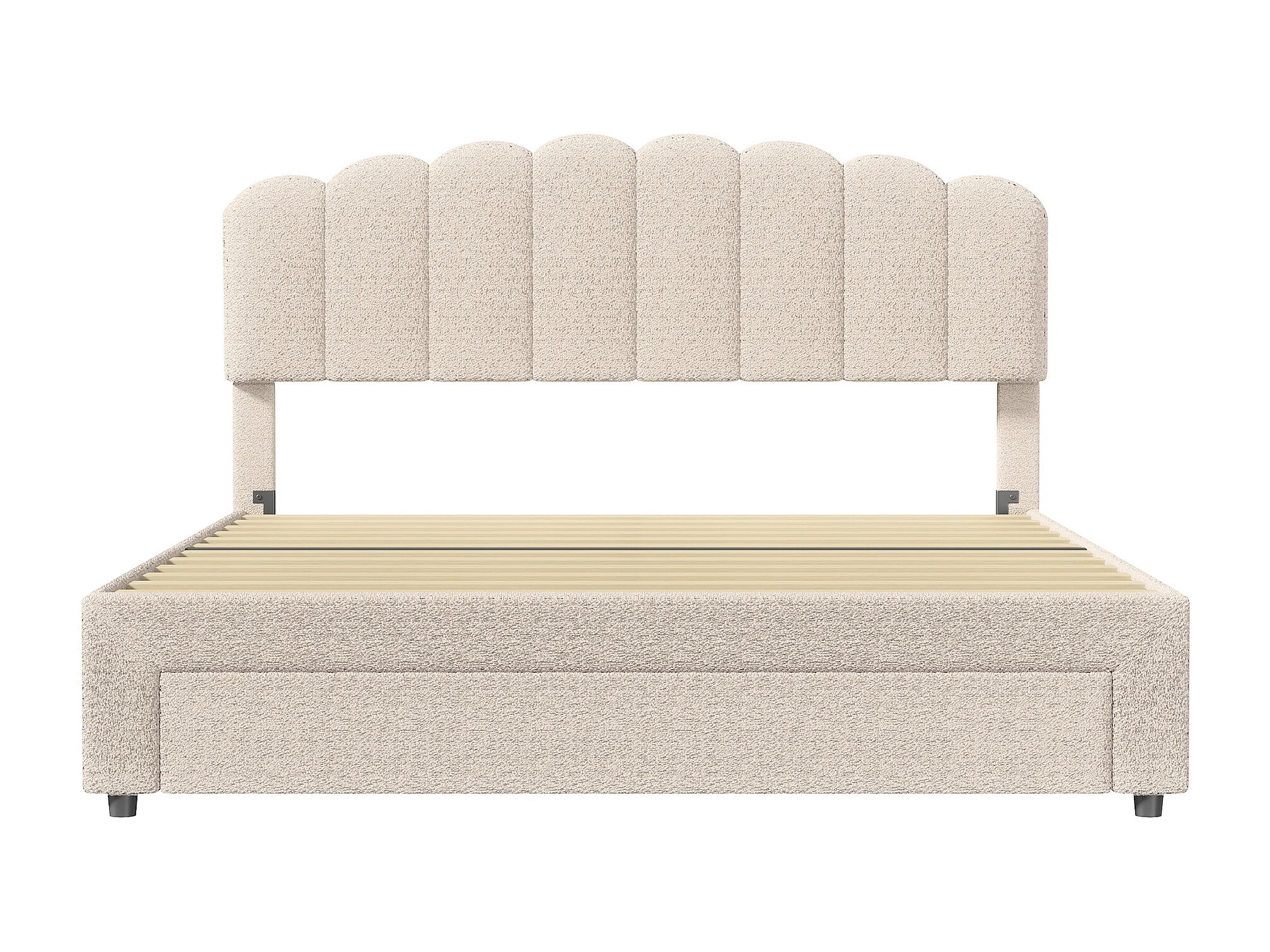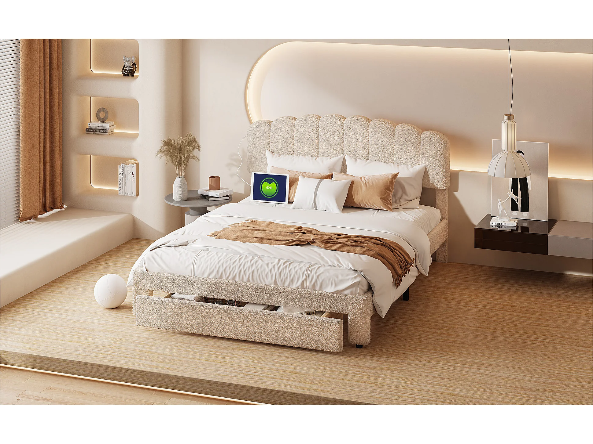 Łóżko dla Dorosłych 140x200cm Beżowy Welur z Szufladami do Przechowywania, Portami USB i Metalowym Stelażem z Listwami