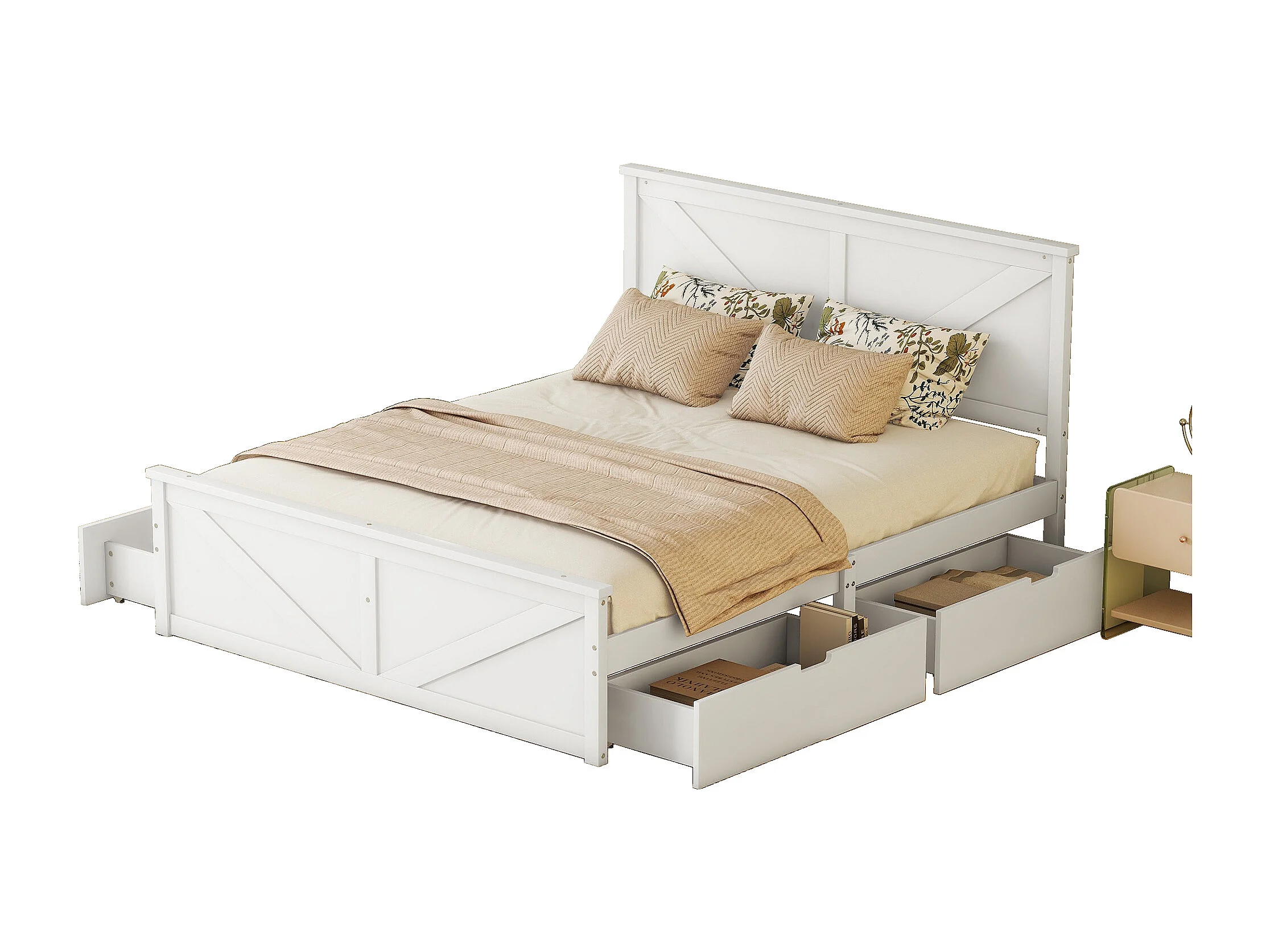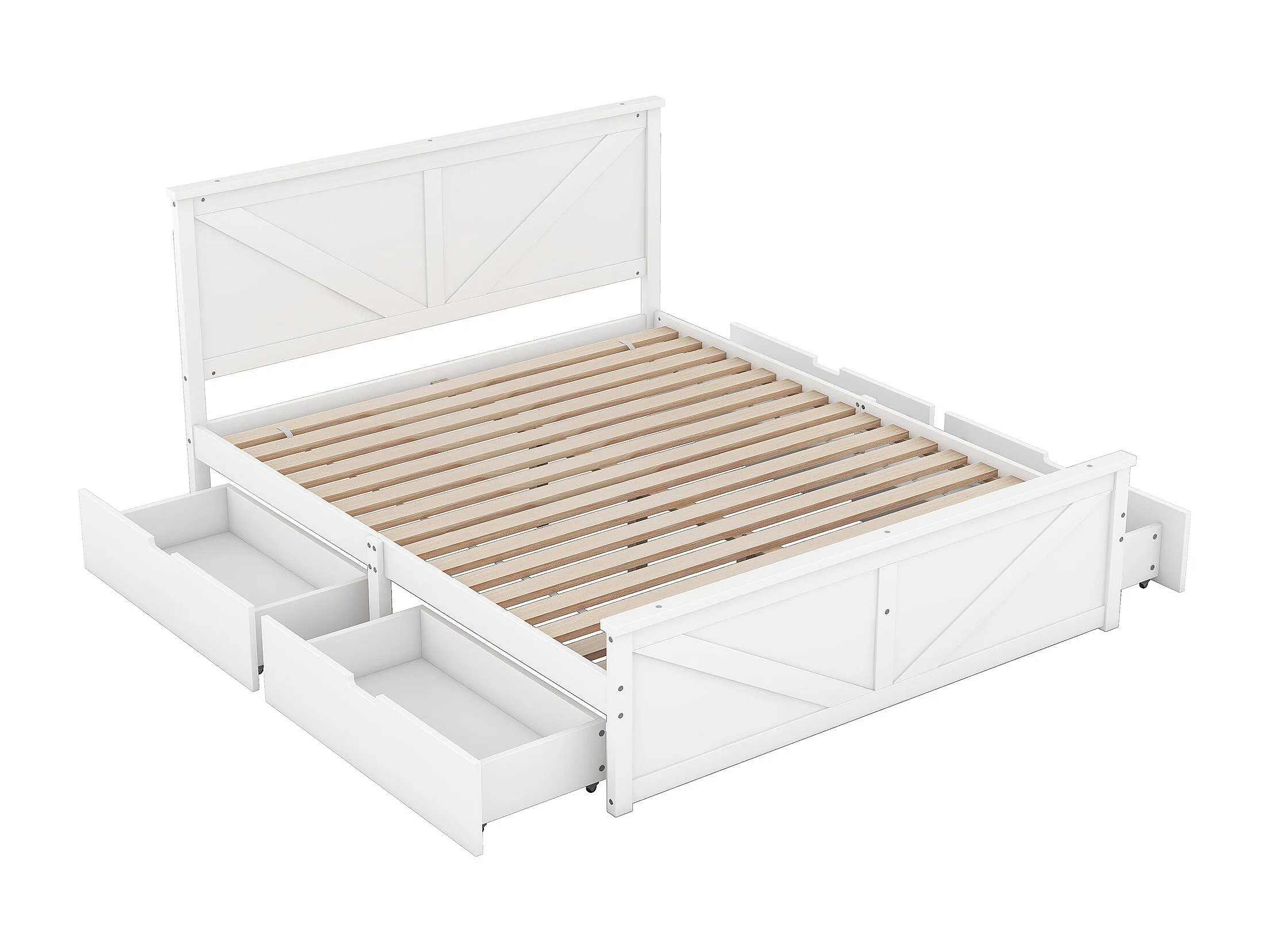 Łóżko dla dorosłych 160x200 cm - łóżko dwuosobowe z 4 szufladami - białe - bez materaca