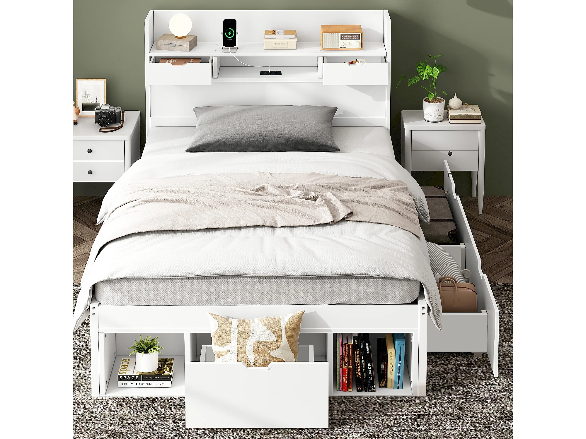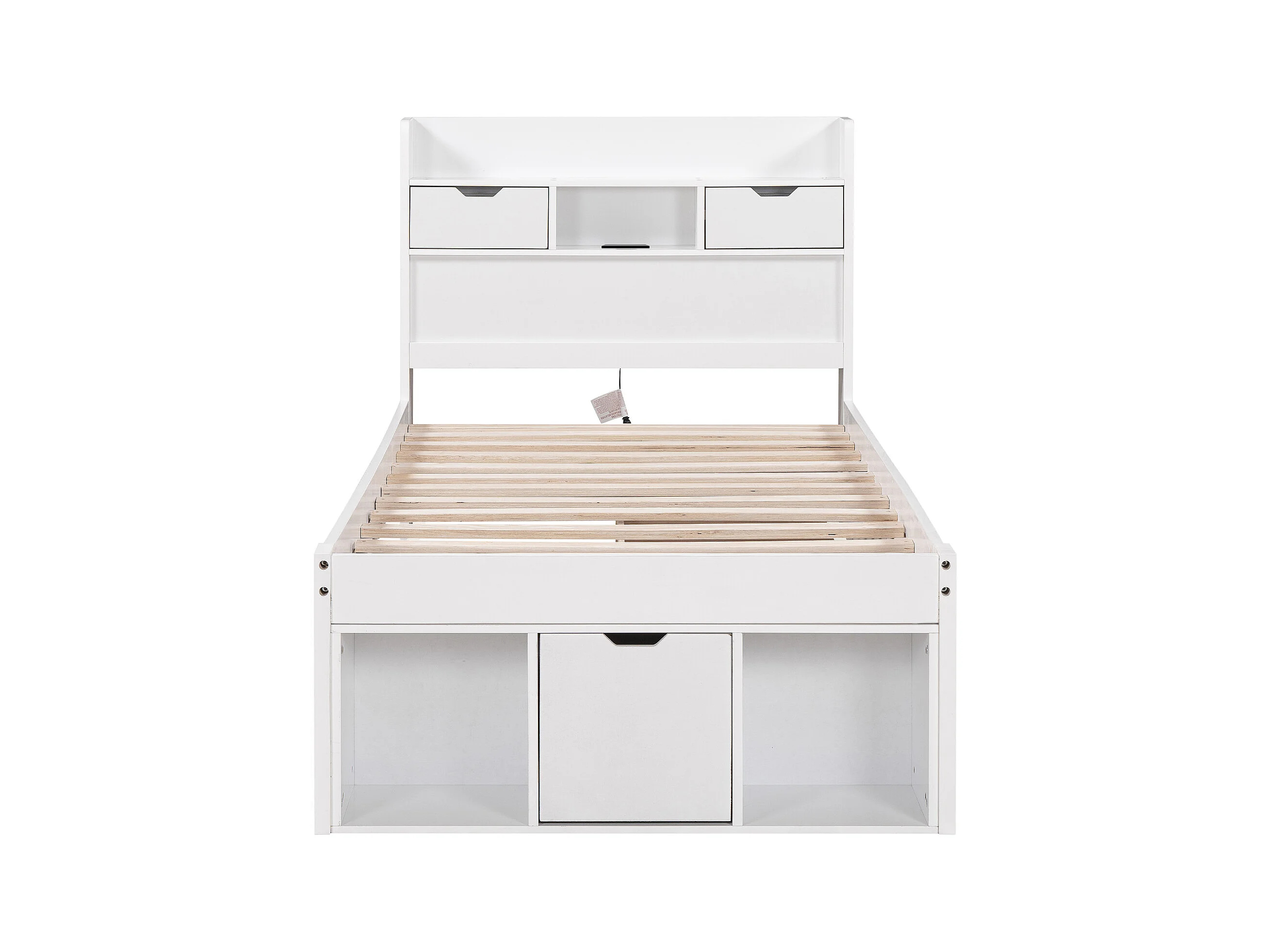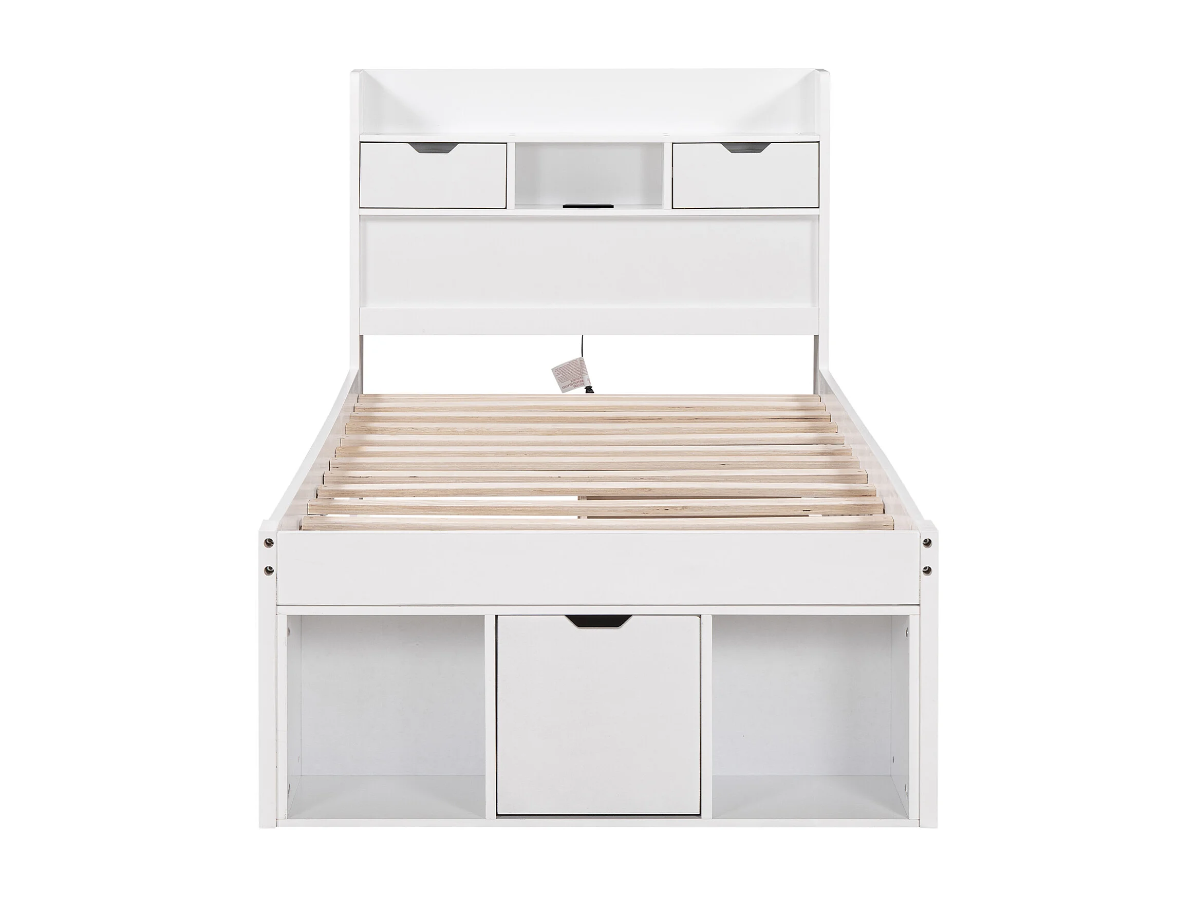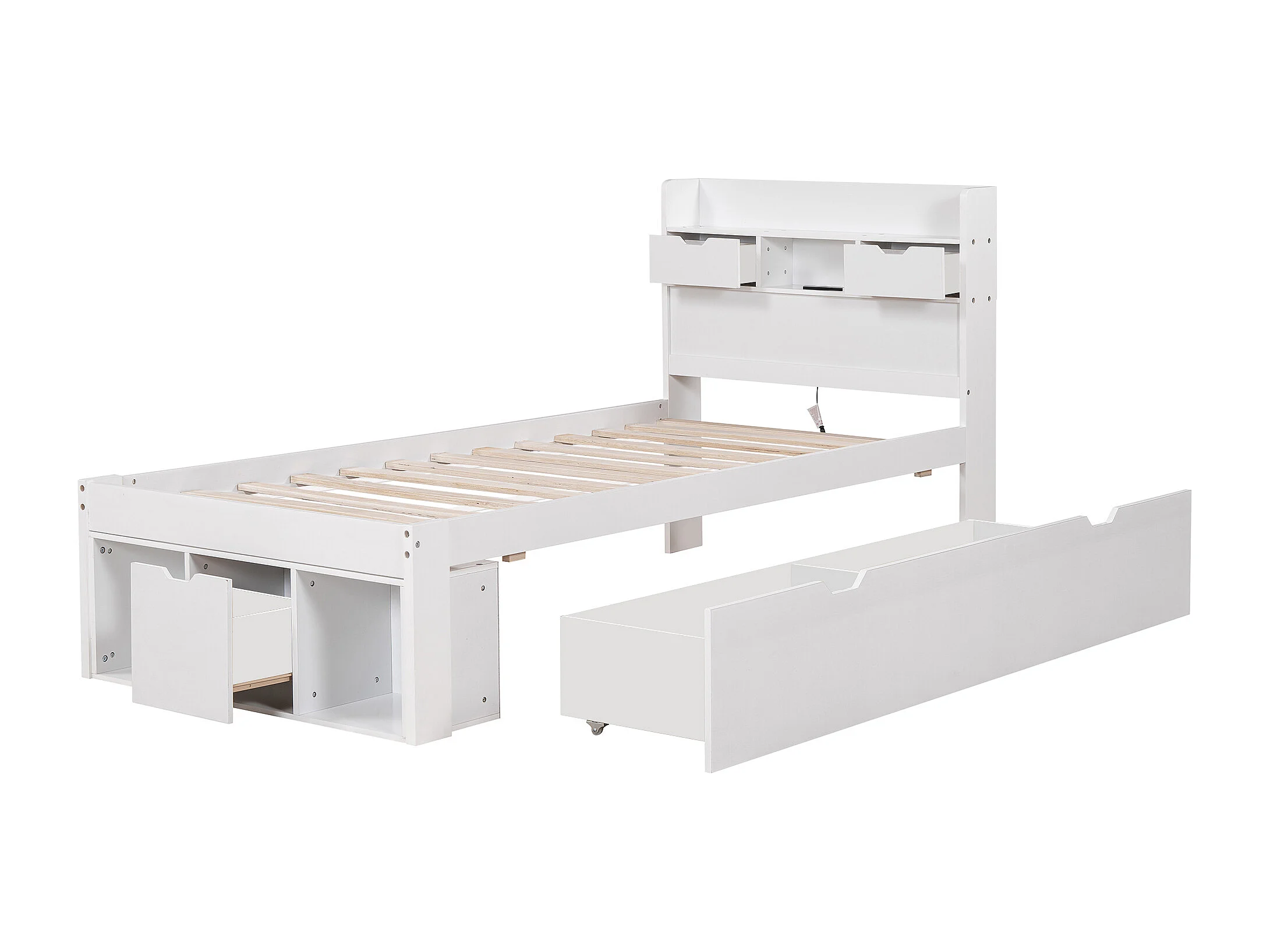 Łóżko dla dorosłych 90x190 cm - z portem ładowania i wielofunkcyjnymi przechowalniami - Biały (materac nie jest wliczony w cenę)
