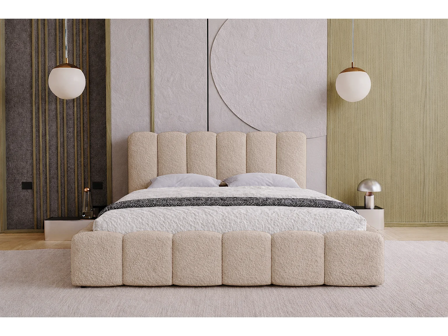 Łóżko dwuosobowe 160x200 Florent - łóżko z pojemnikiem i stelażem metalowym - boucle, beżowy (Lambi 6)