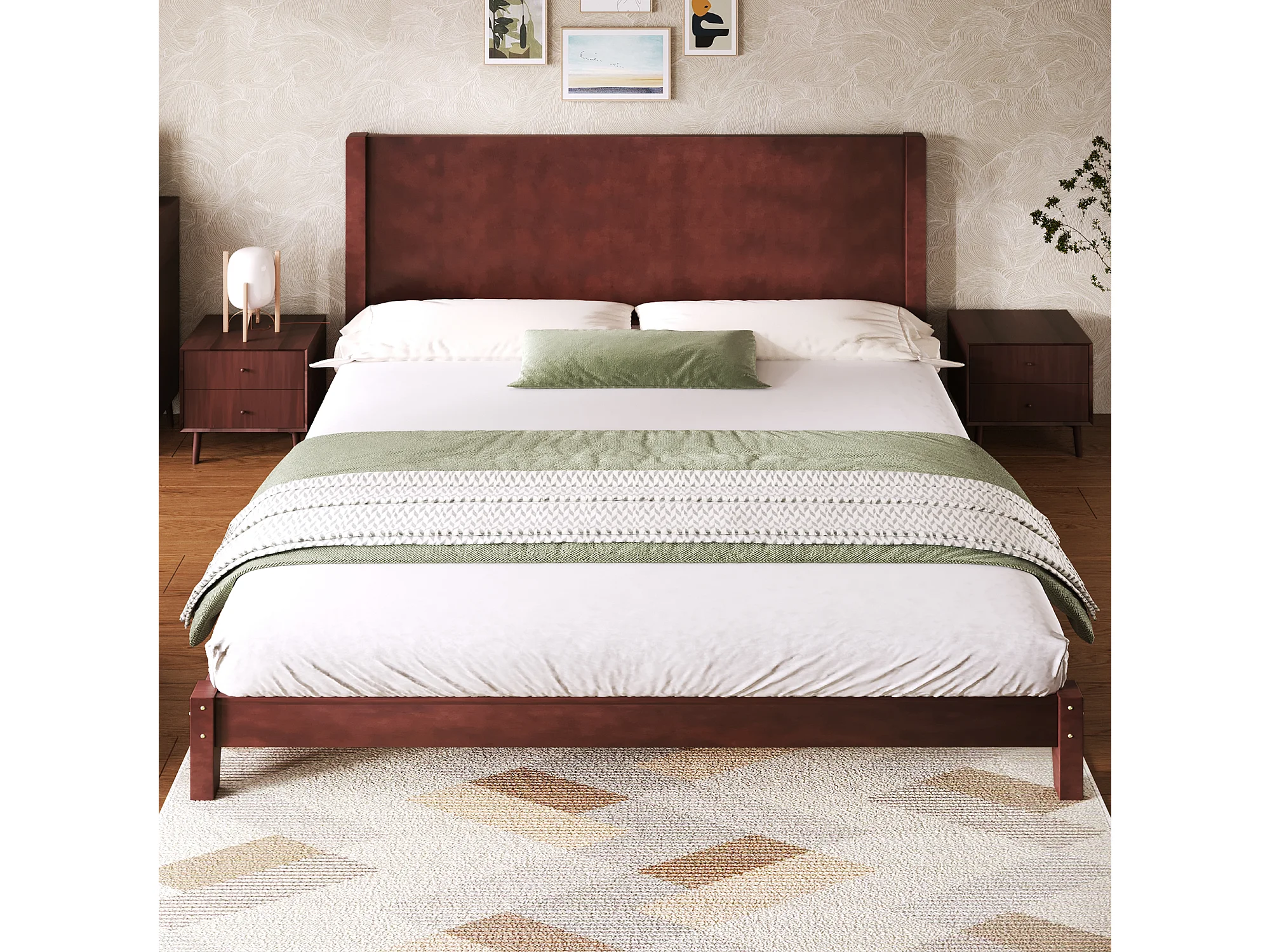 Łóżko dwuosobowe platformowe - 180 x 200 cm - z zagłówkiem i stelażem - MDF - brązowe