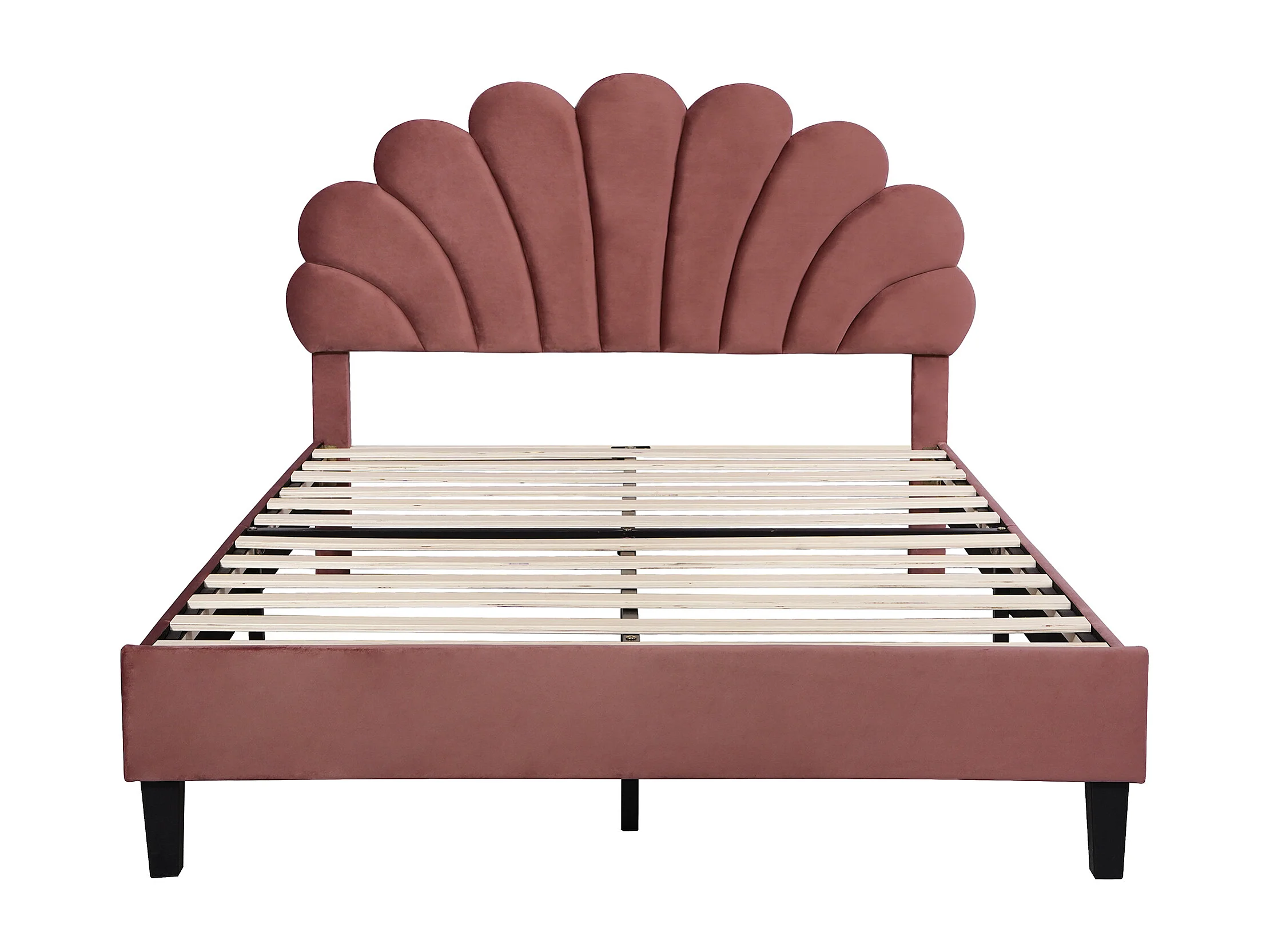 Łóżko dziecięce 140x200 cm - zagłówek w kształcie kwiatka - welur w kolorze fasolowym - materac nie jest wliczony w cenę