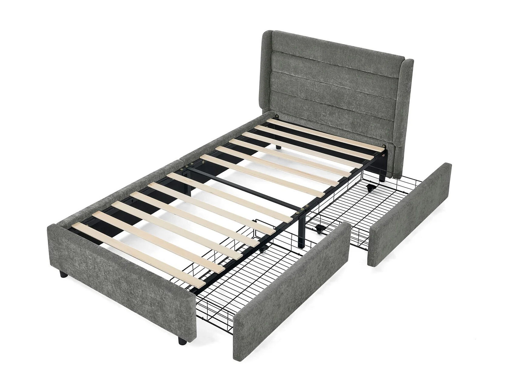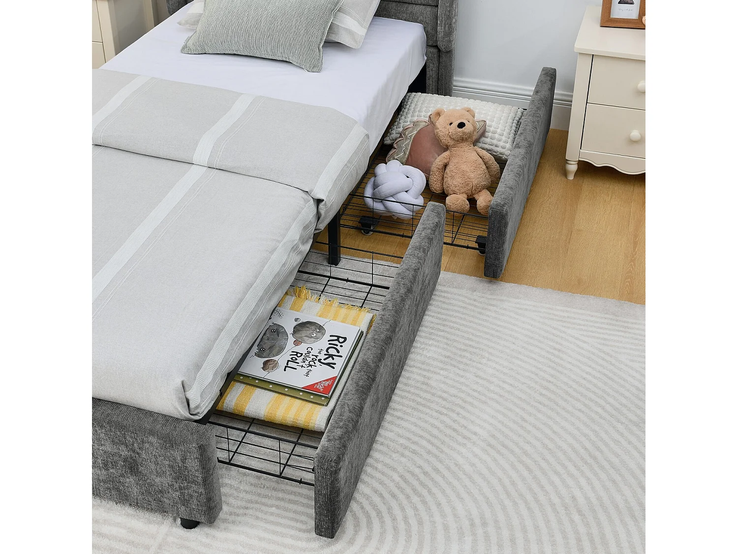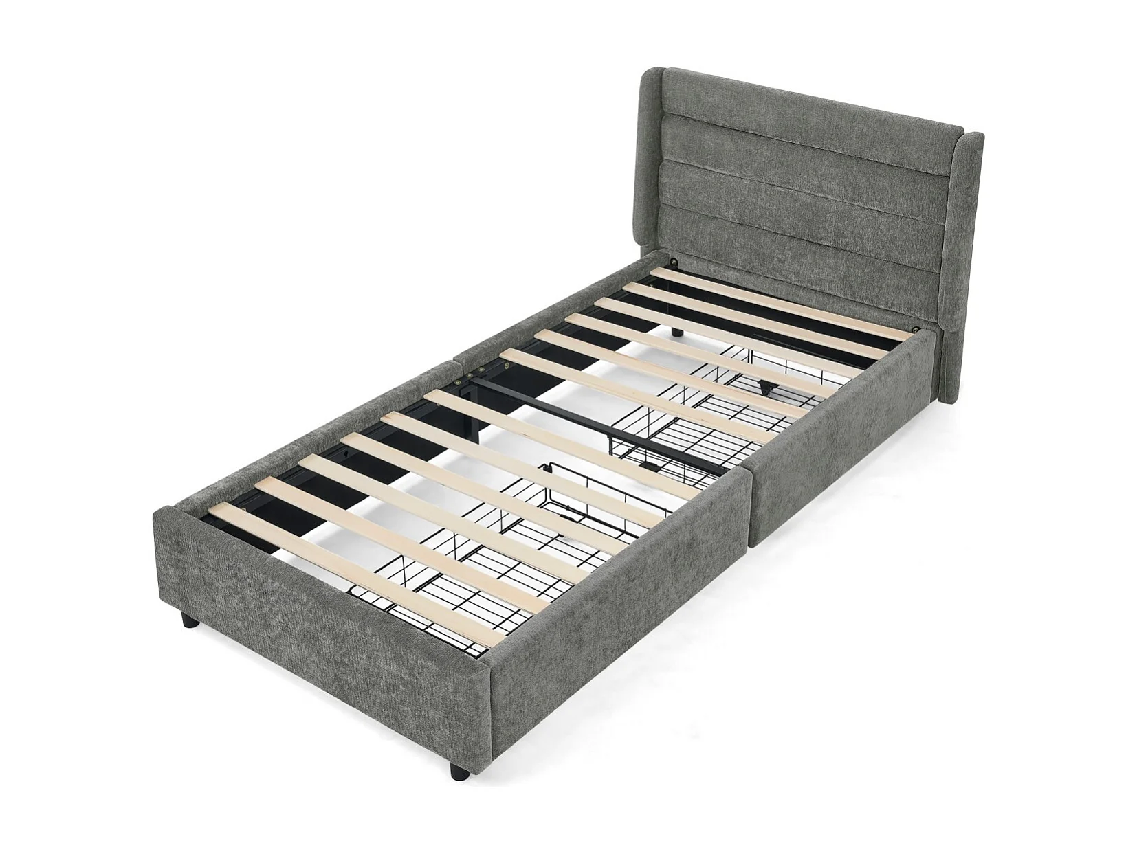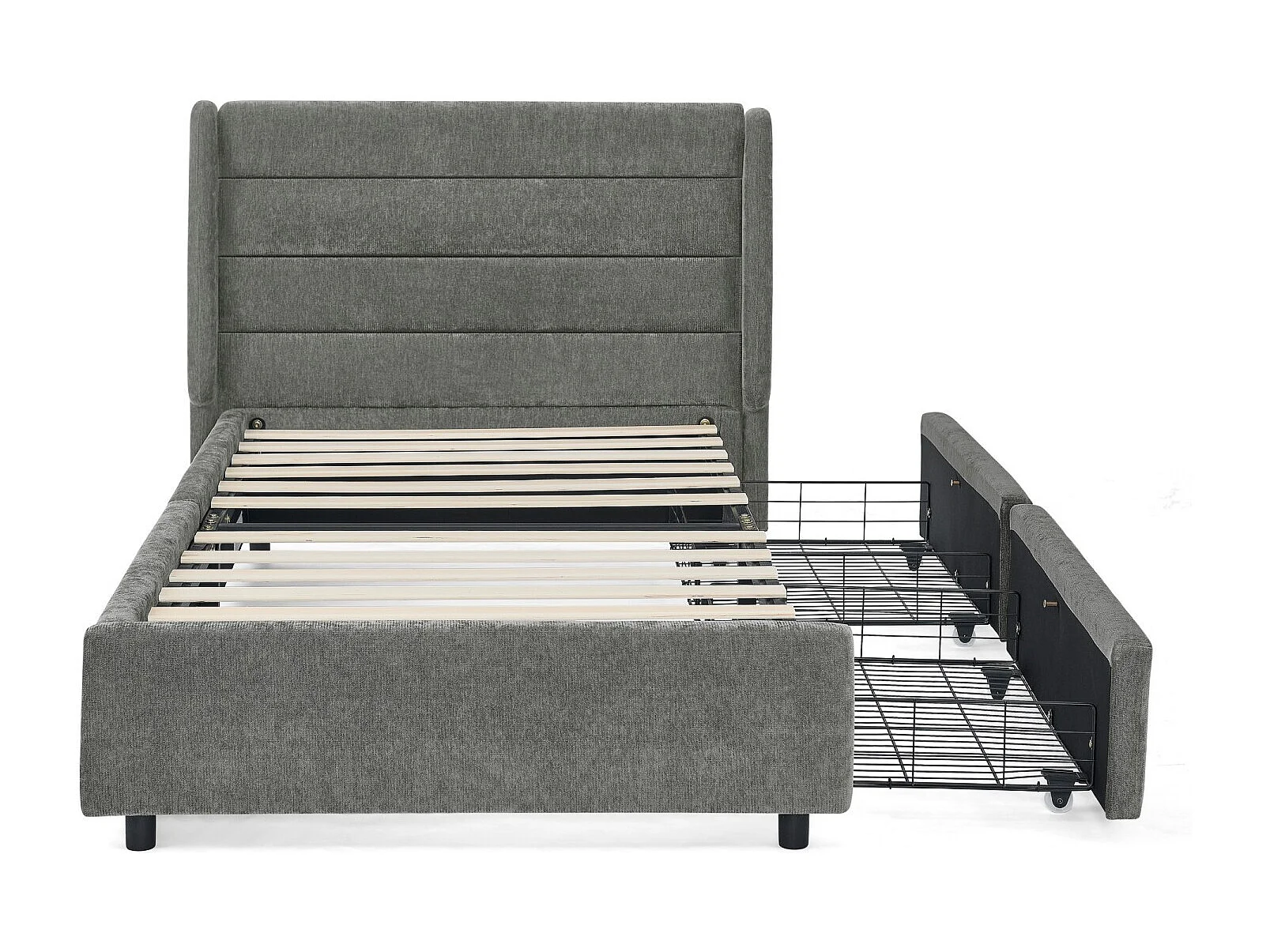 Łóżko dziecięce 90x200 cm Łóżko młodzieżowe z 2 szufladami i stelażem - ciemnoszary szenil (bez materaca)