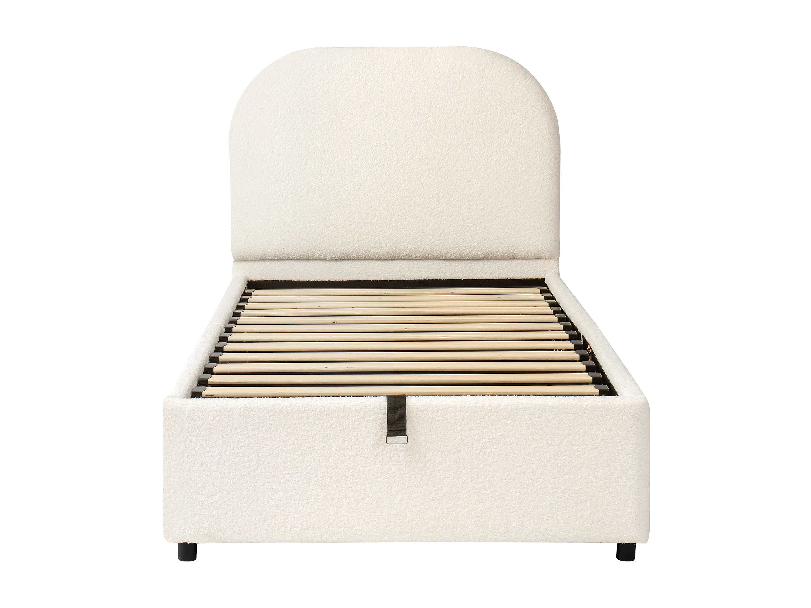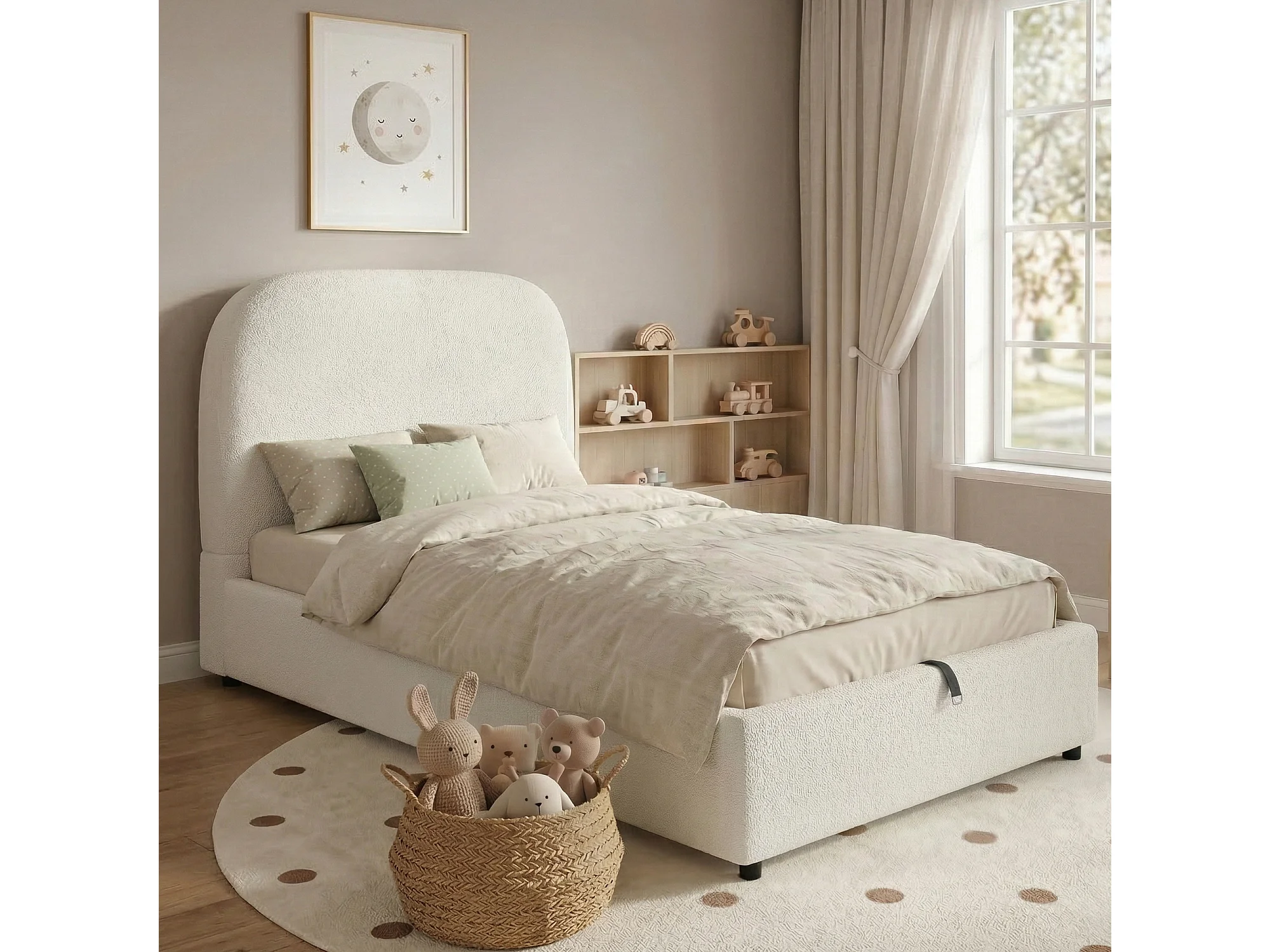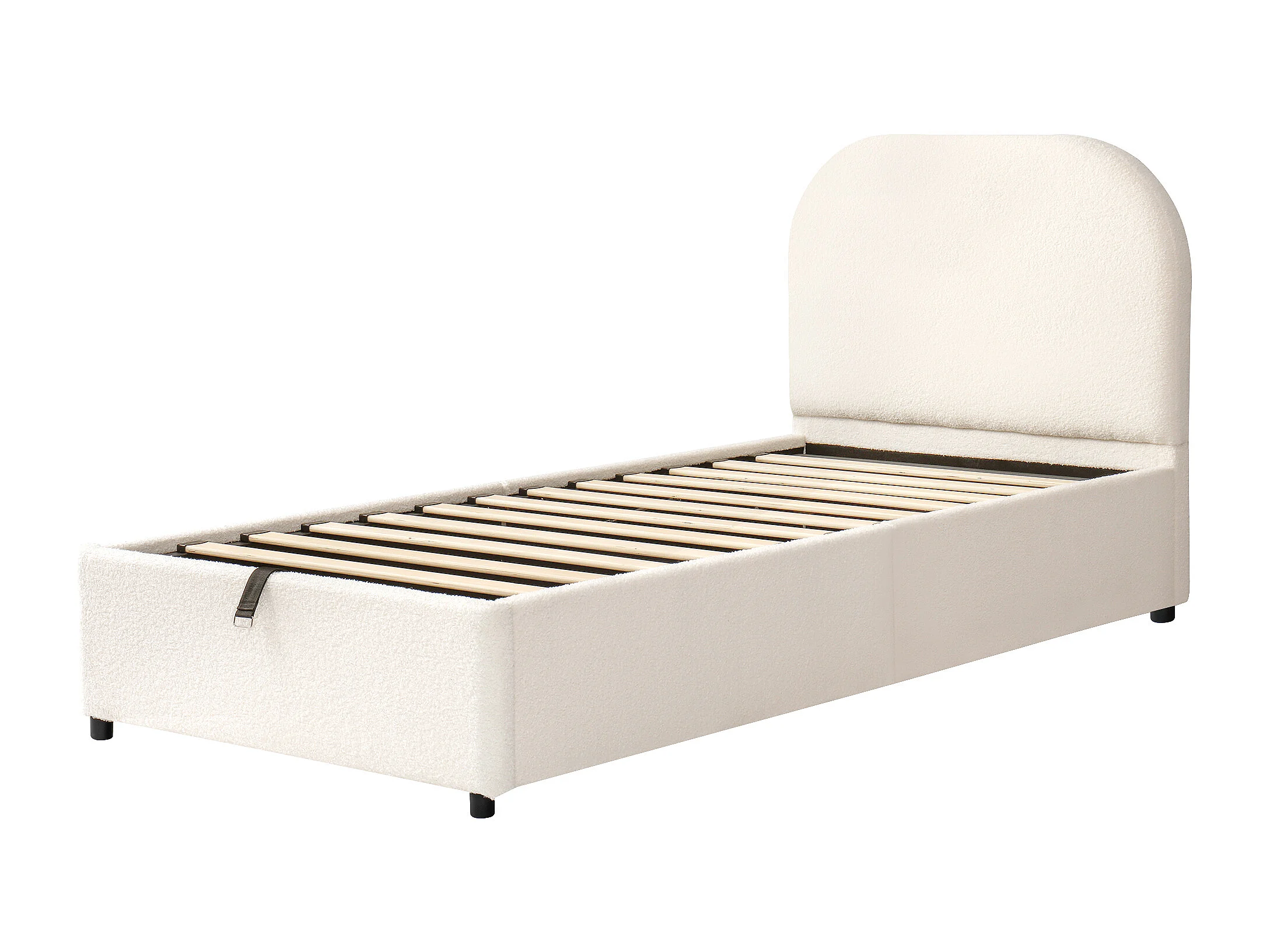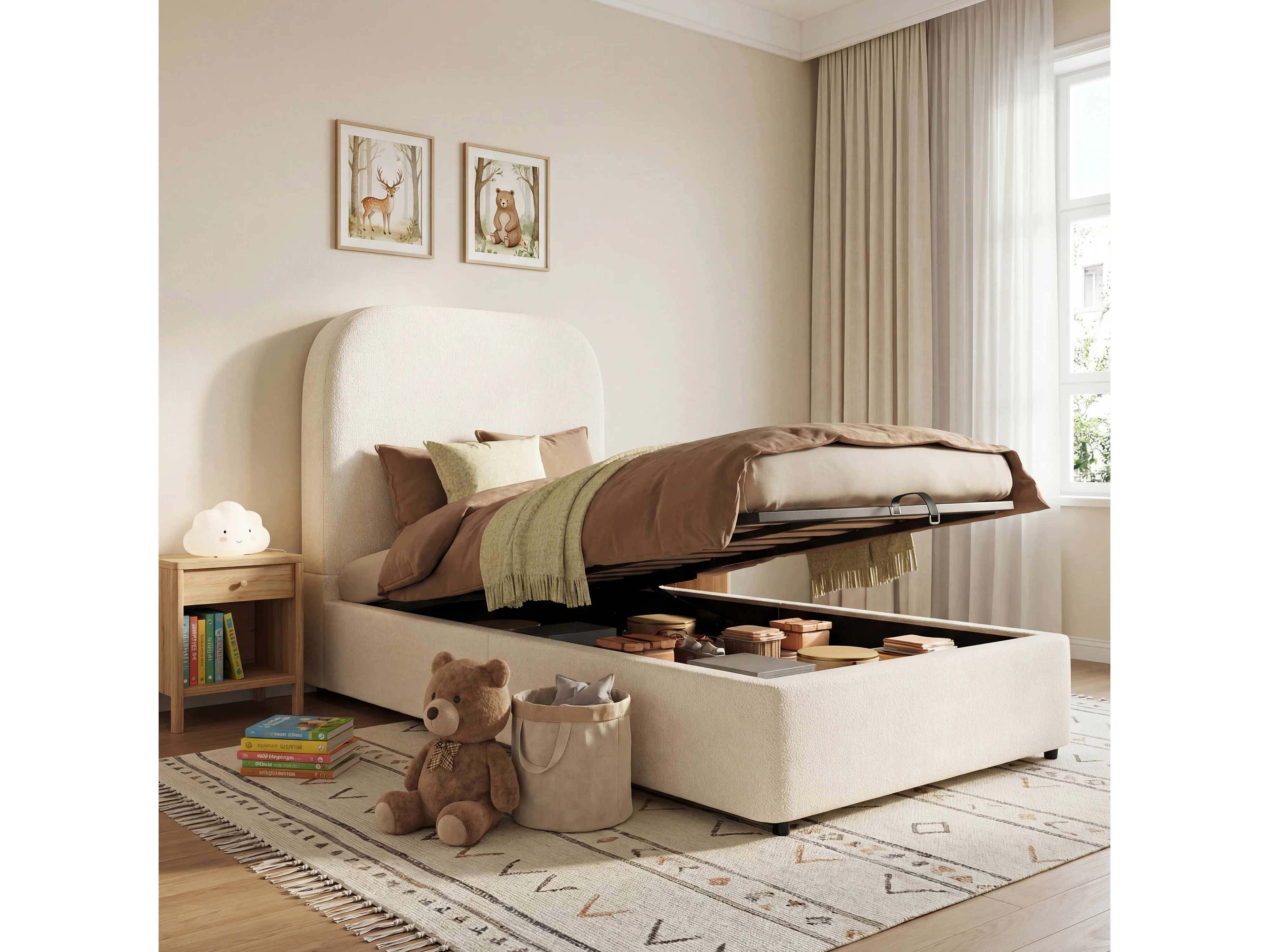 Łóżko dziecięce z pojemnikiem 90x200cm - Z pikowanym wezgłowiem - Z miejscem do przechowywania - Tkanina bouclé - Beżowy (bez materaca)