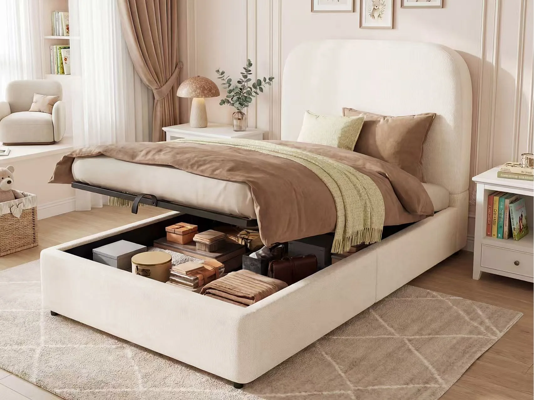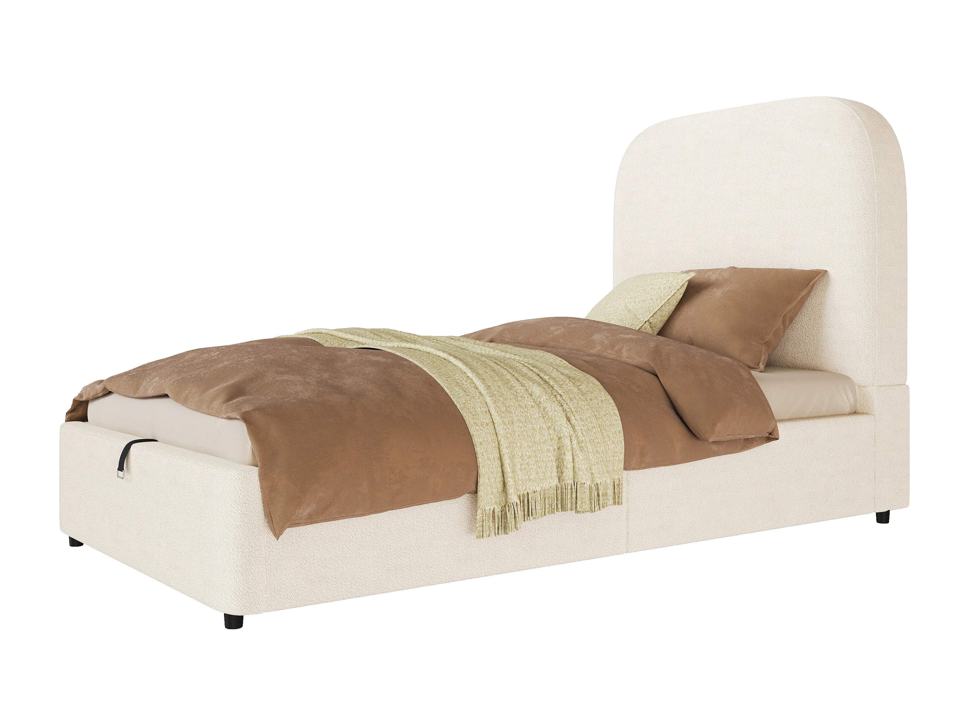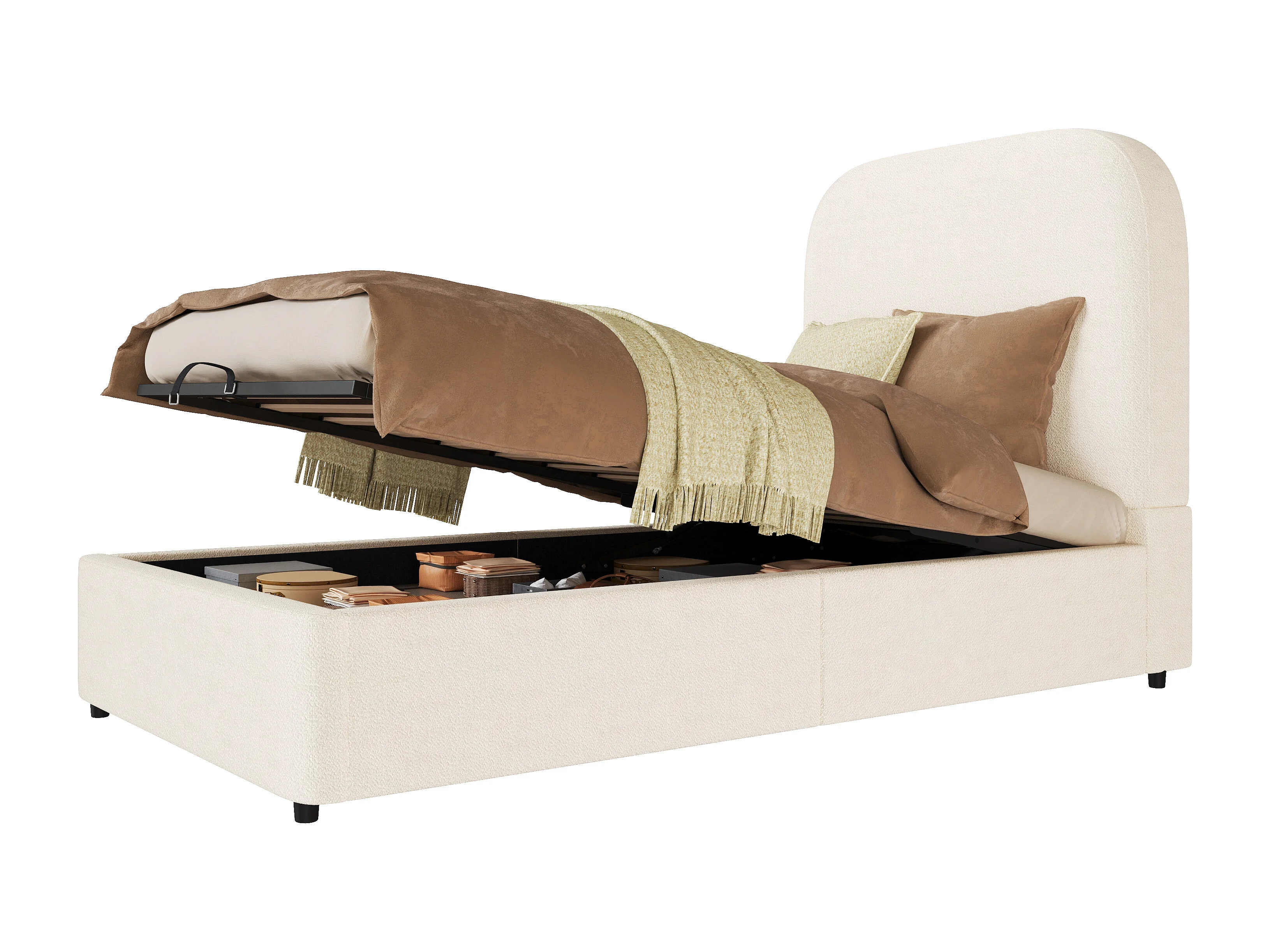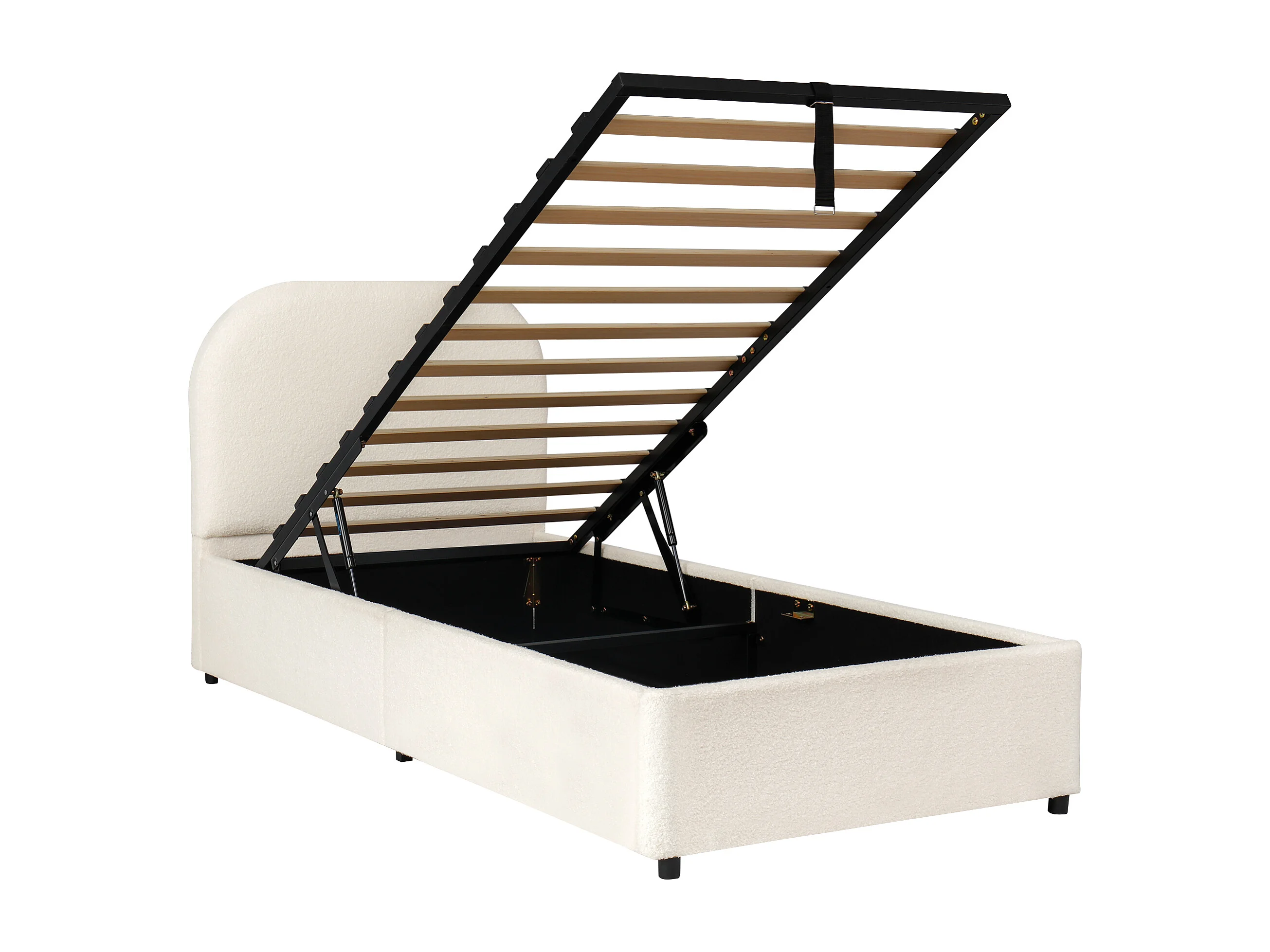 Łóżko dziecięce z pojemnikiem 90x200cm - Z pikowanym wezgłowiem - Z miejscem do przechowywania - Tkanina bouclé - Beżowy (bez materaca)