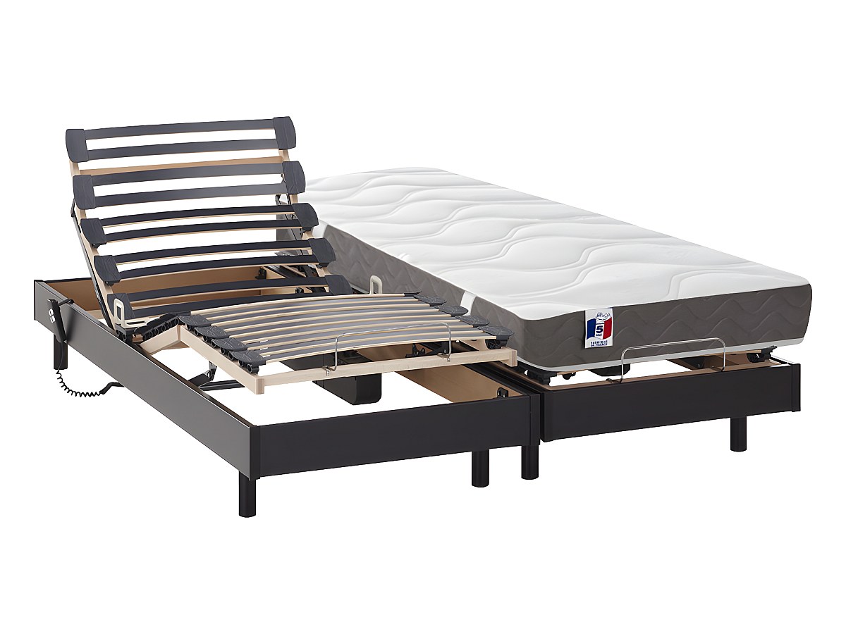 Łóżko elektryczne relaksacyjne, materac 100% lateksu 5 stref ANANKE DREAMEA - czarny - 2x80x200 cm