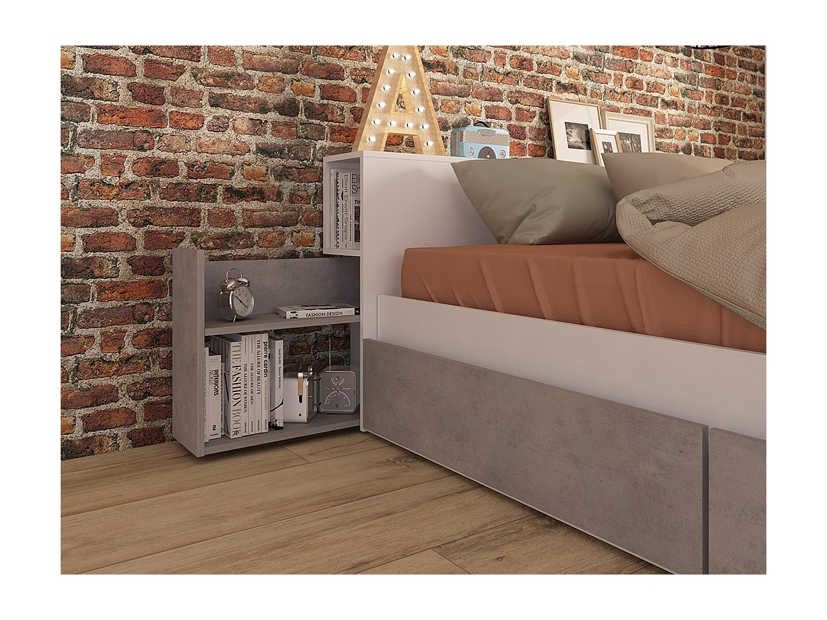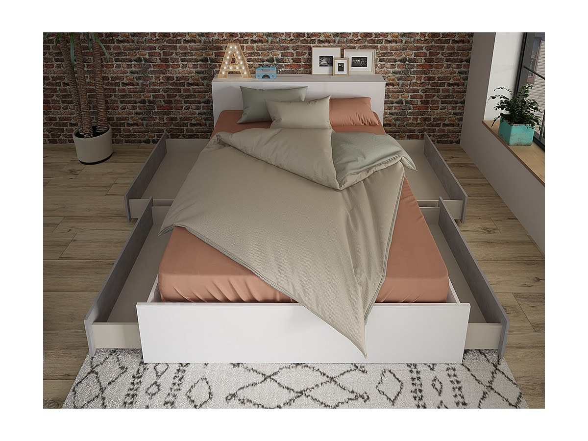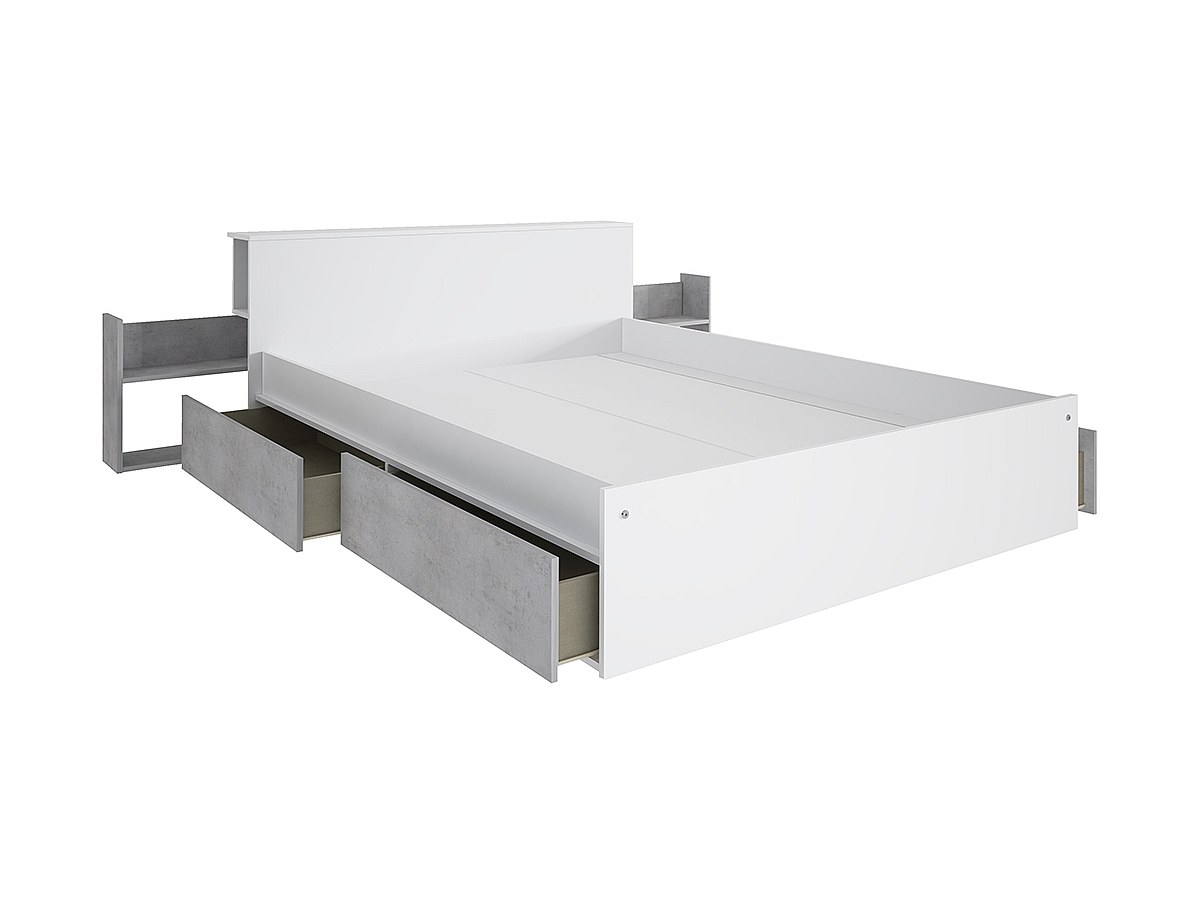 Łóżko FRANK z wbudowanymi szufladami i szafkami nocnymi - 140x190 cm - Kolor: Kolor biały i betonowy