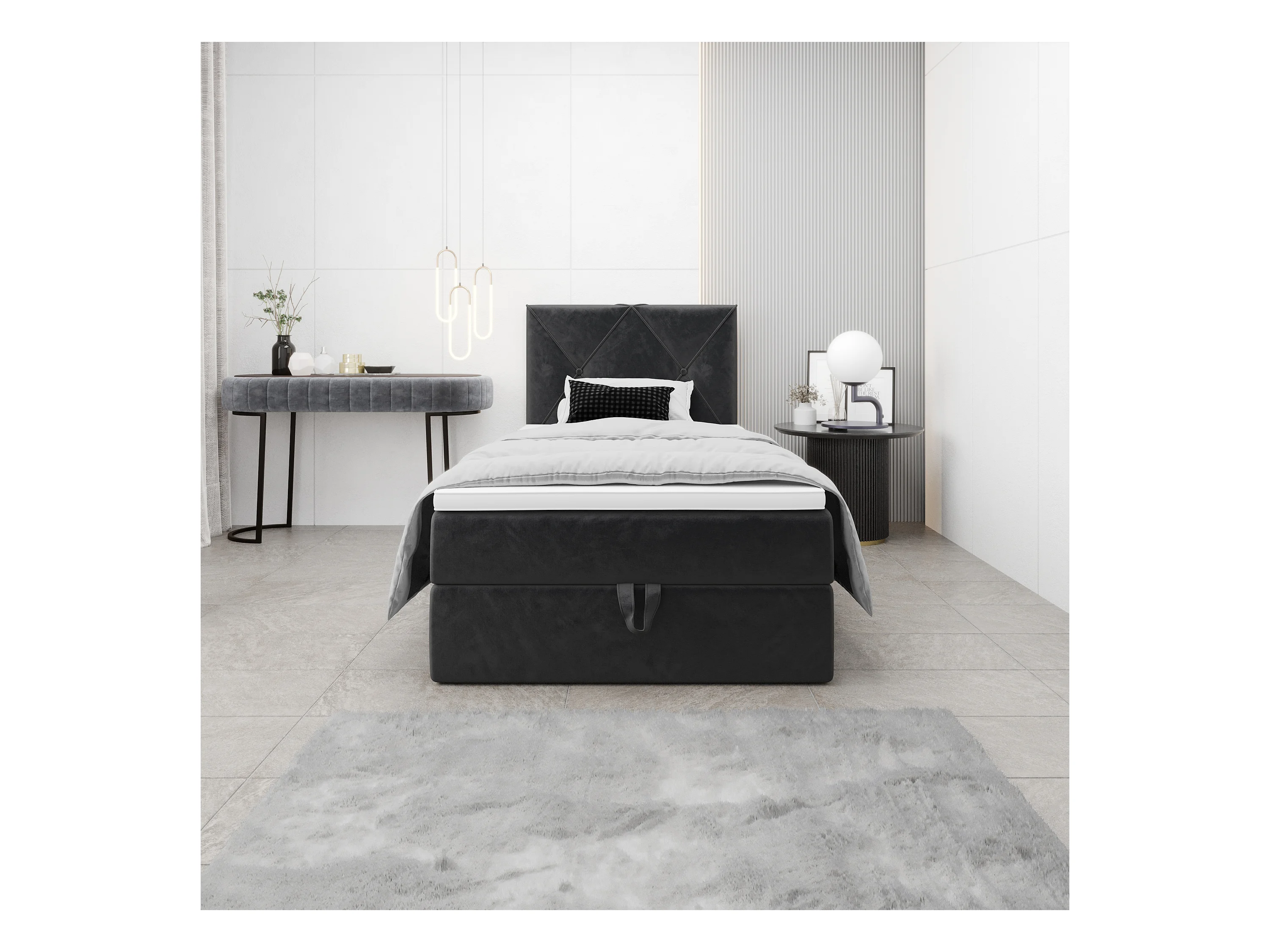 BEDANTE łóżko kontynentalne CHESTER PLUS 120x200 ciemnoszary z materacem H3 i topperem łóżko z pojemnikiem, pojedyncze, hotelowe, do sypialni, ze schowkiem