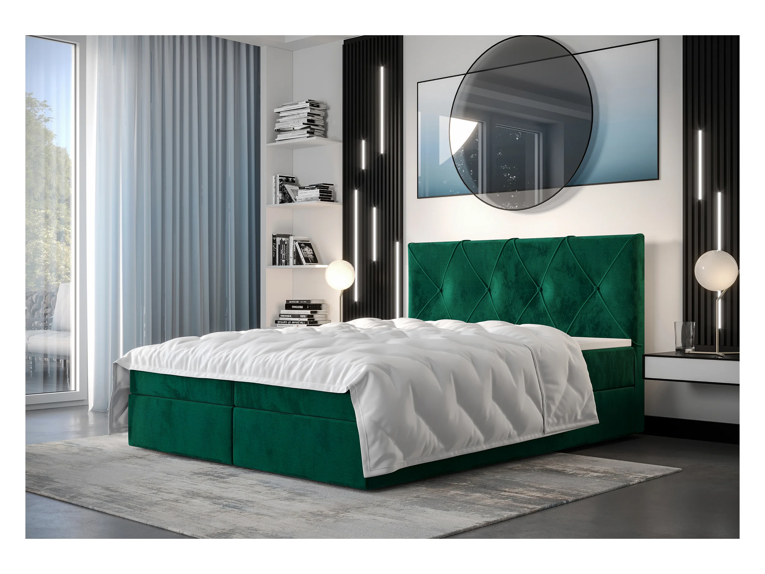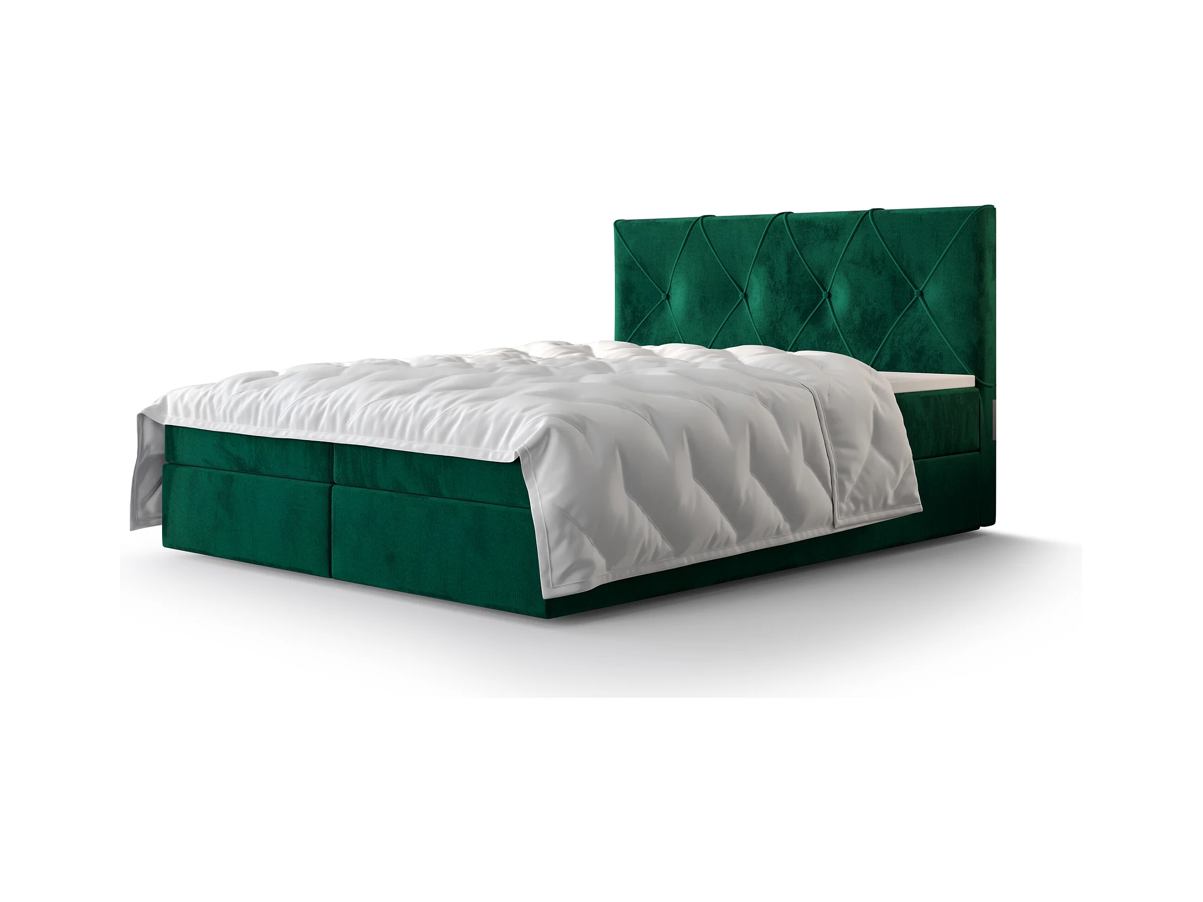 BEDANTE Łóżko kontynentalne KIDA 200x200 Curio 39 Ciemnozielony Łóżko małżeńskie Łóżko hotelowe Sypialnia Materac Topper Schowek