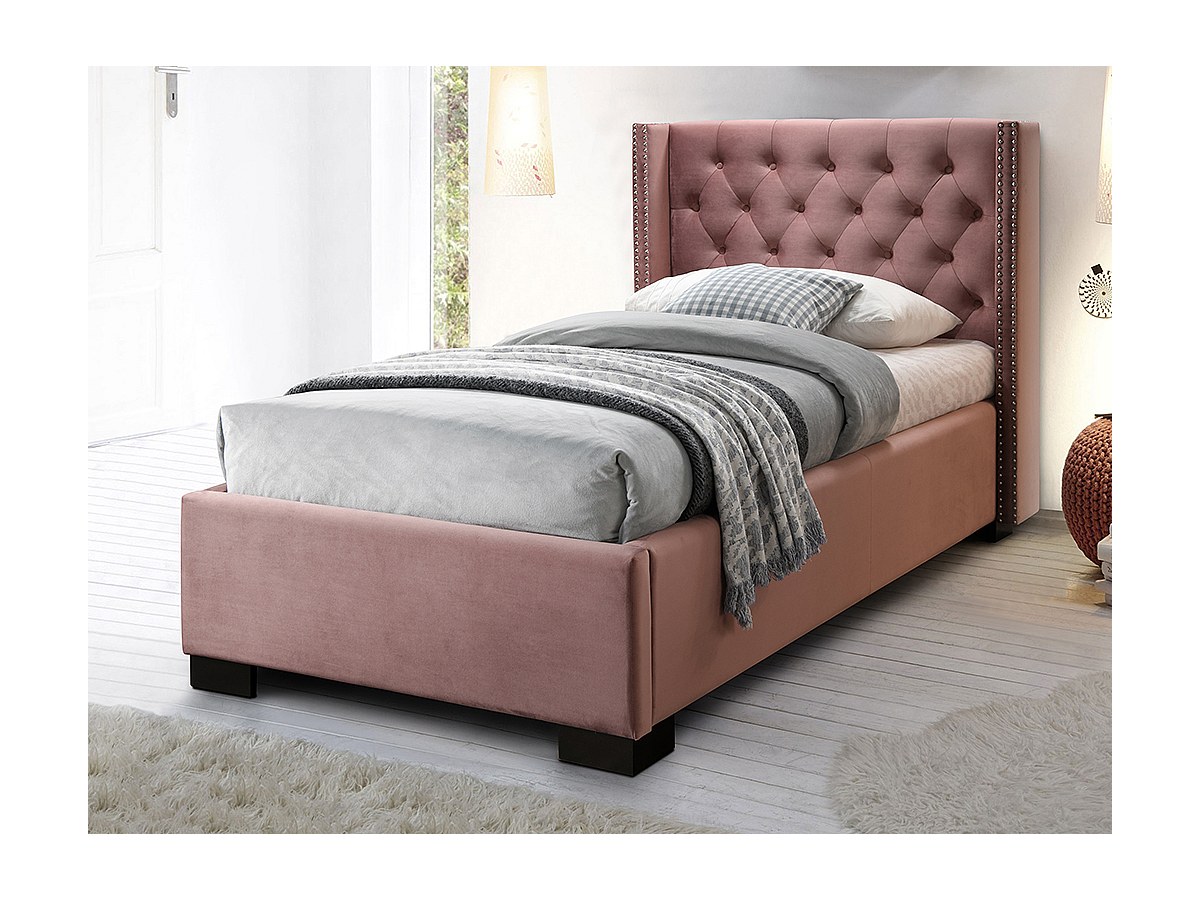Łóżko MASSIMO z pikowanym zagłówkiem – 90 × 200 cm – welur w kolorze różowym