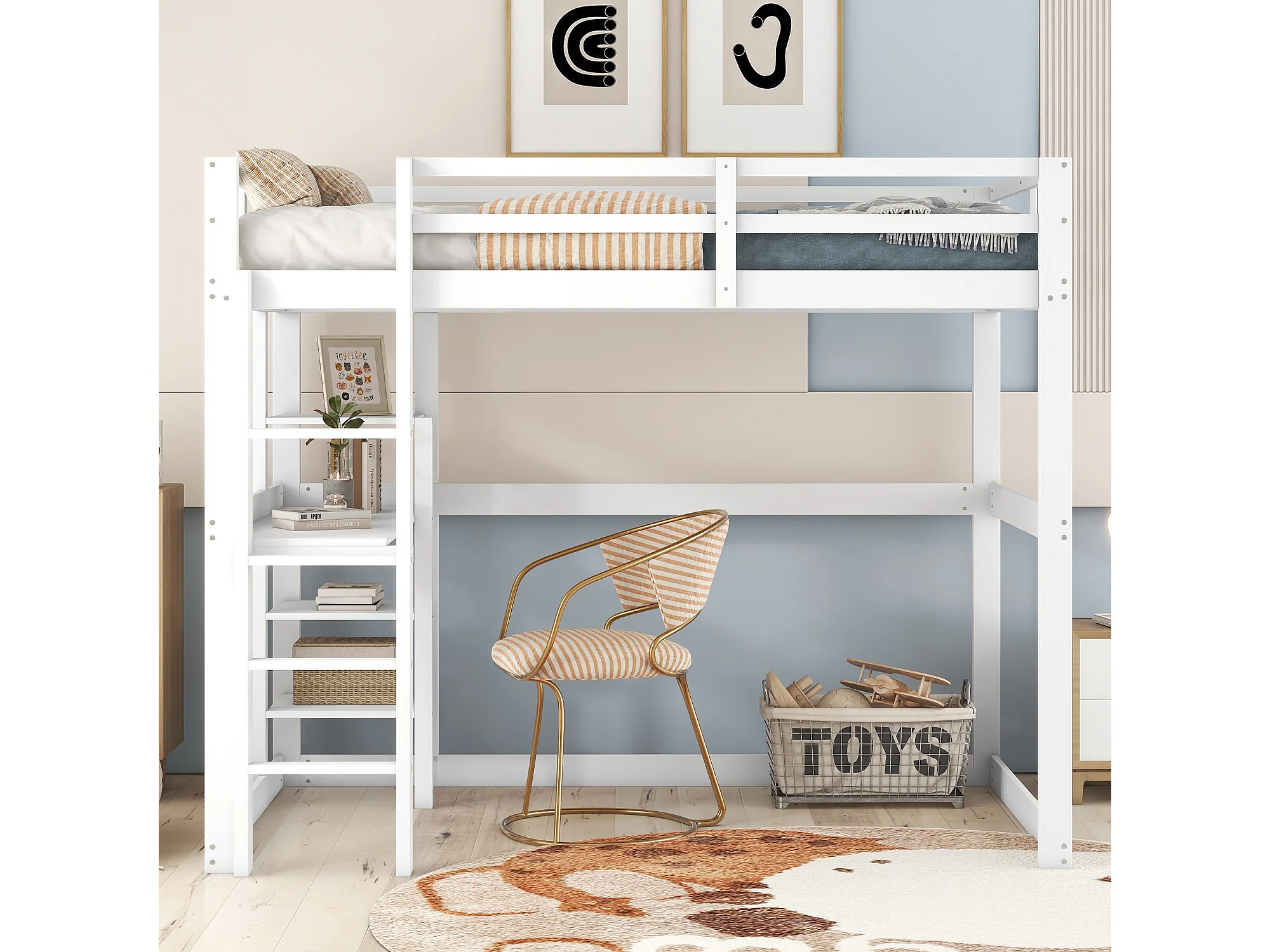 Łóżko piętrowe - 140 x 200 cm - z biurkiem i półką - sosna - kolor biały