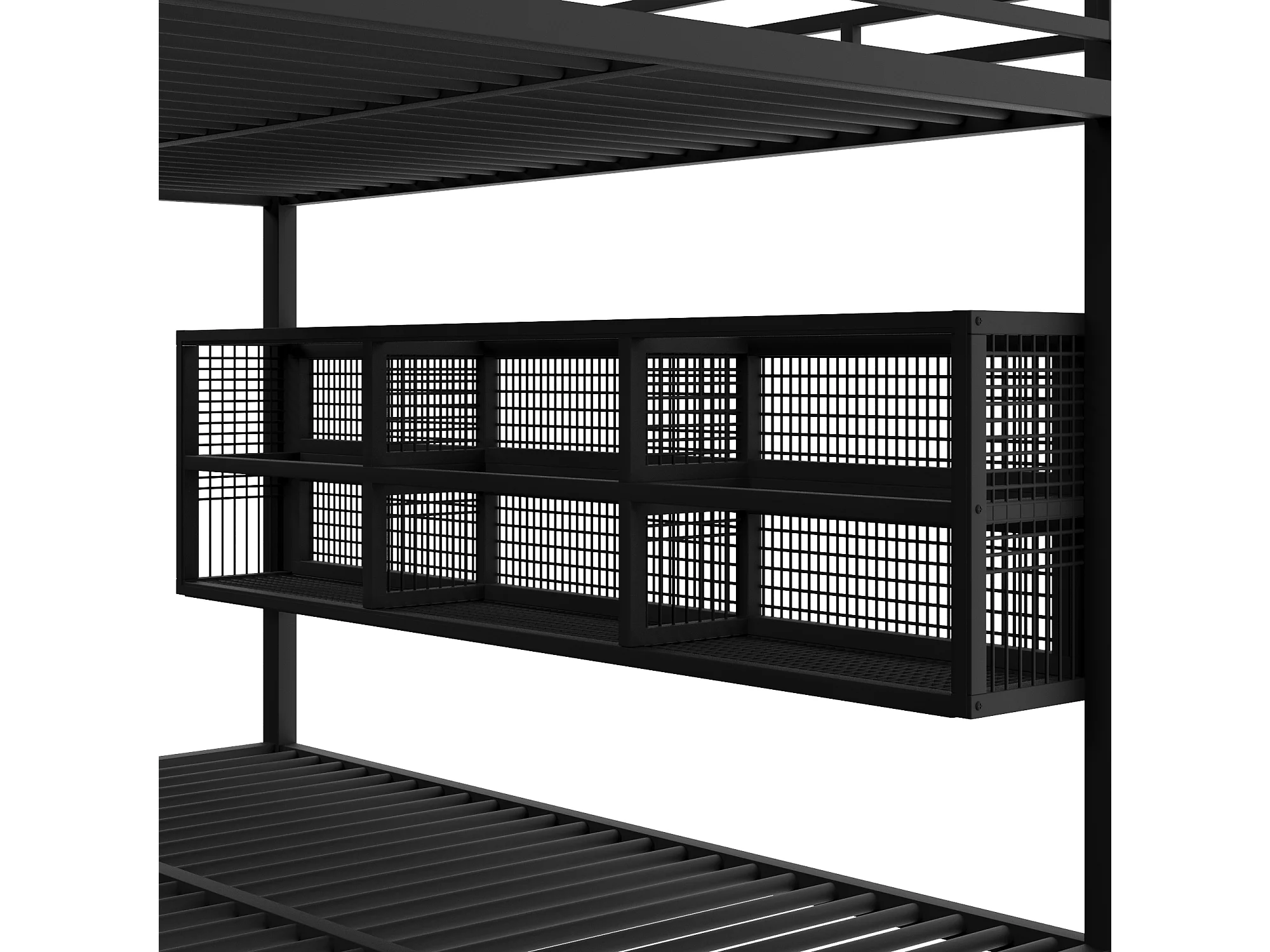 Łóżko piętrowe dla dzieci - 90 x 200 cm + 140 x 200 cm - z szafką na buty + schowkiem - metalowe - czarne