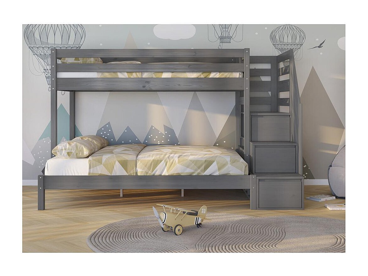 Łóżko piętrowe 2076x1456x159 cm Szare trio