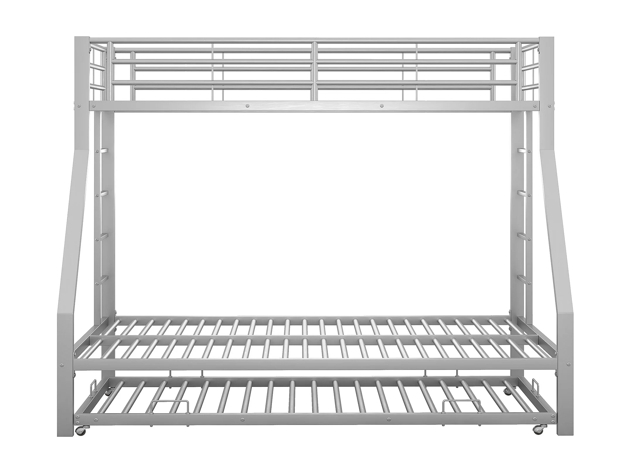 Łóżko piętrowe 4-osobowe wysuwane - 140 x 200 cm + 2 x 90 x 200 cm - metalowe - stelaż listwowy - szare