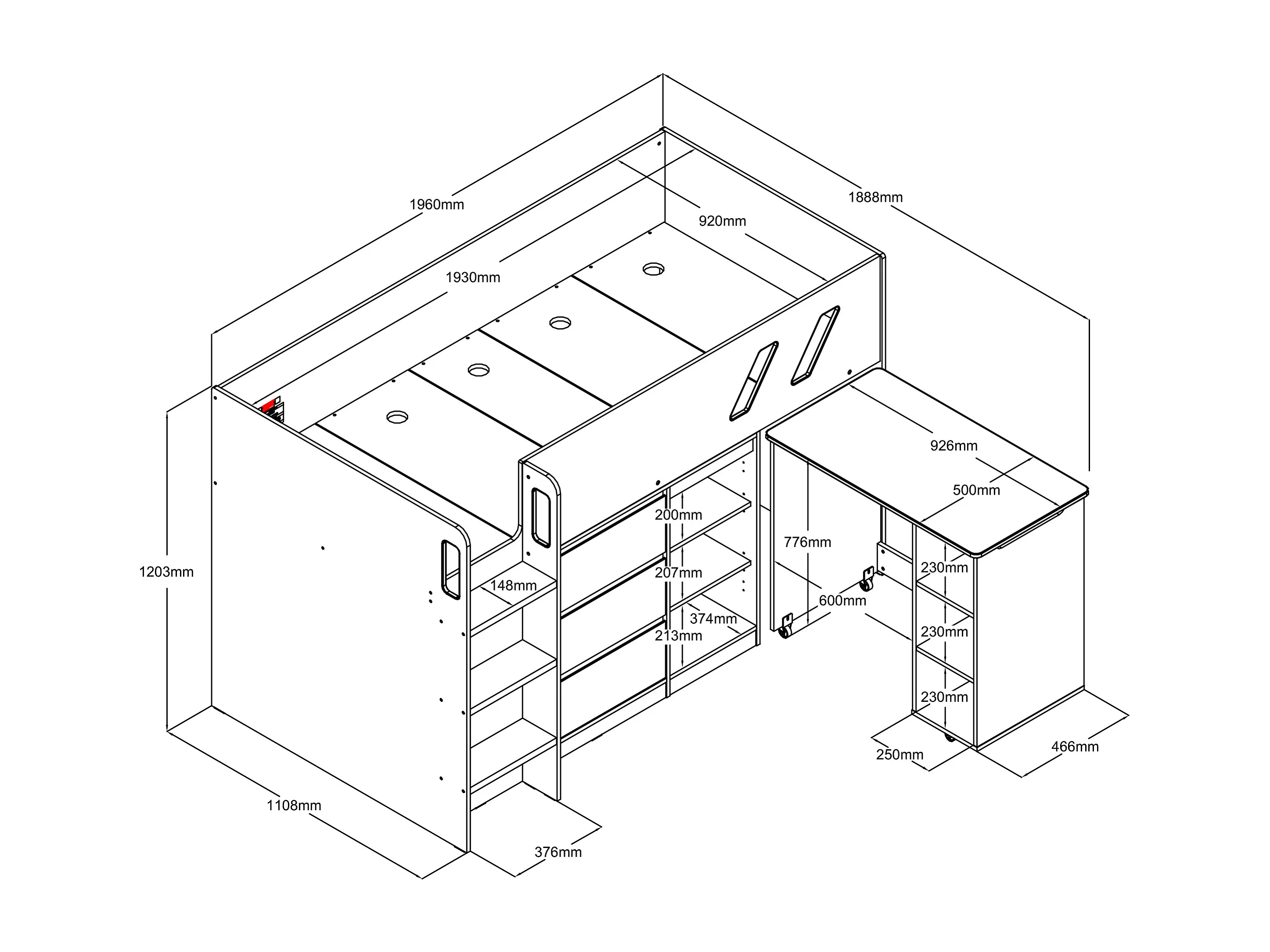 Łóżko piętrowe 90 x 190 cm z biurkiem i schowkami - Naturalny i biały - SAGITI