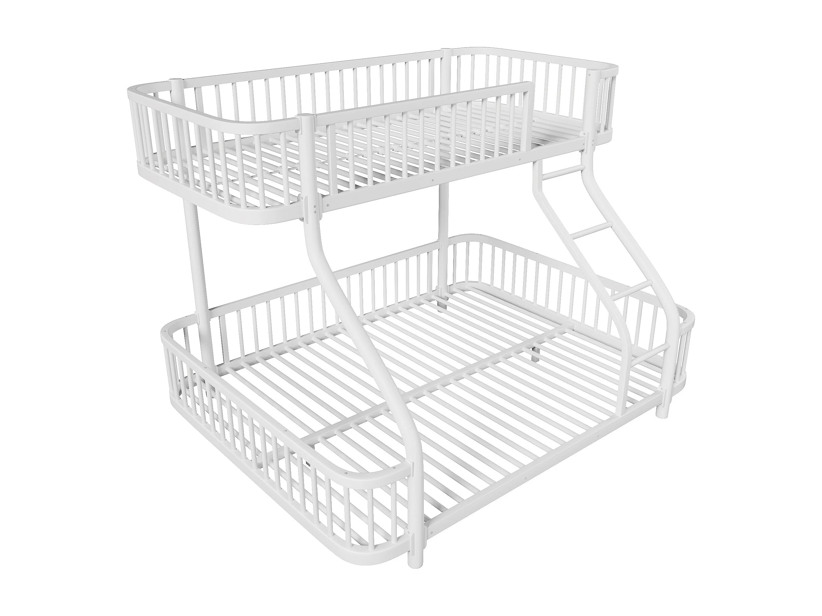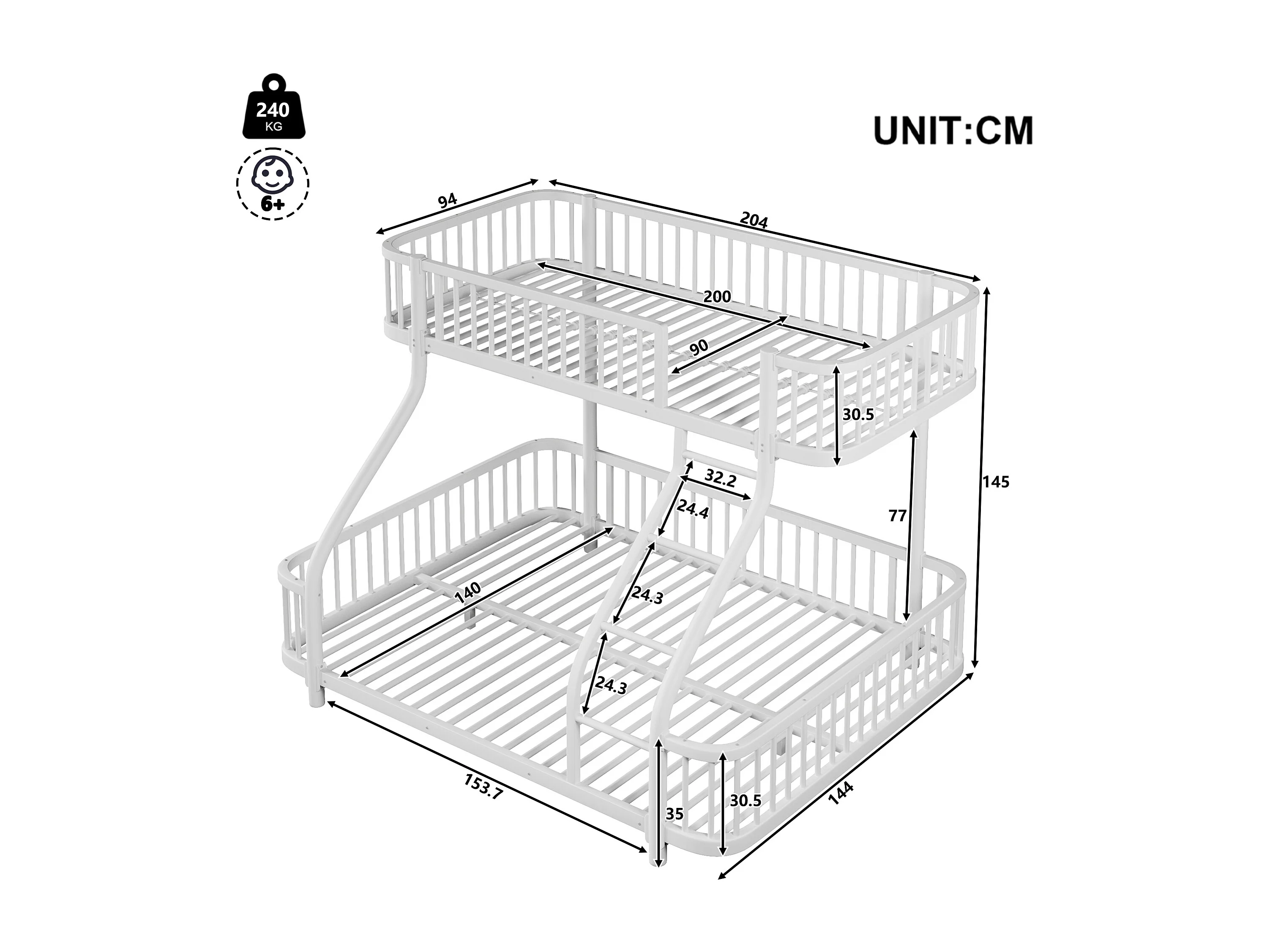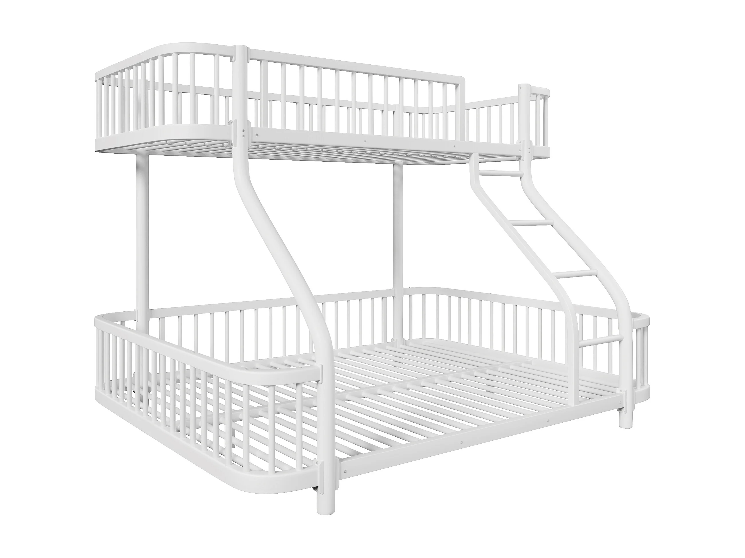 Łóżko piętrowe 90x200 cm + 140x200 cm - konstrukcja żelazna - z barierkami bezpieczeństwa - z drabiną - biały (materac nie jest wliczony w cenę)