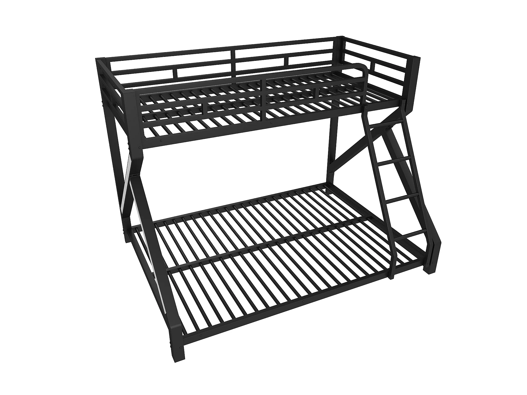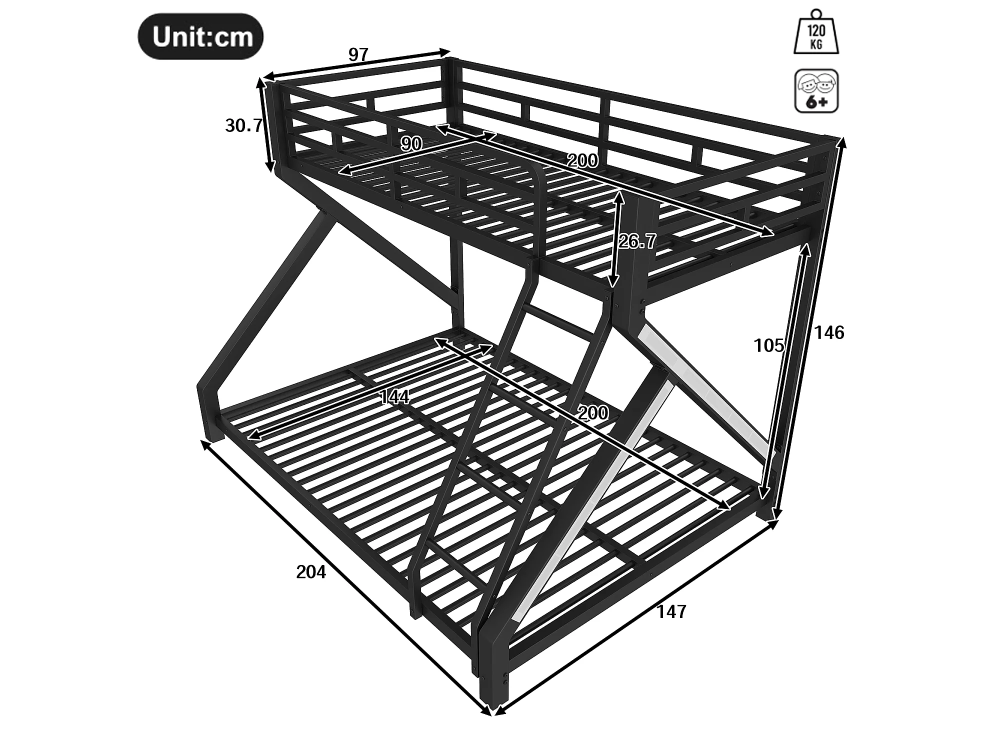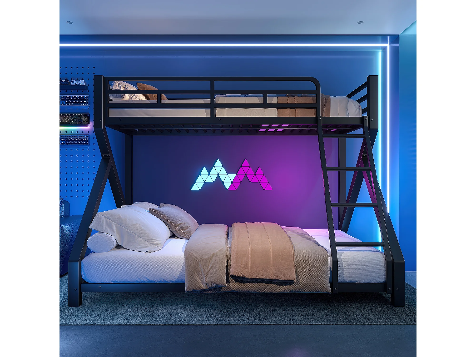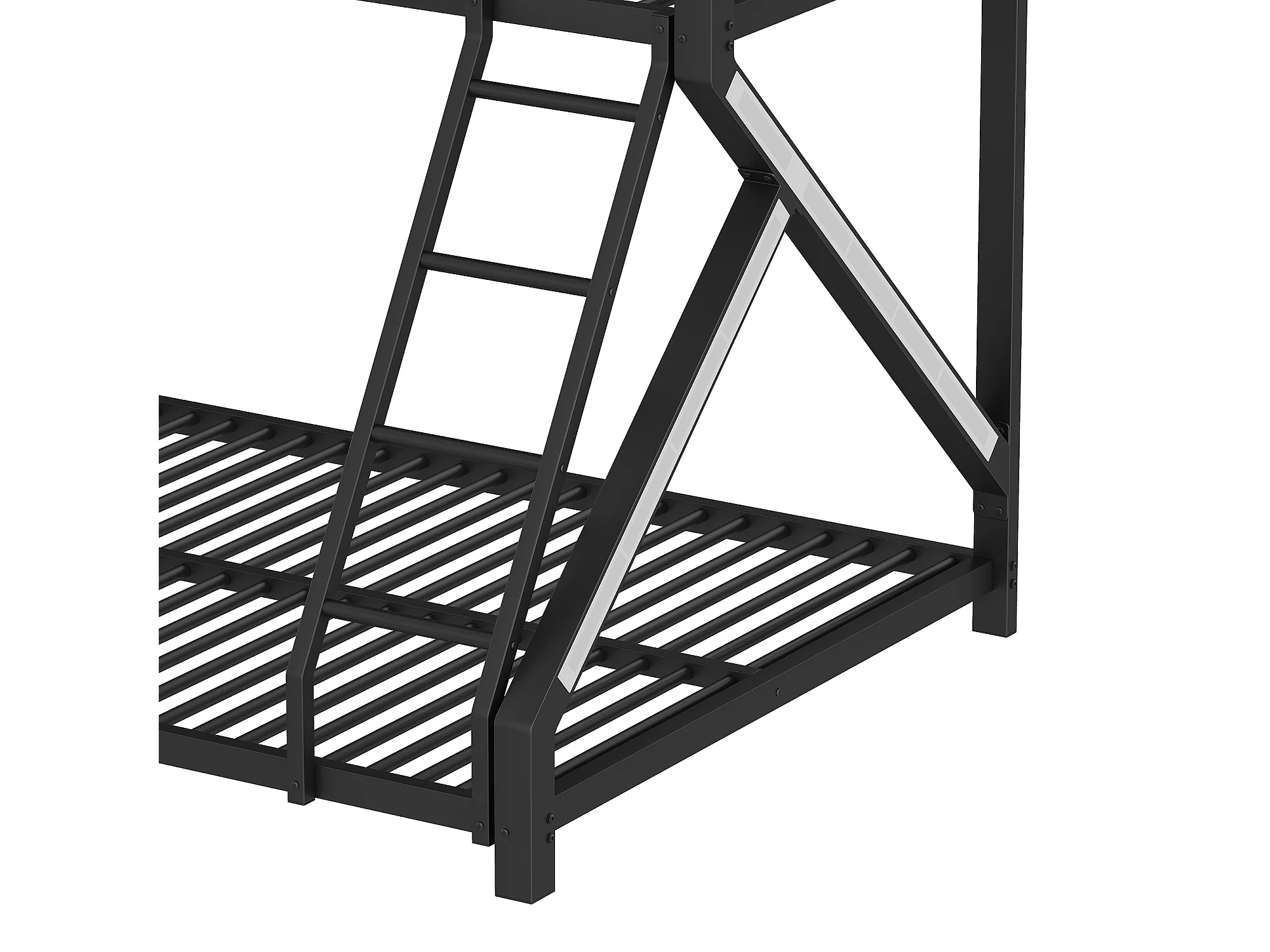 Łóżko piętrowe 90x200cm + 140x200cm - konstrukcja stalowa - z LED - z barierkami bezpieczeństwa i drabiną - czarny (materac nie jest wliczony w cenę)