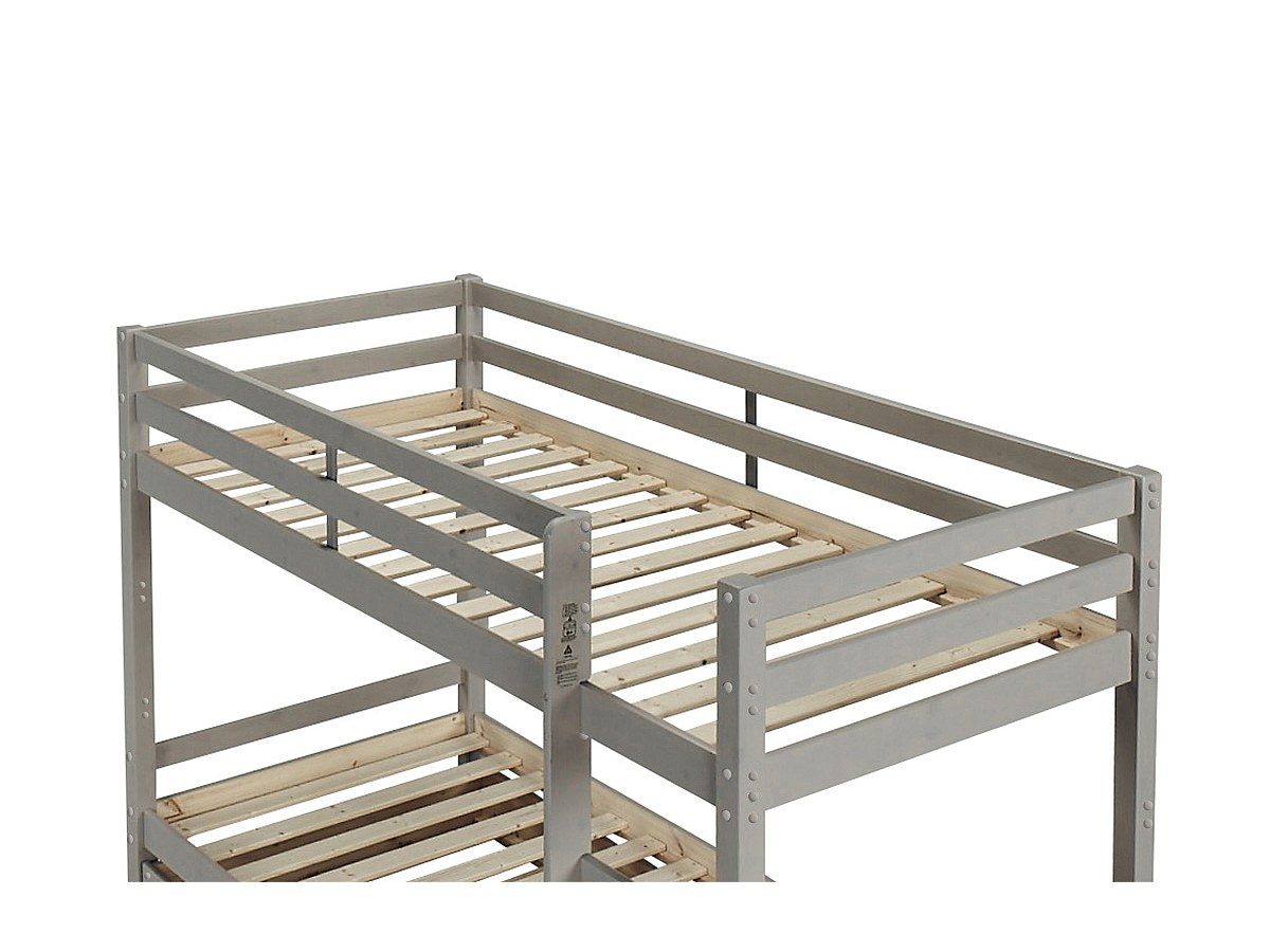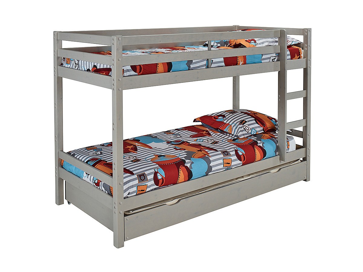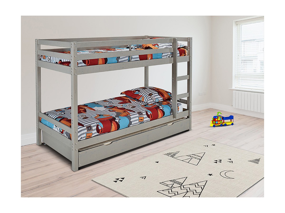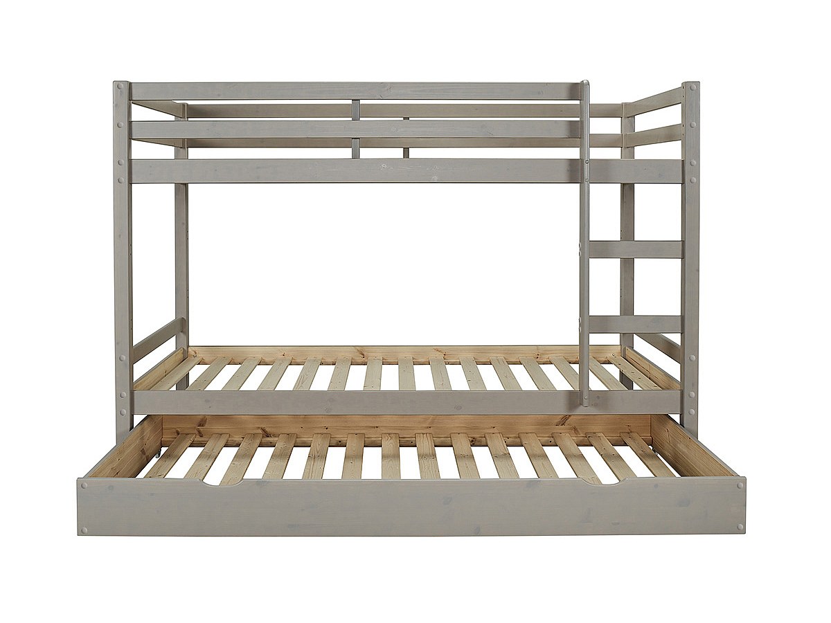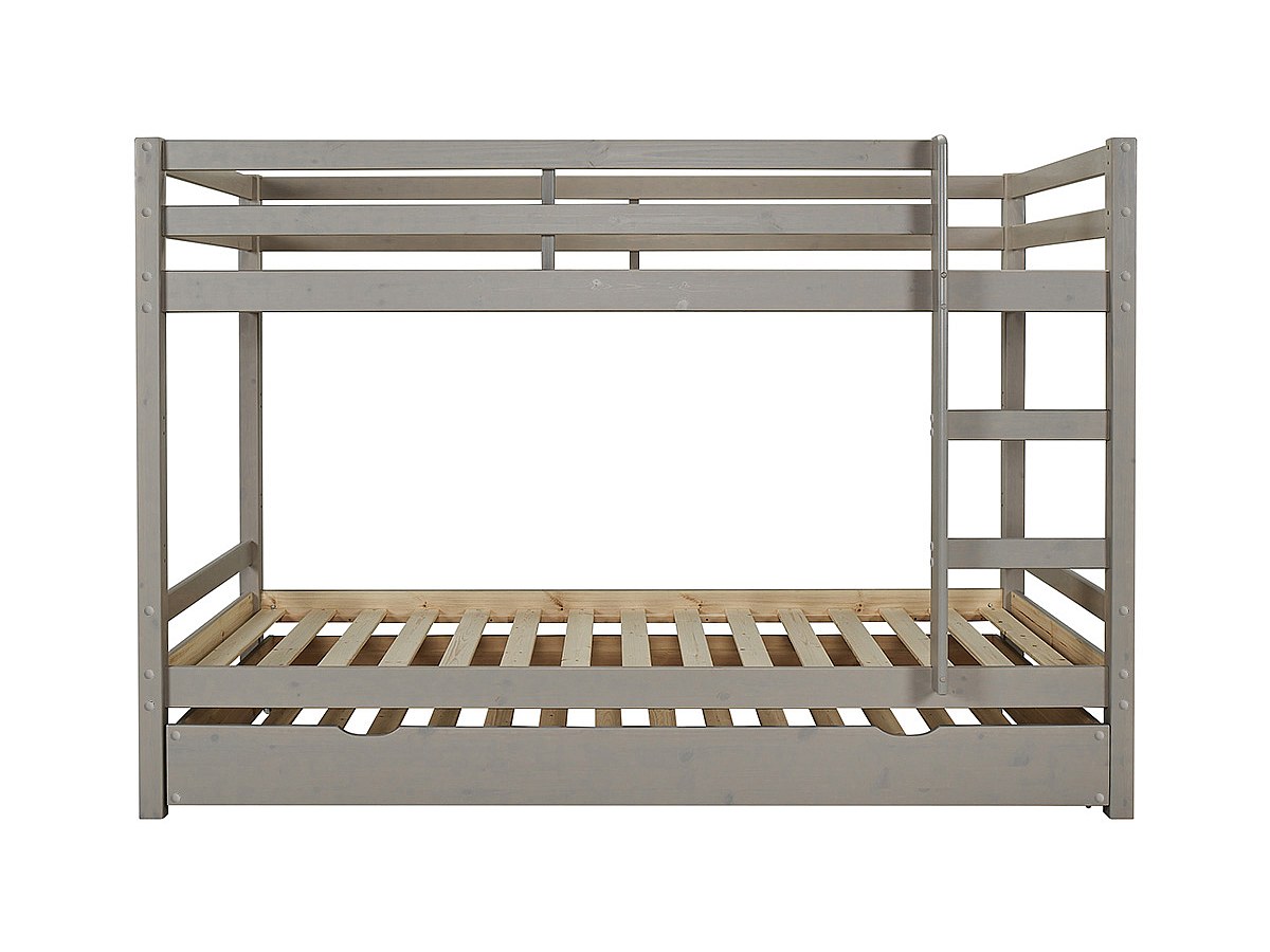 Łóżko piętrowe ANICET - 2x90x200cm z łóżkiem wysuwanym 90x190cm - lita sosna kolor szary