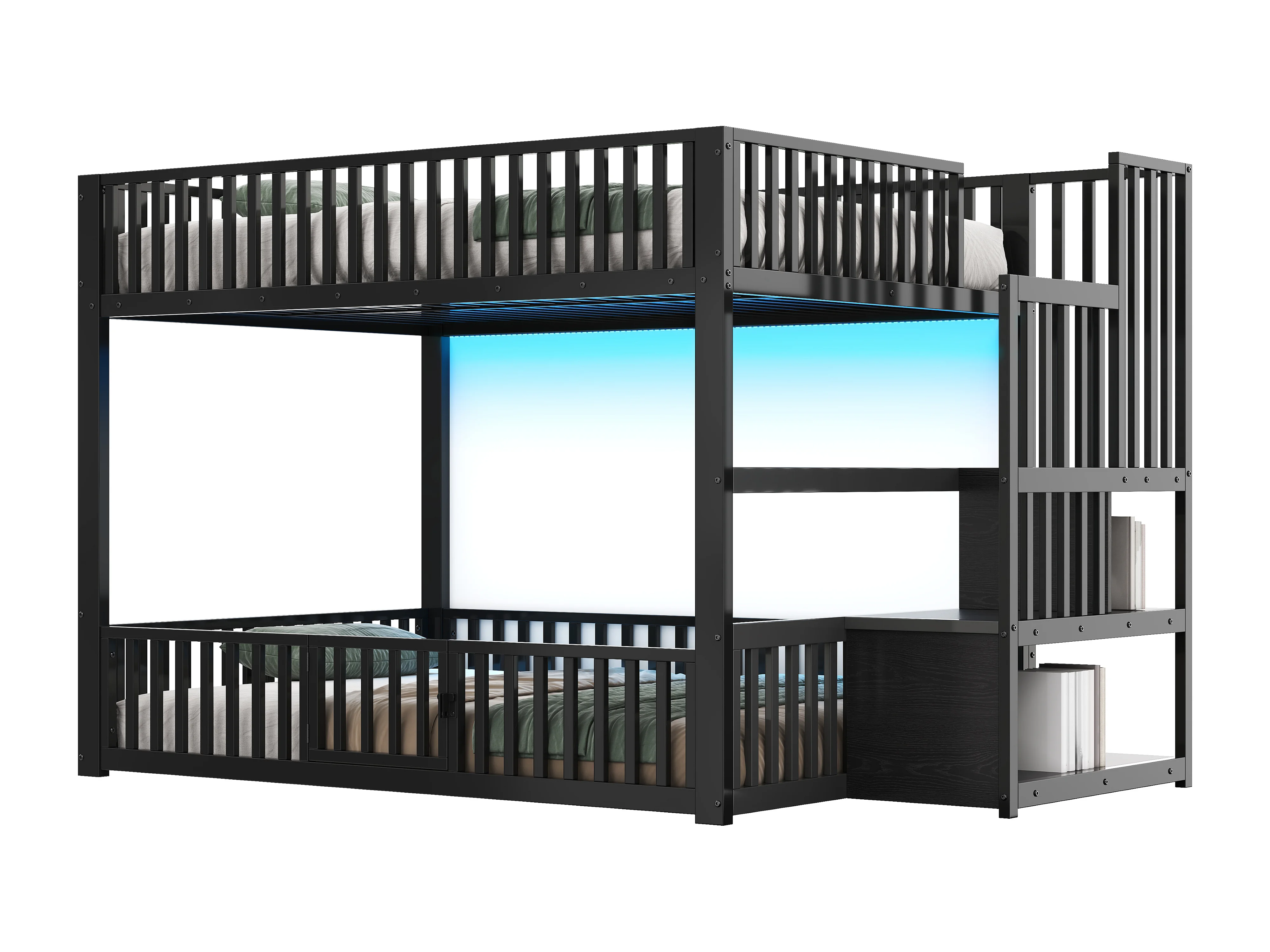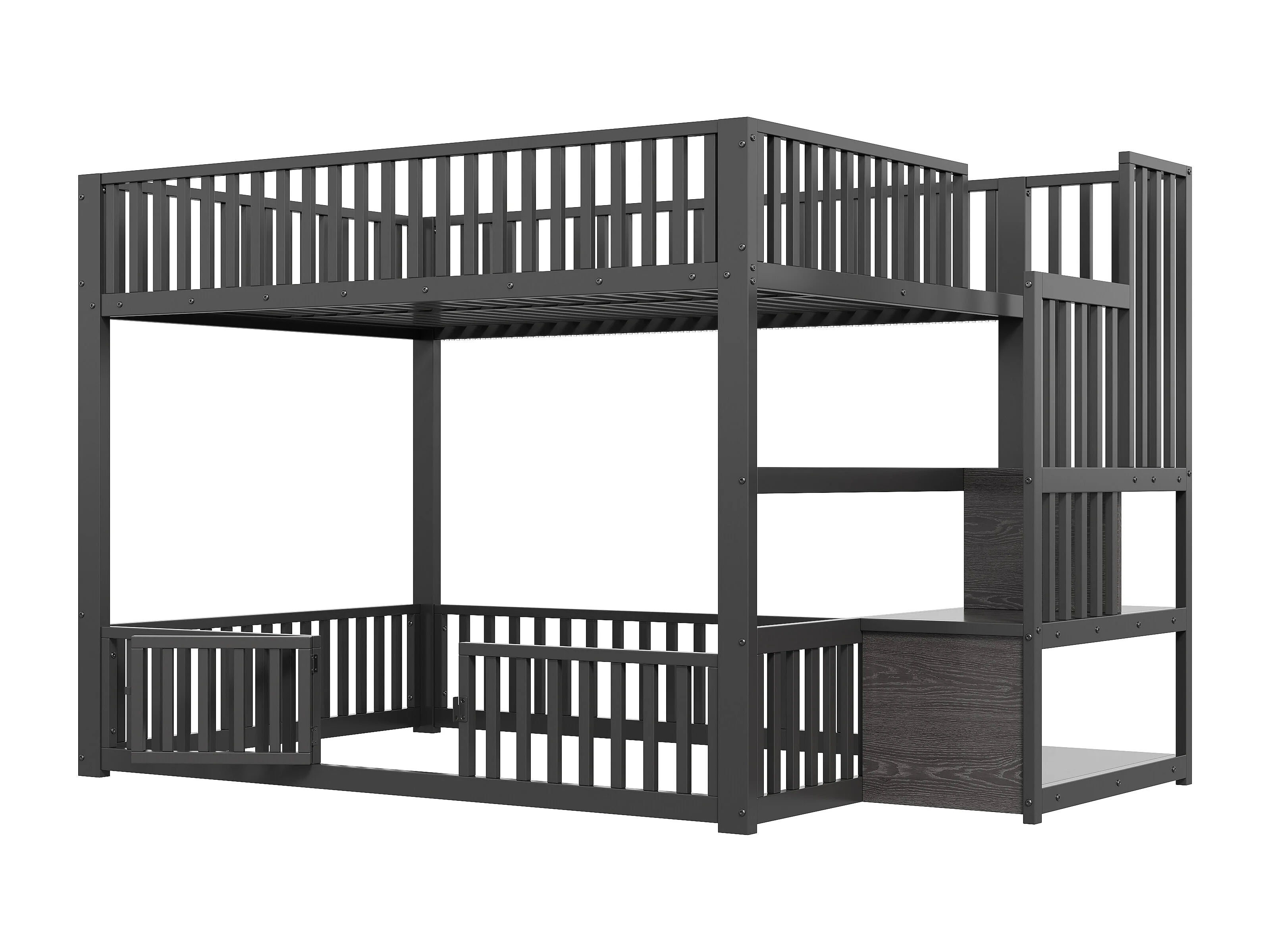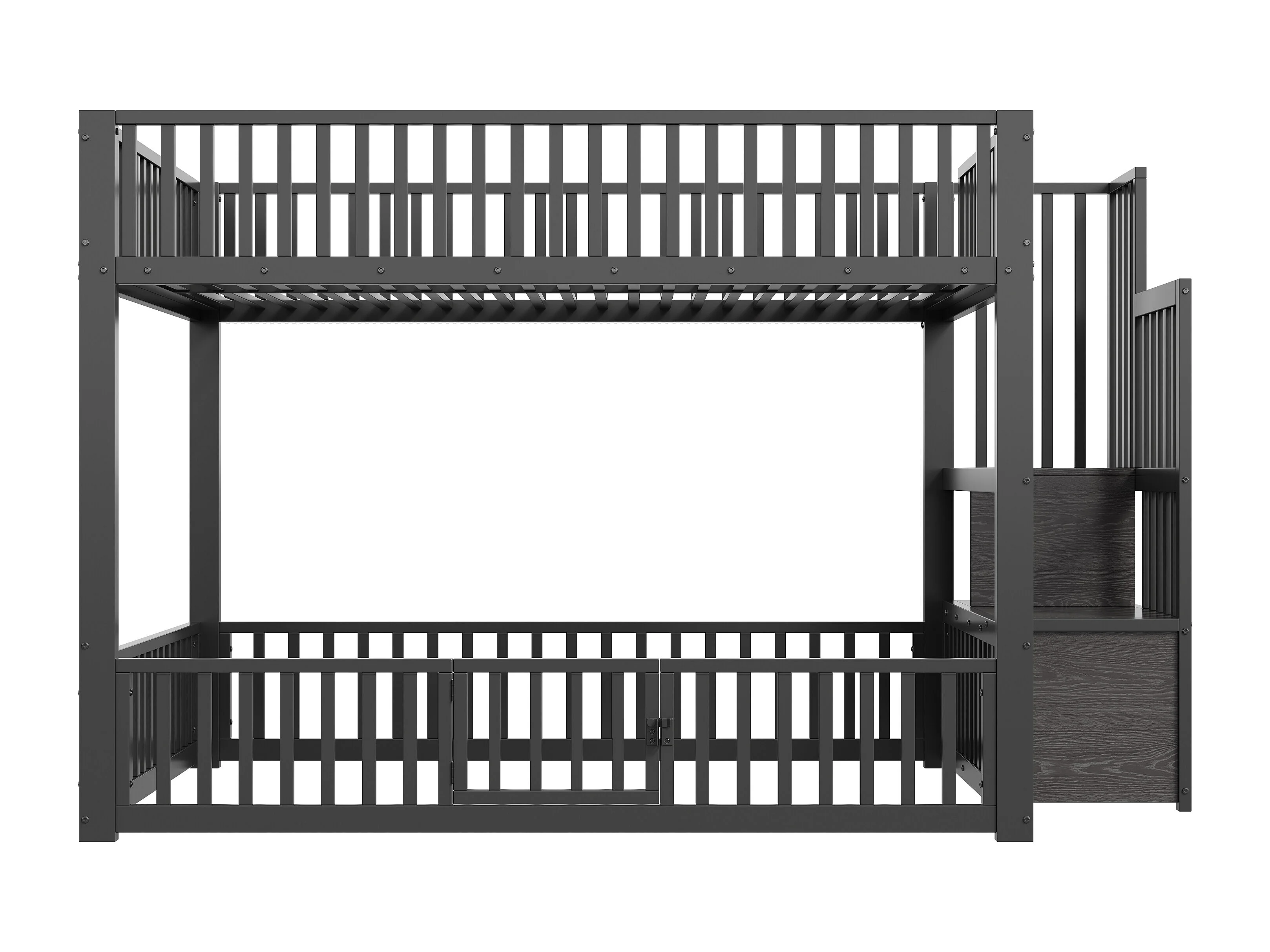Łóżko piętrowe metalowe 140x200 cm - z drabiną z pojemnikami - barierka bezpieczeństwa - MDF - Czarny (Materac nie jest wliczony w cenę)