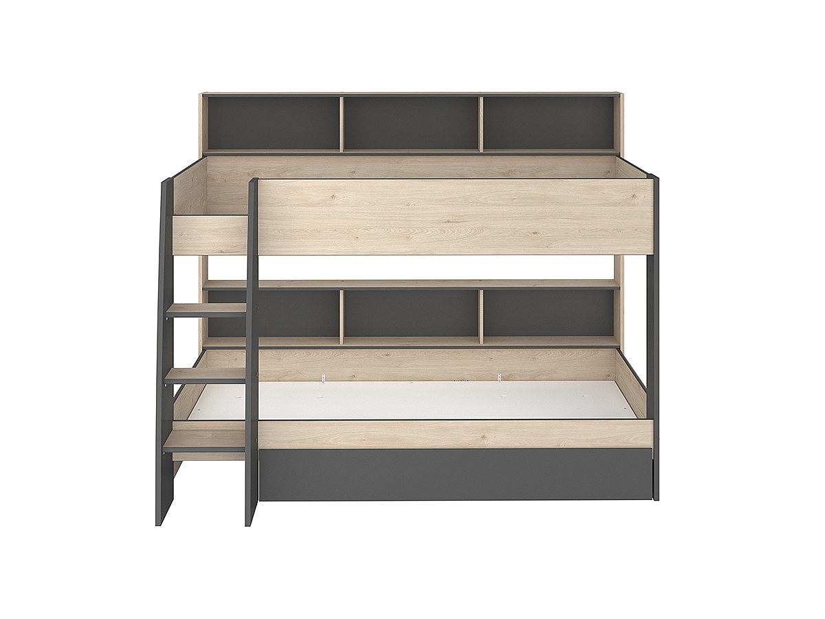 Łóżko piętrowe TYMEO w kolorze czarnym – 2 x 90 × 200 cm – półki i szuflady (dostępne z materacem lub bez materaca)