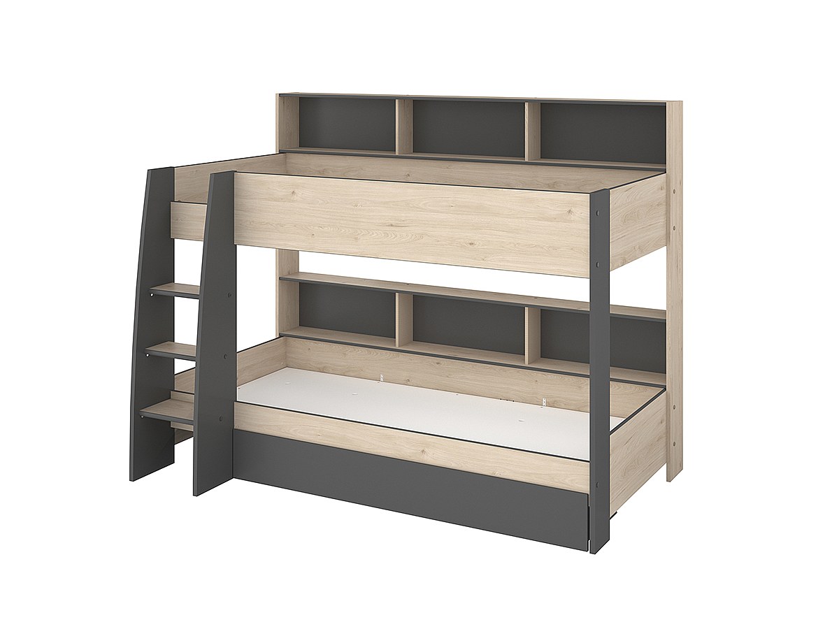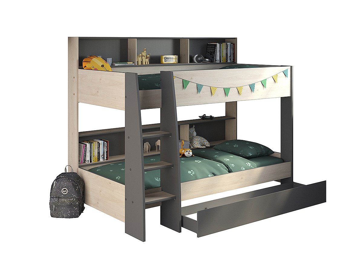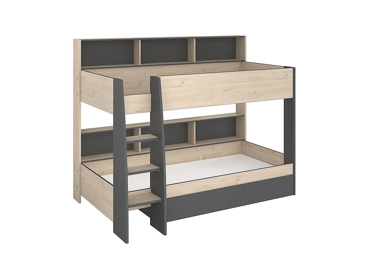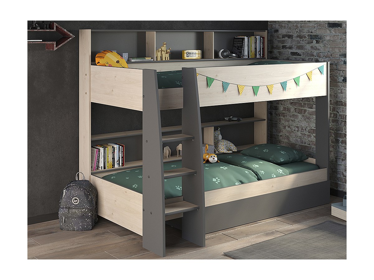 Łóżko piętrowe TYMEO – z miejscem do przechowywania – 2 × 90 × 200 cm – kolor dębowy i antracytowy