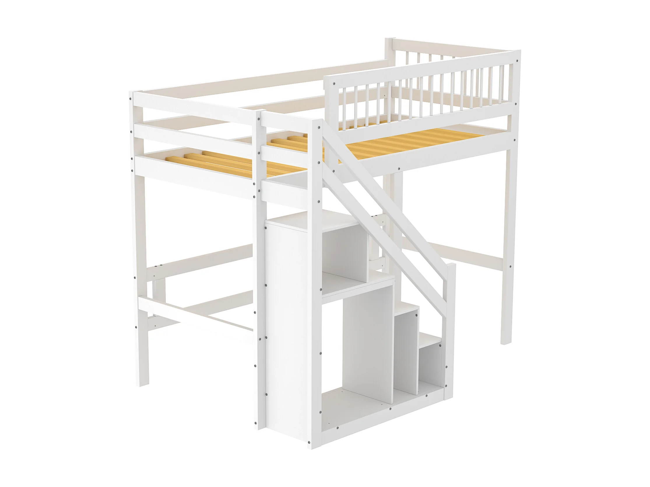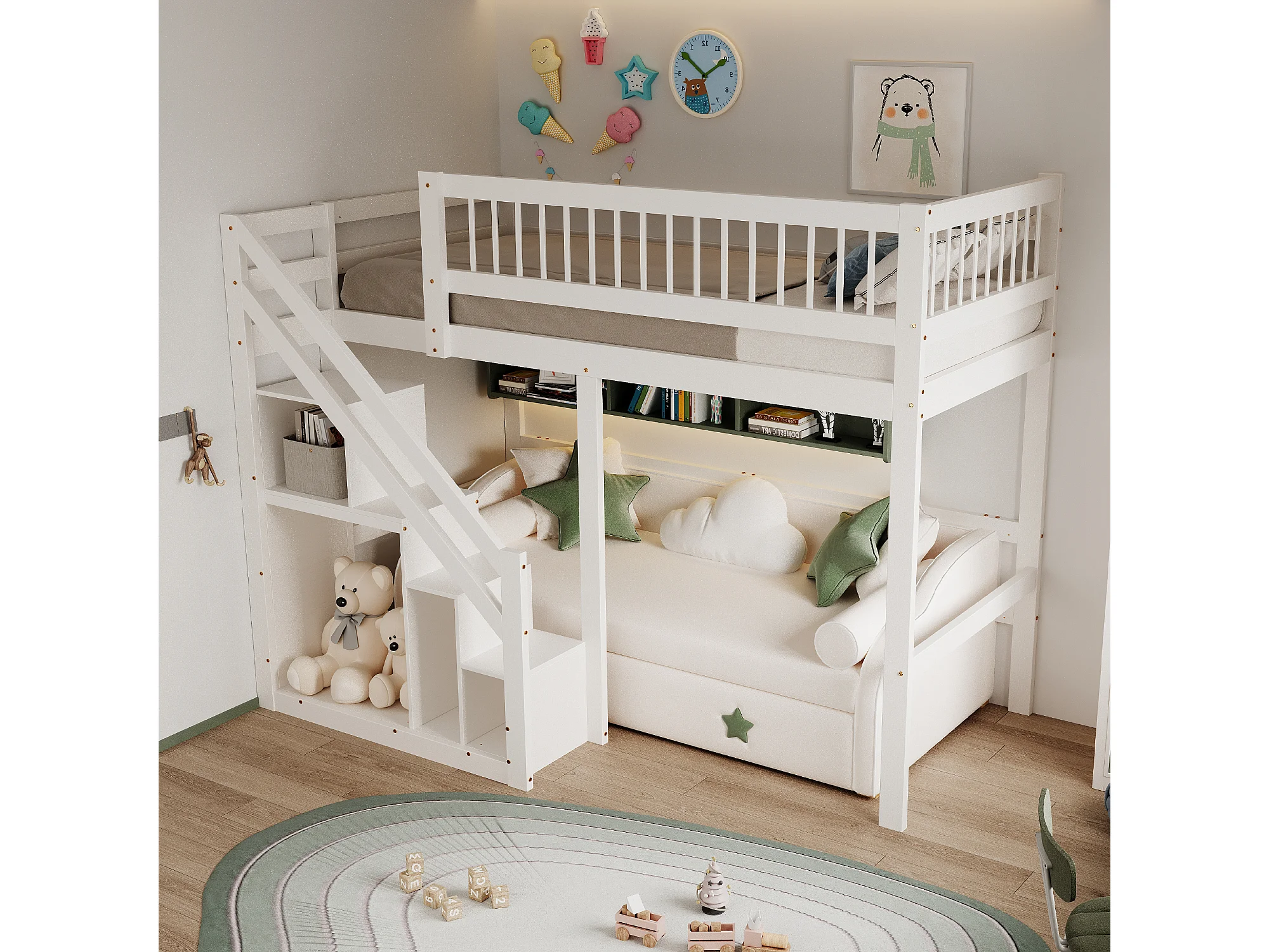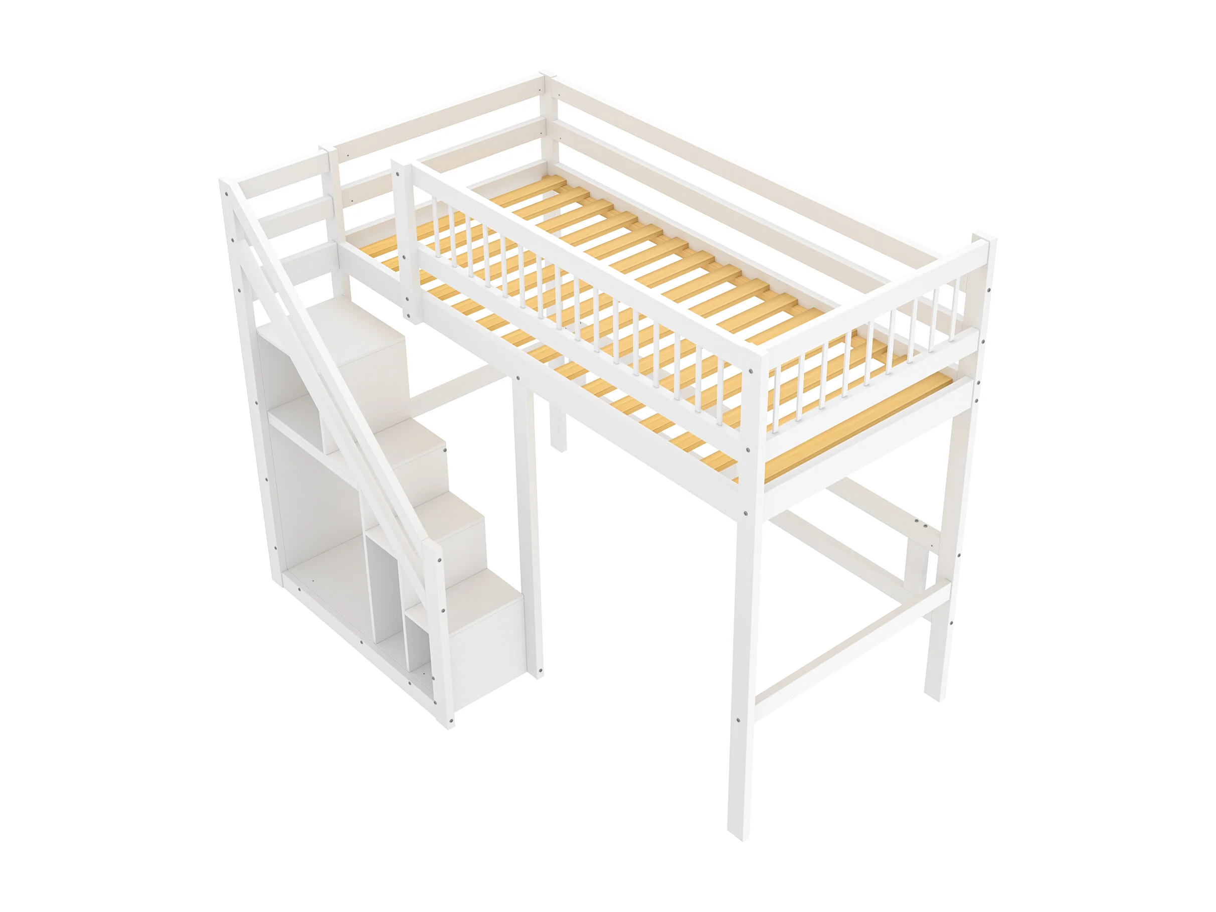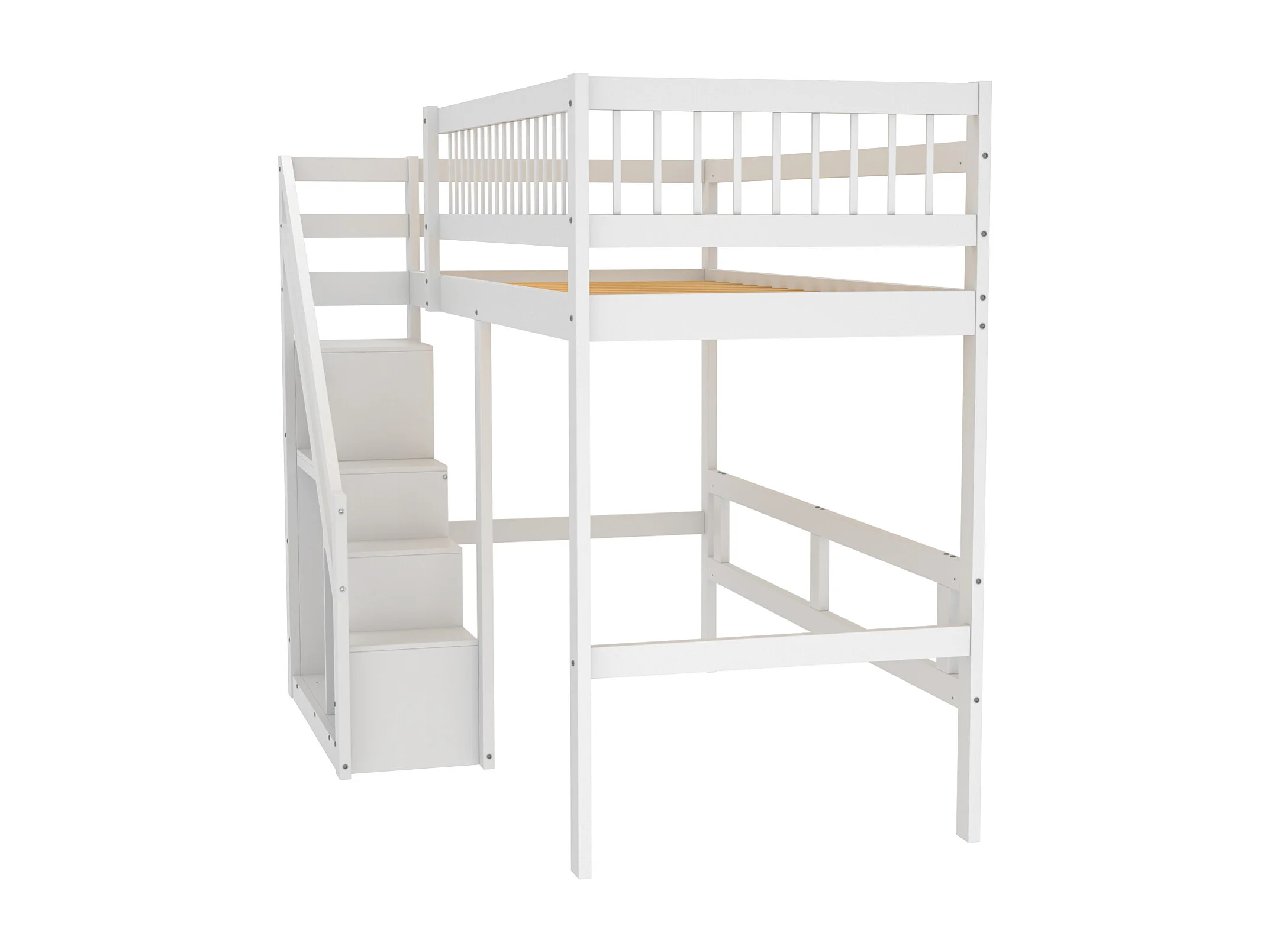 Łóżko piętrowe z litego drewna 90 x 200 cm ze schowkiem - schody bezpieczeństwa - białe