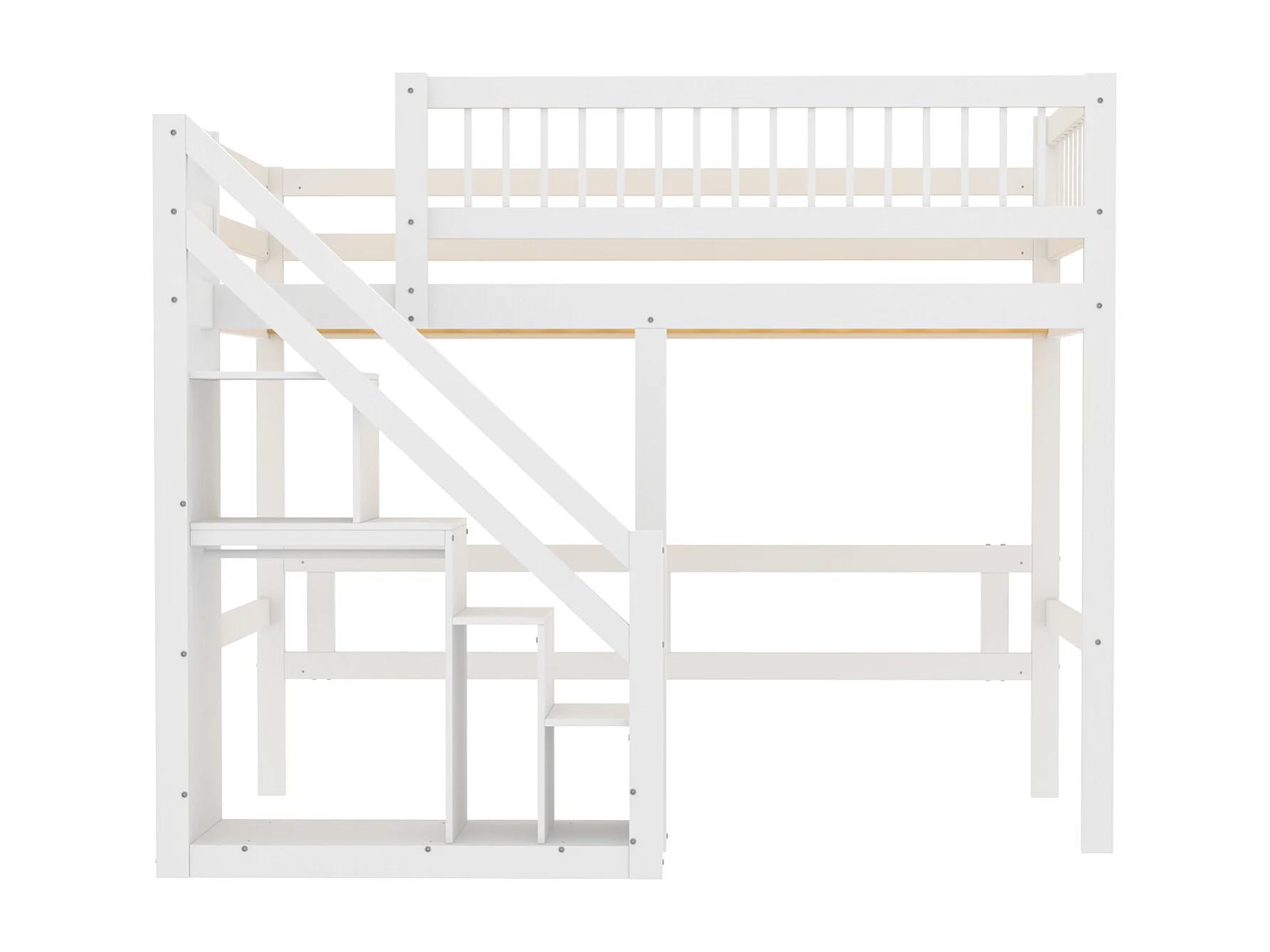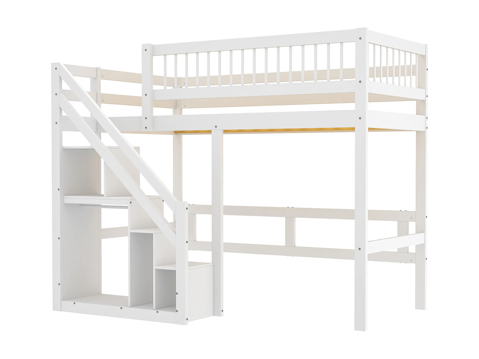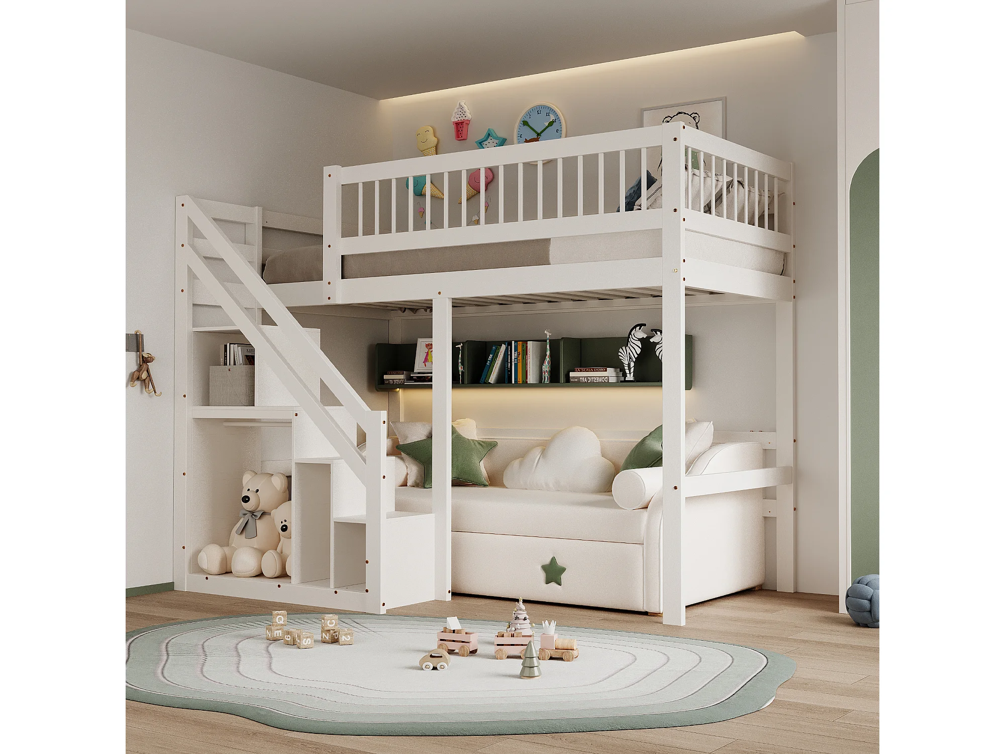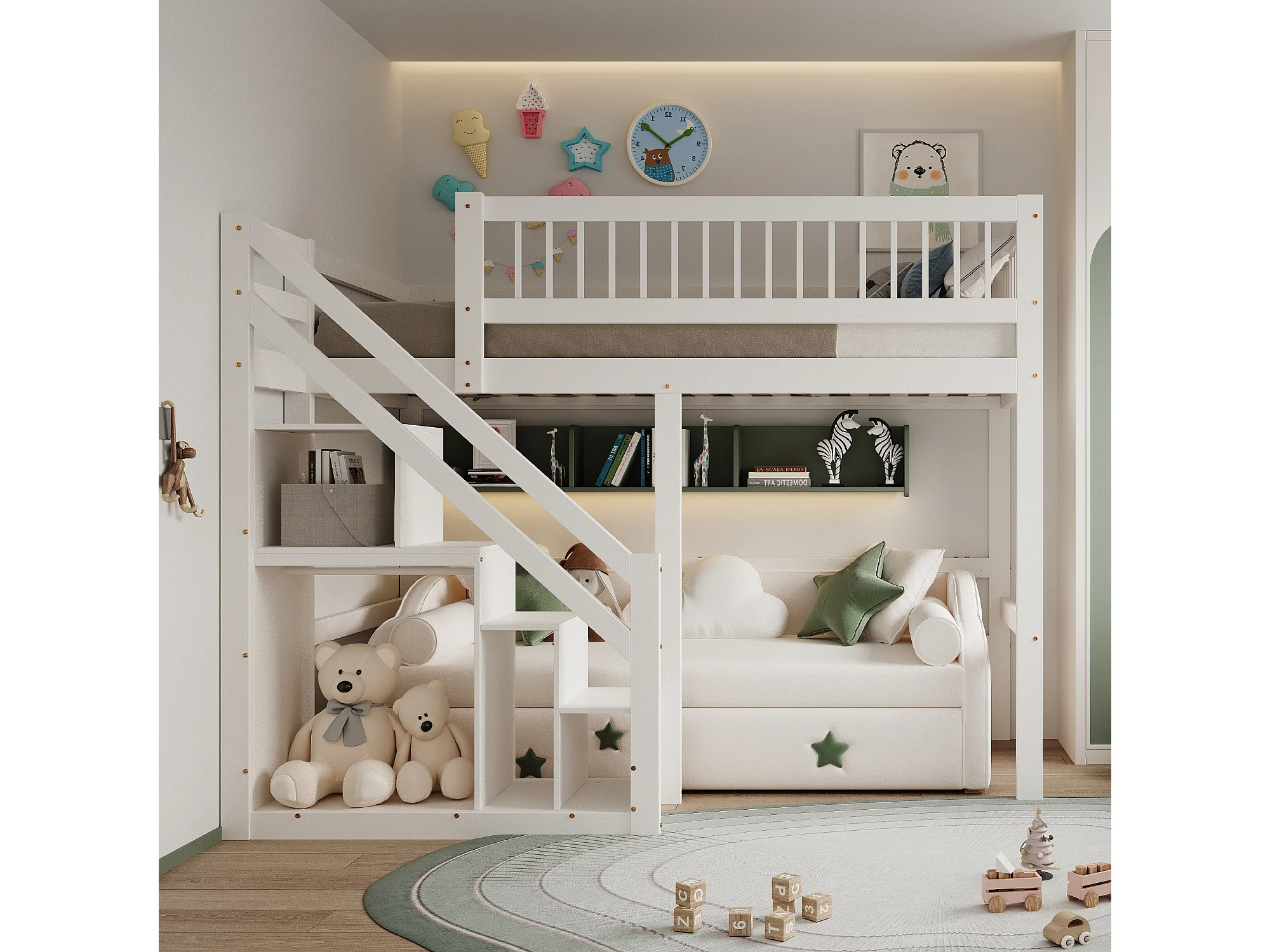 Łóżko piętrowe z litego drewna 90 x 200 cm ze schowkiem - schody bezpieczeństwa - białe