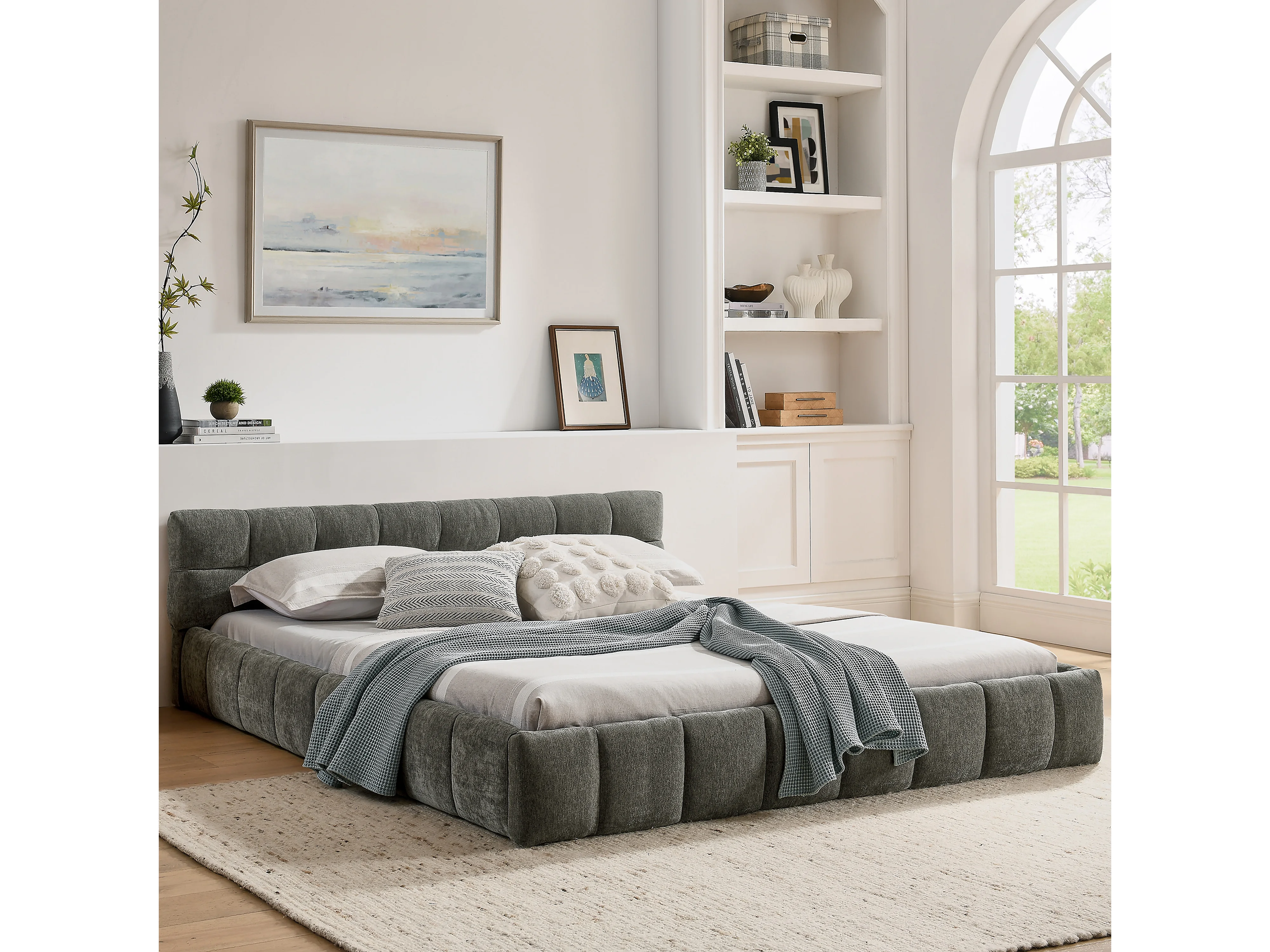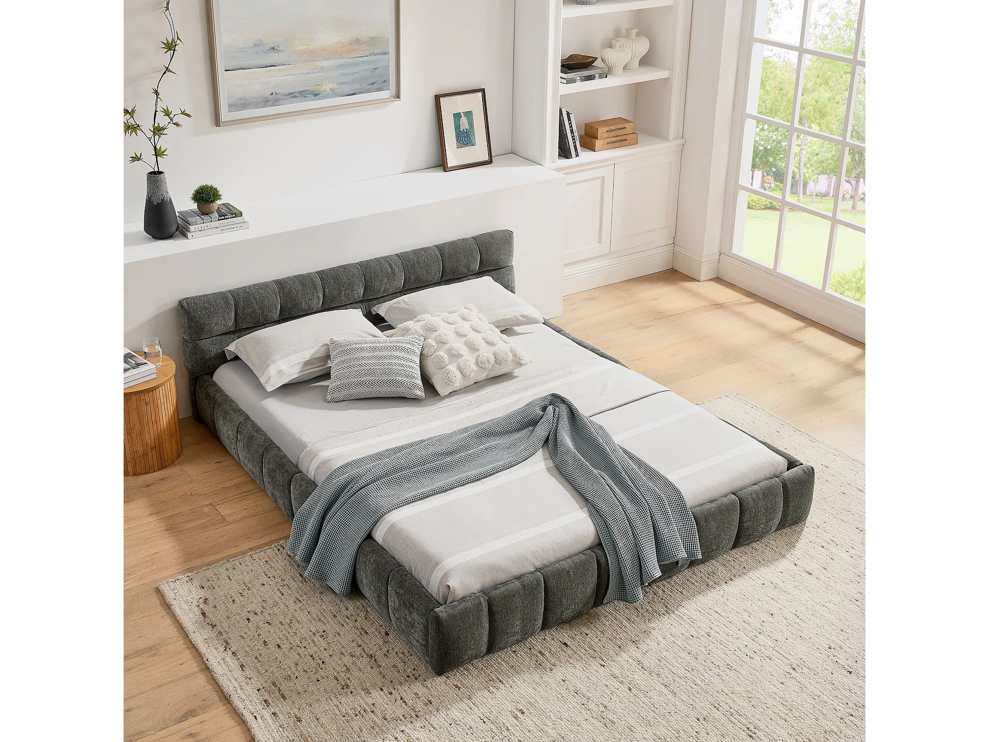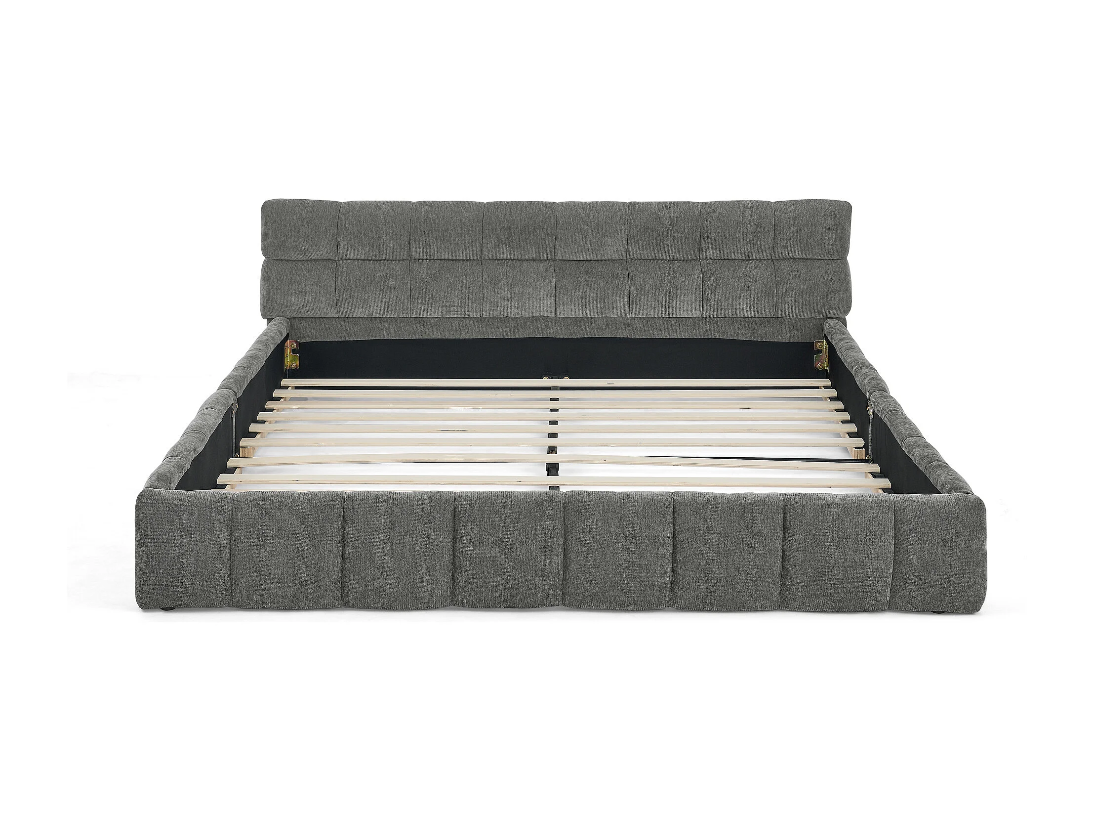 Łóżko podwójne 160 x 200 cm - Łóżko dla dorosłych z miękkim zagłówkiem i żelazną ramą - ciemnoszara tkanina szenilowa - materac nie jest wliczony w cenę