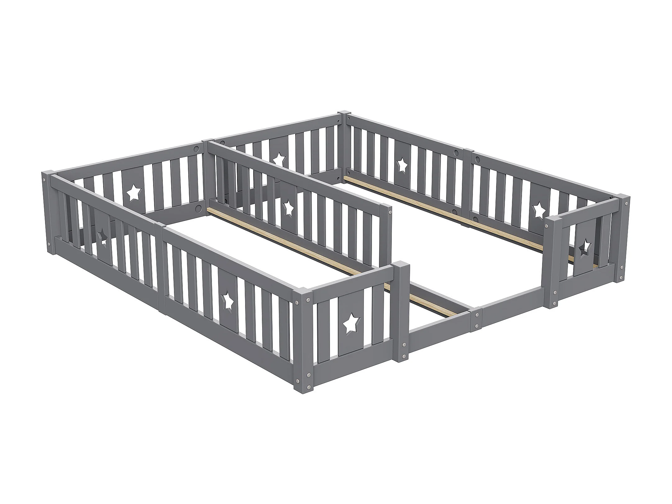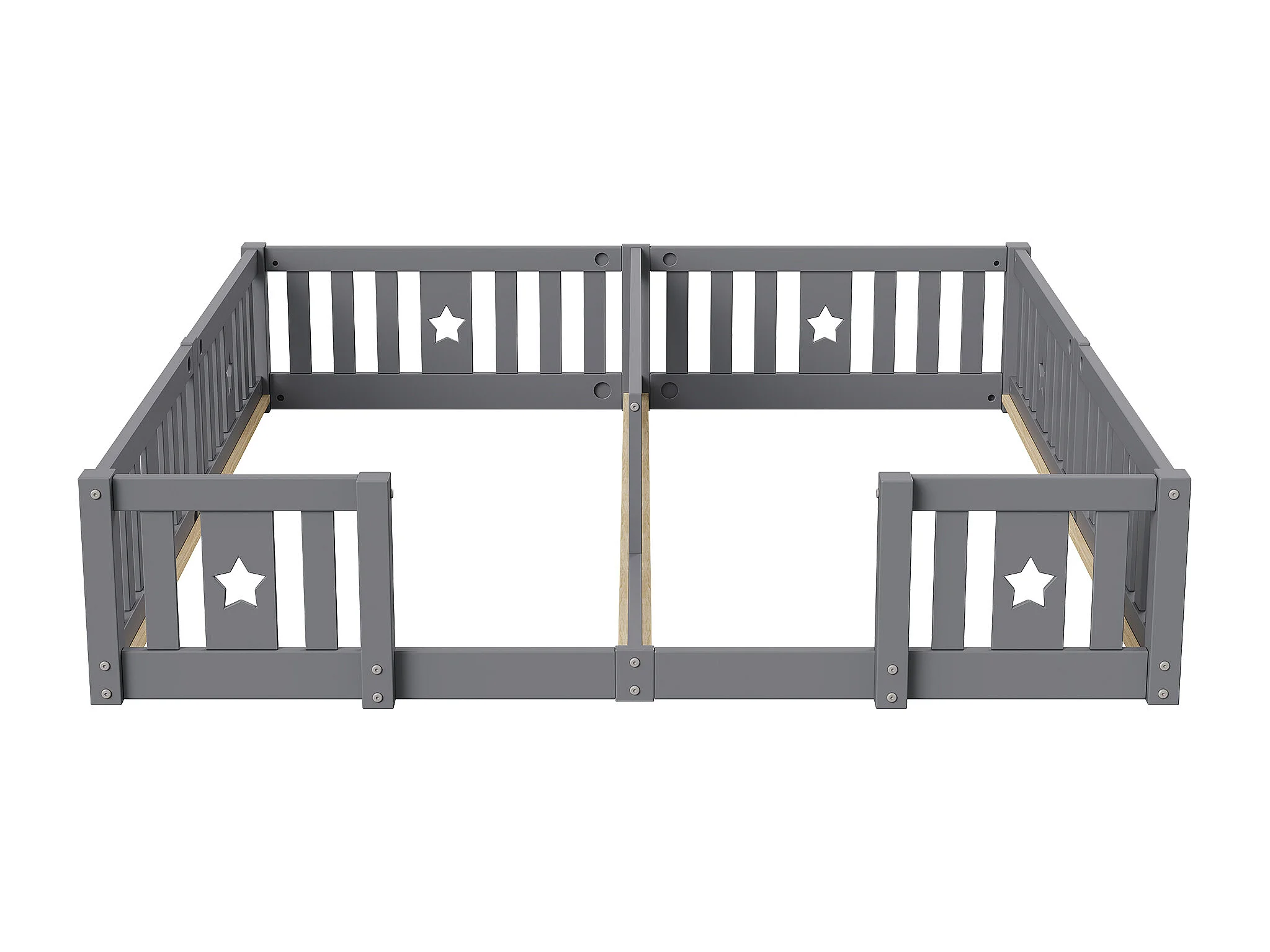 Łóżko podwójne dla dzieci 180x200 cm, lite drewno sosnowe, łóżeczko w kształcie gwiazdy z szczebelkami, łóżko kabinowe, zabezpieczenie przed upadkiem – szare