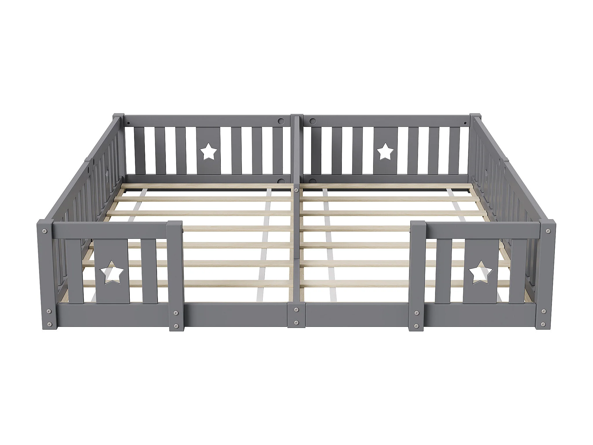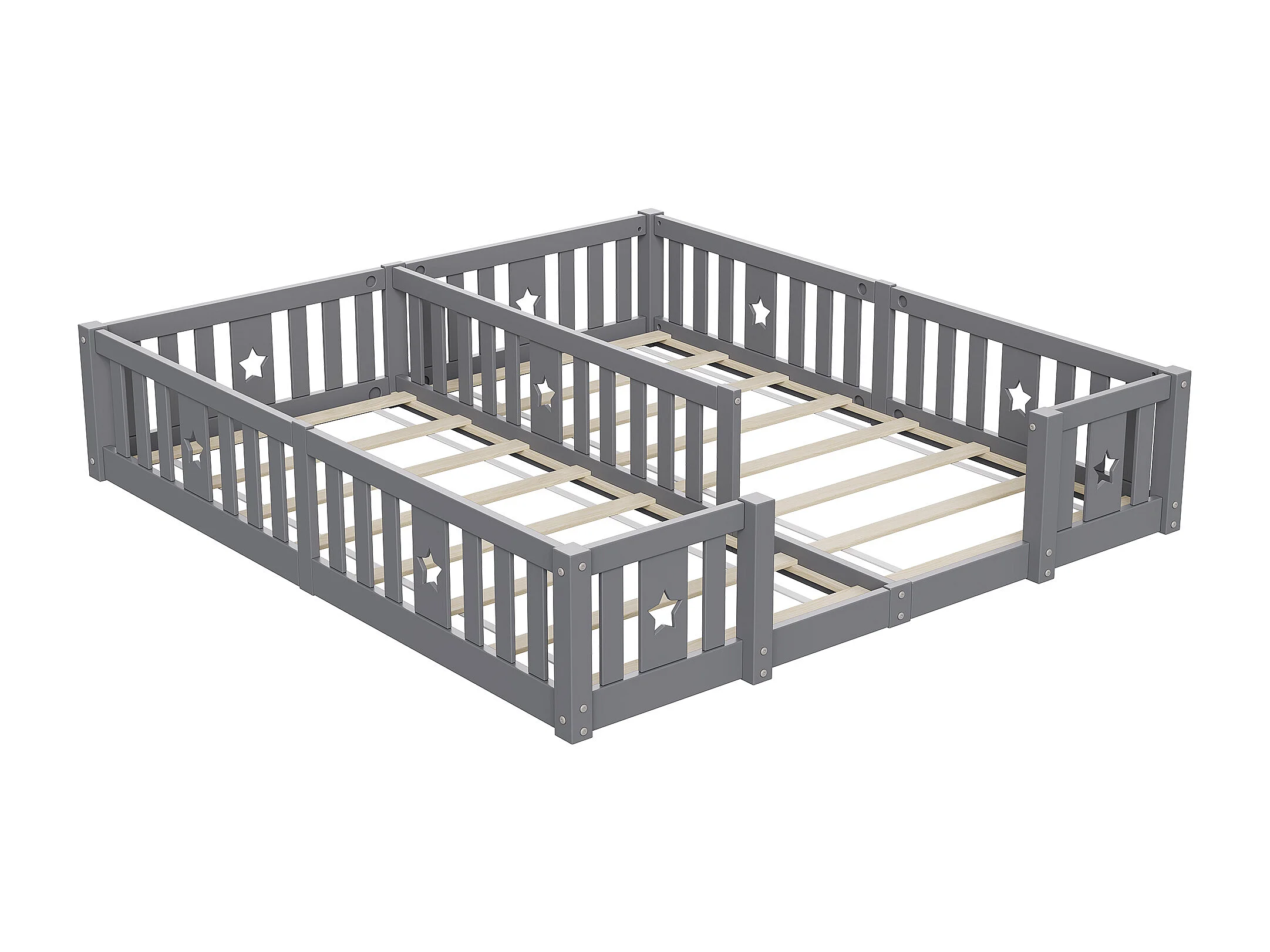 Łóżko podwójne dla dzieci 180x200 cm, lite drewno sosnowe, łóżeczko w kształcie gwiazdy z szczebelkami, łóżko kabinowe, zabezpieczenie przed upadkiem- szare