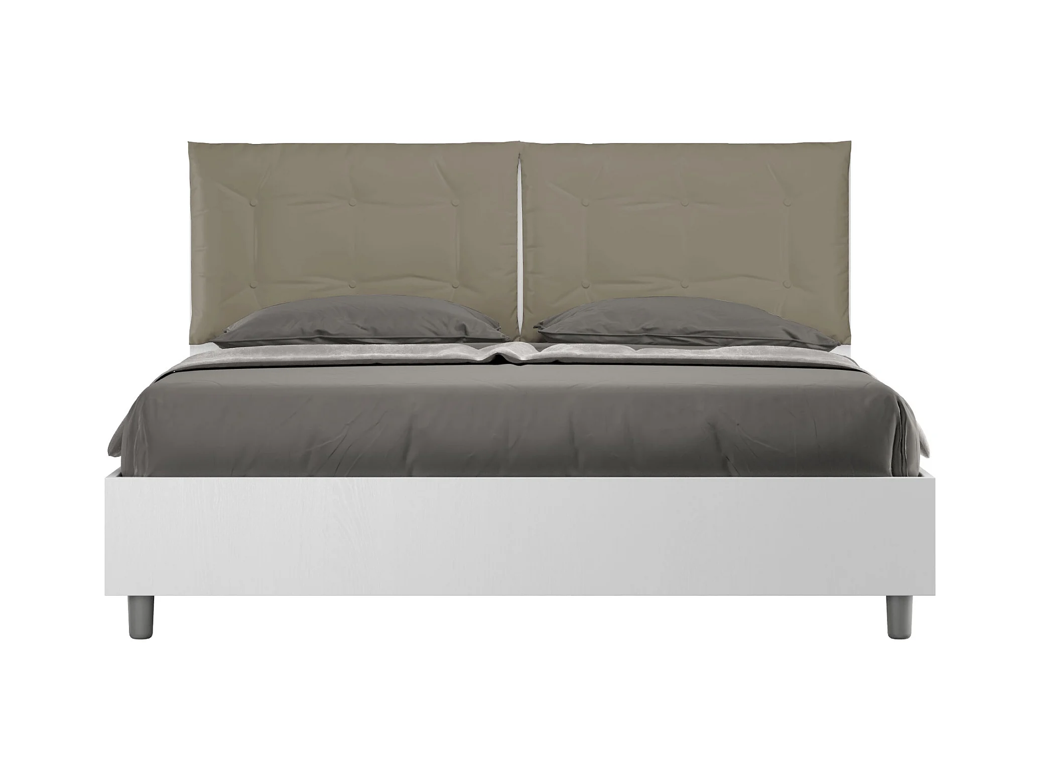 Łóżko podwójne z pojemnikiem, podnoszone, 160x190 cm, białe drewno jesionowe, poduszki eco skóra cappuccino, Egos Annalisa