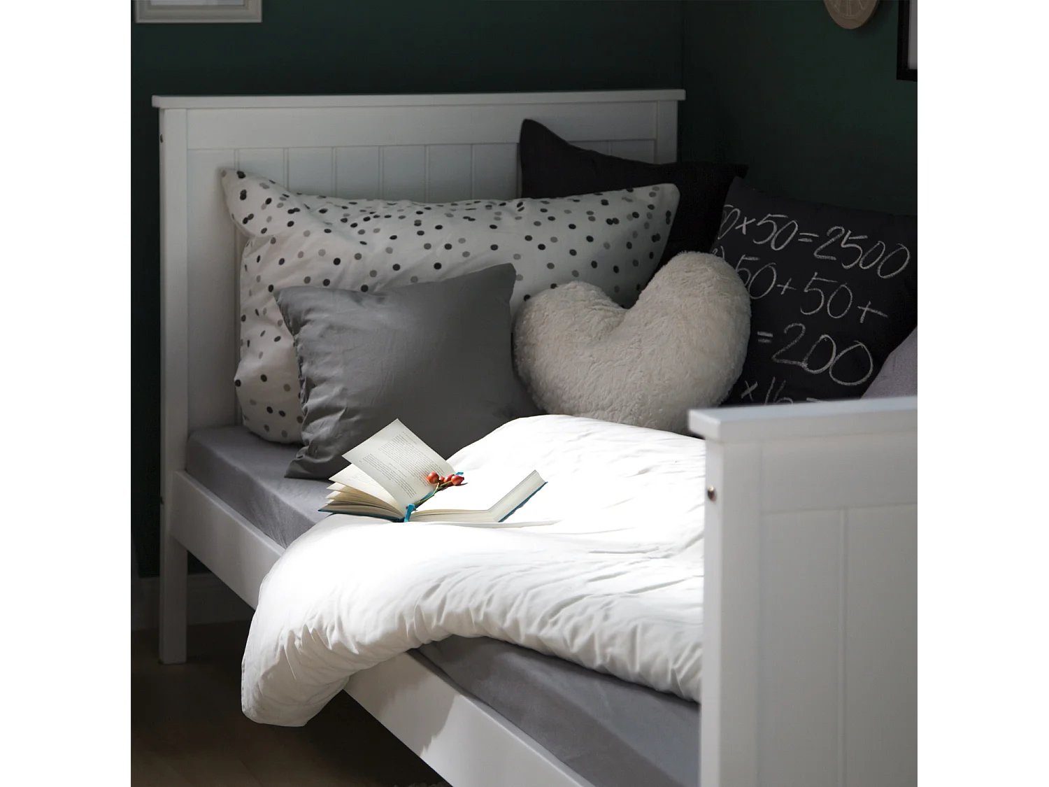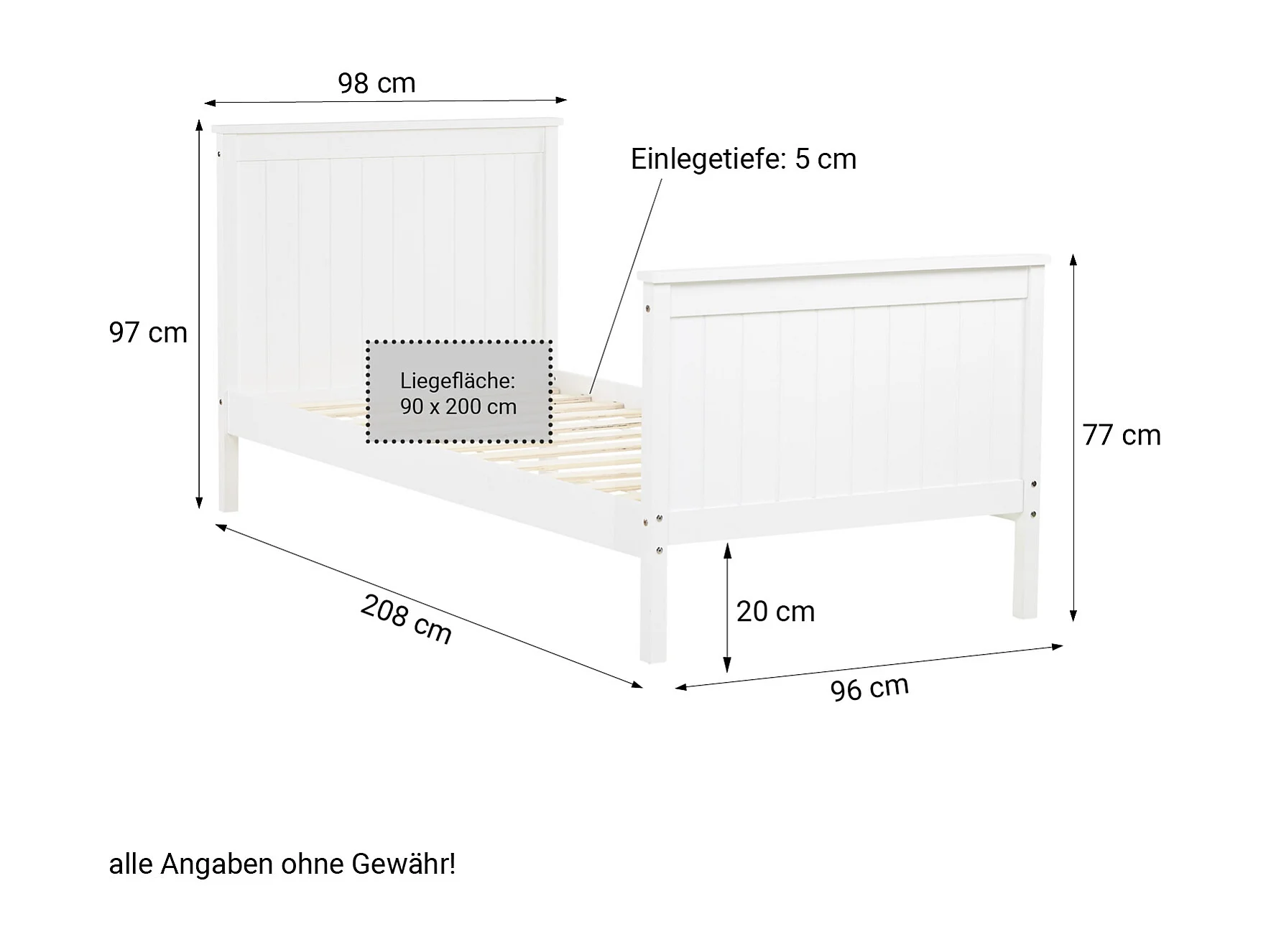 Łóżko pojedyncze 98x208 cm, białe, w stylu shaker