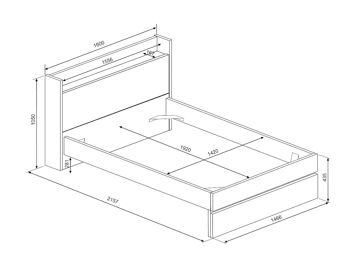 - Wnęka zagłówka: 155 × 16 cm (szer. × wys.)