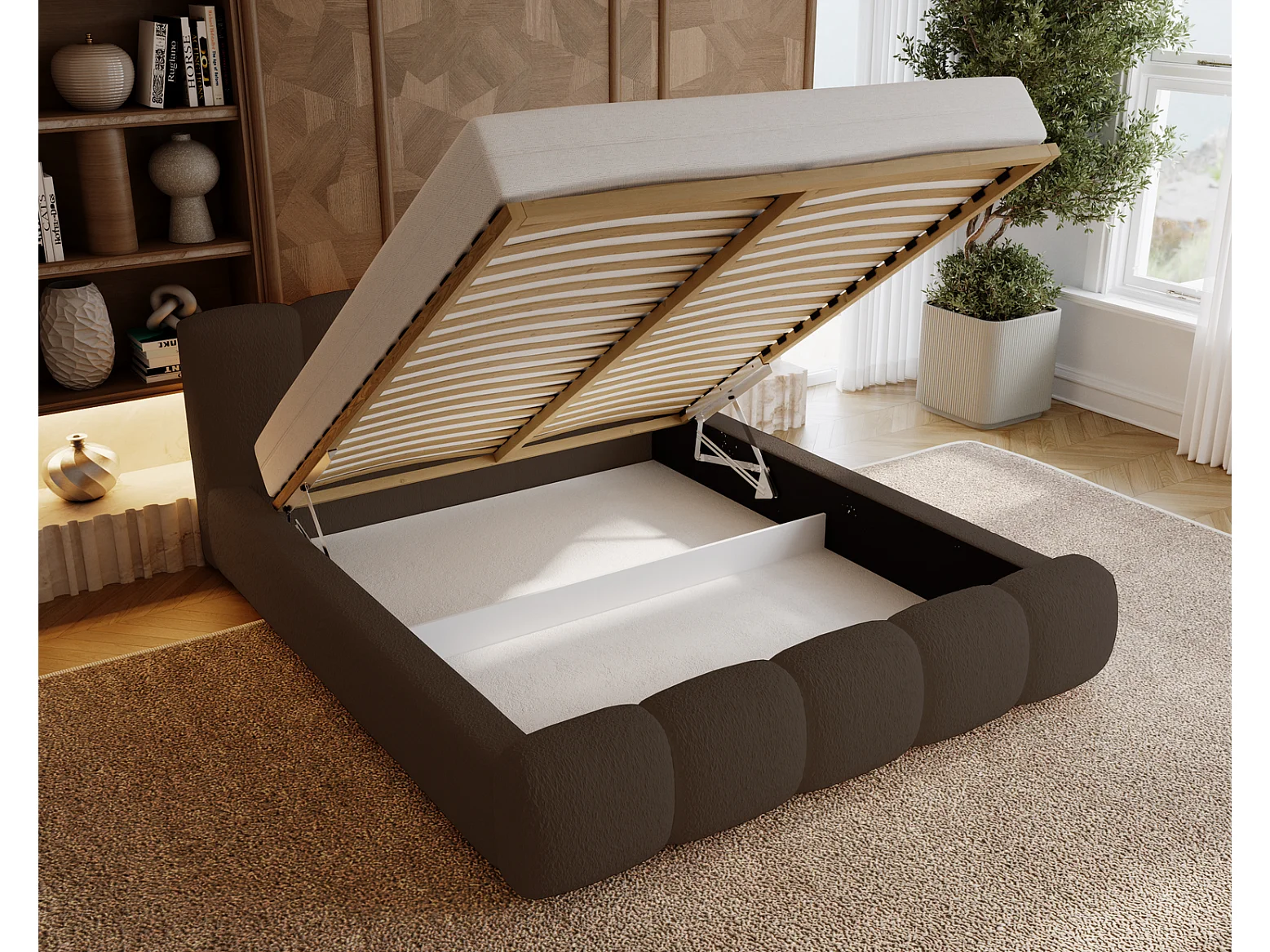 Łóżko tapicerowane 140x200 cm Ravello - łóżko z pojemnikiem, tkanina boucle brązowy (Lambi 4)