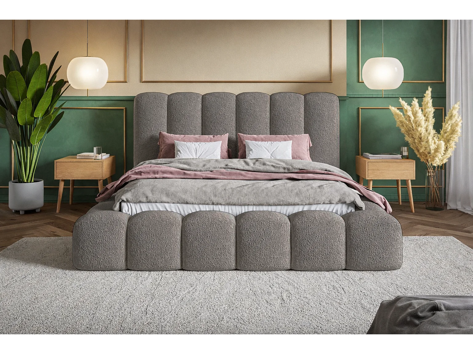 Łóżko tapicerowane 140x200 Madeno - gruba pianka, pojemnik, stelaż - tkanina boucle, szary (Catch Me 25)