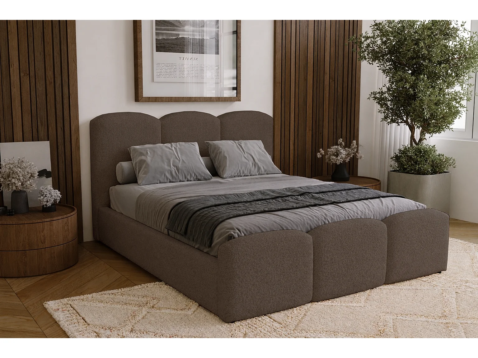 Łóżko tapicerowane 160x200 cm Capri - pojemnik, stelaż metalowy - tkanina boucle, brązowy (Lambi 4)