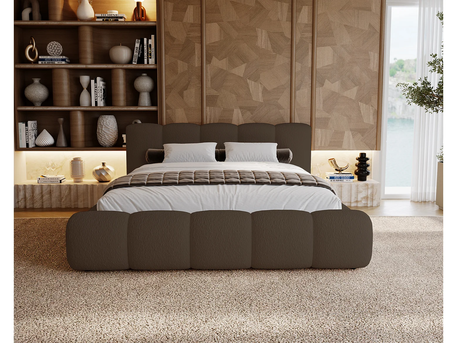 Łóżko tapicerowane 160x200 cm Ravello - łóżko z pojemnikiem, tkanina boucle brązowy (Lambi 4)